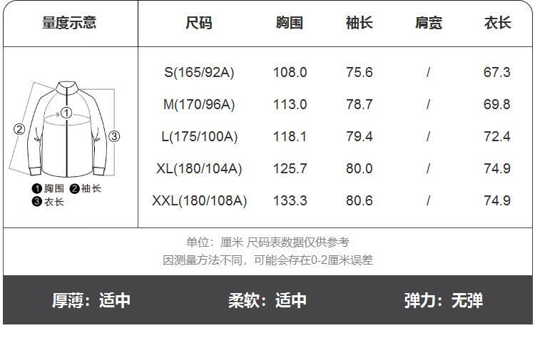 China (cm) 165 / 88-90 170 / 96-98 175 / 108-110 180 / 118-122 185 / 126-130