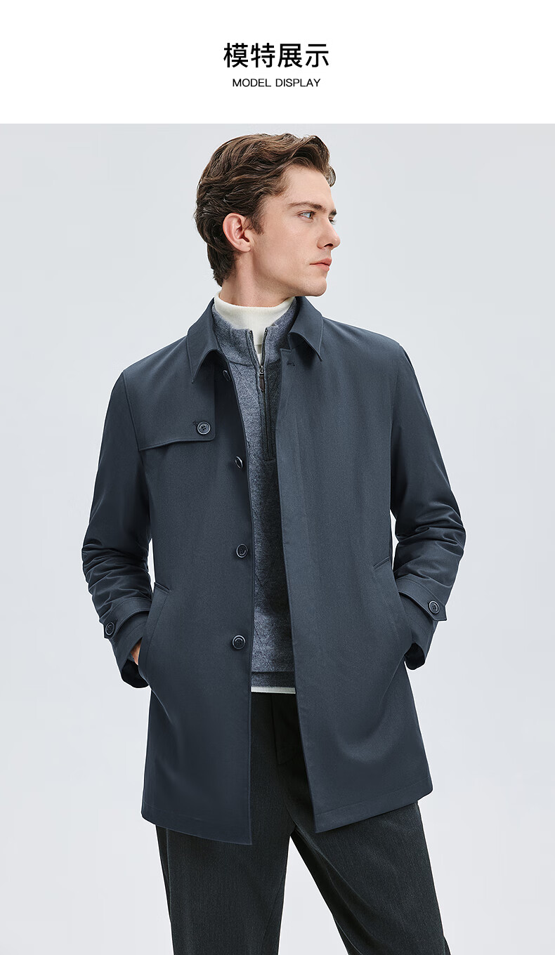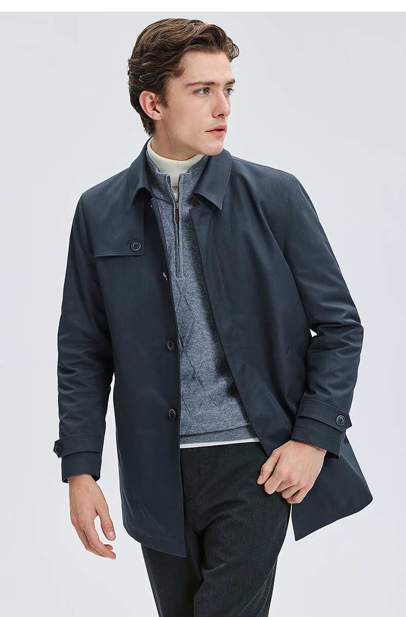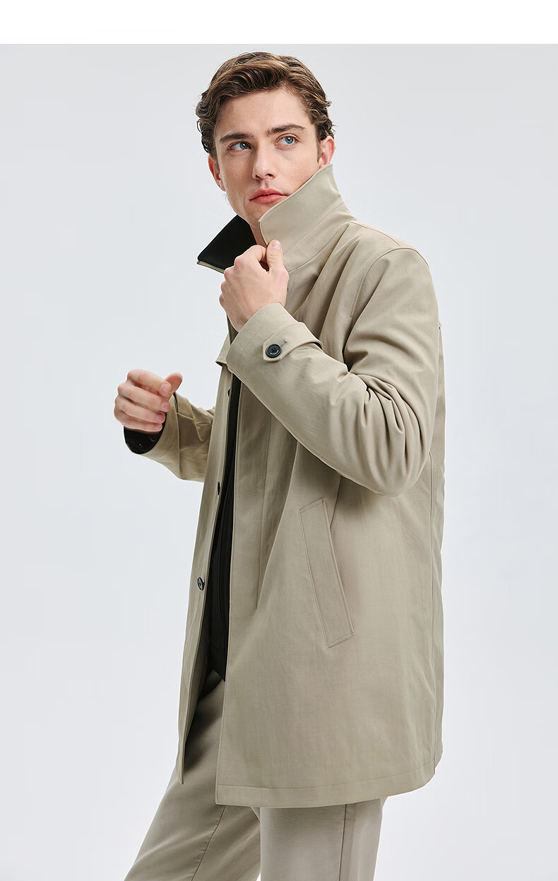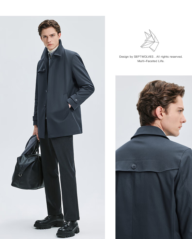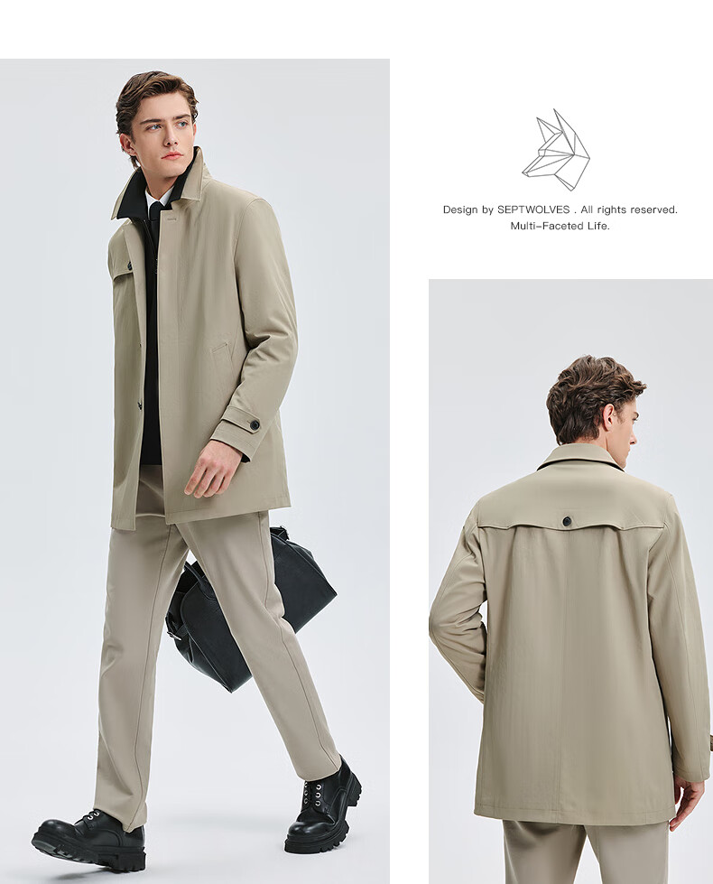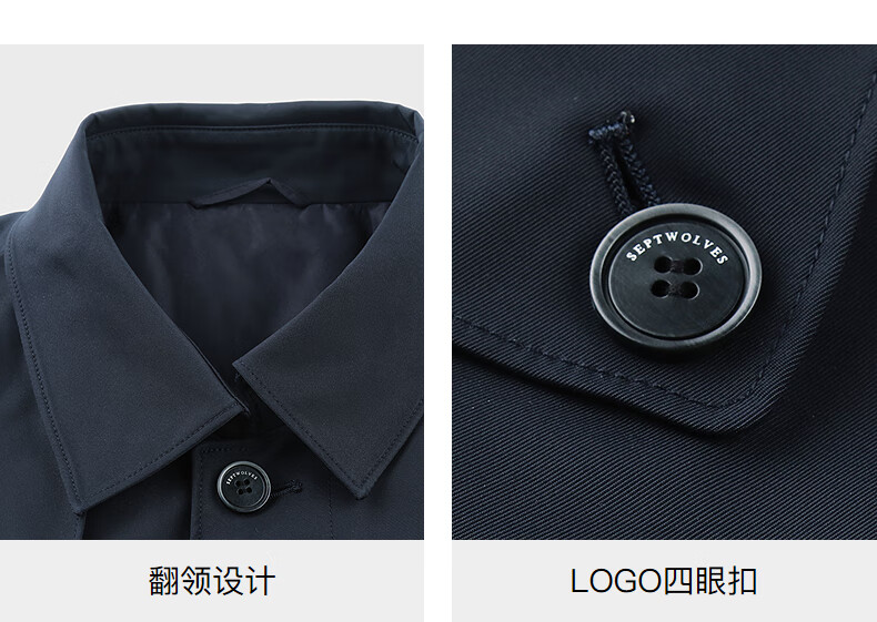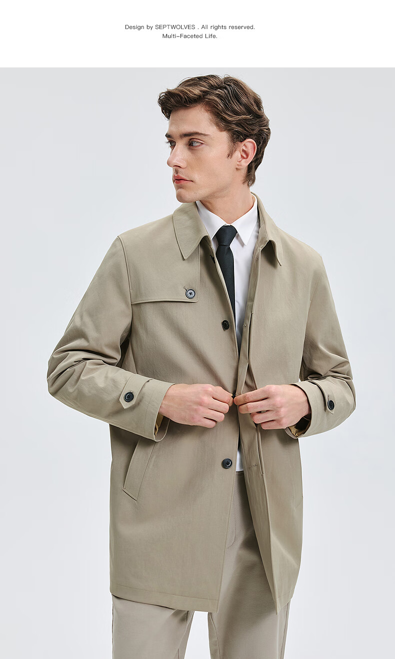 Septwolves trench coat men's autumn lapel twill thin cotton mid-length fashion casual commuting comfortable versatile men's jacket