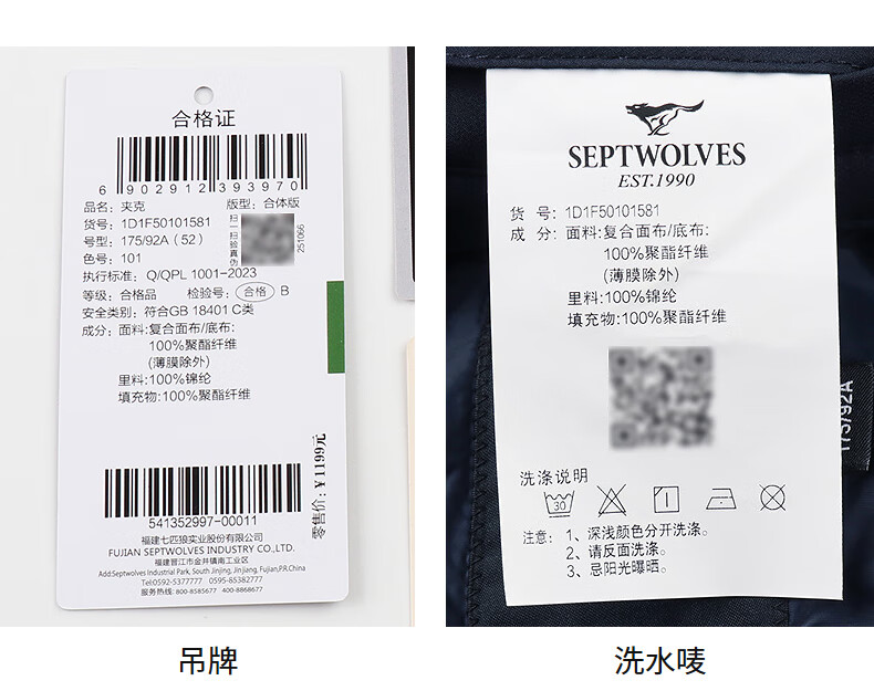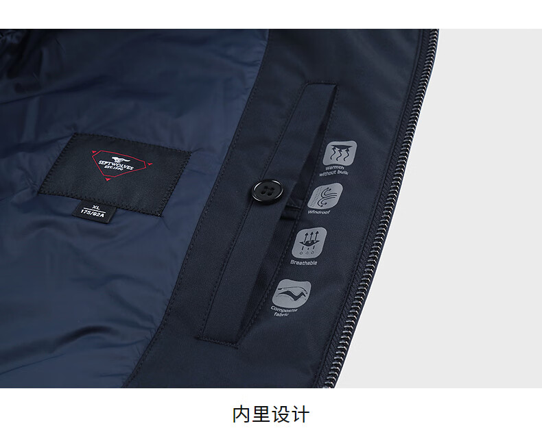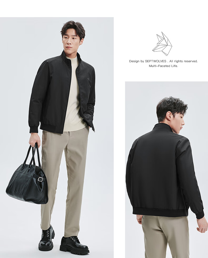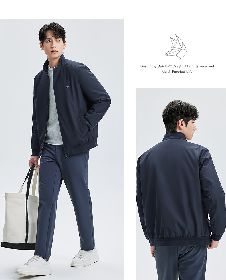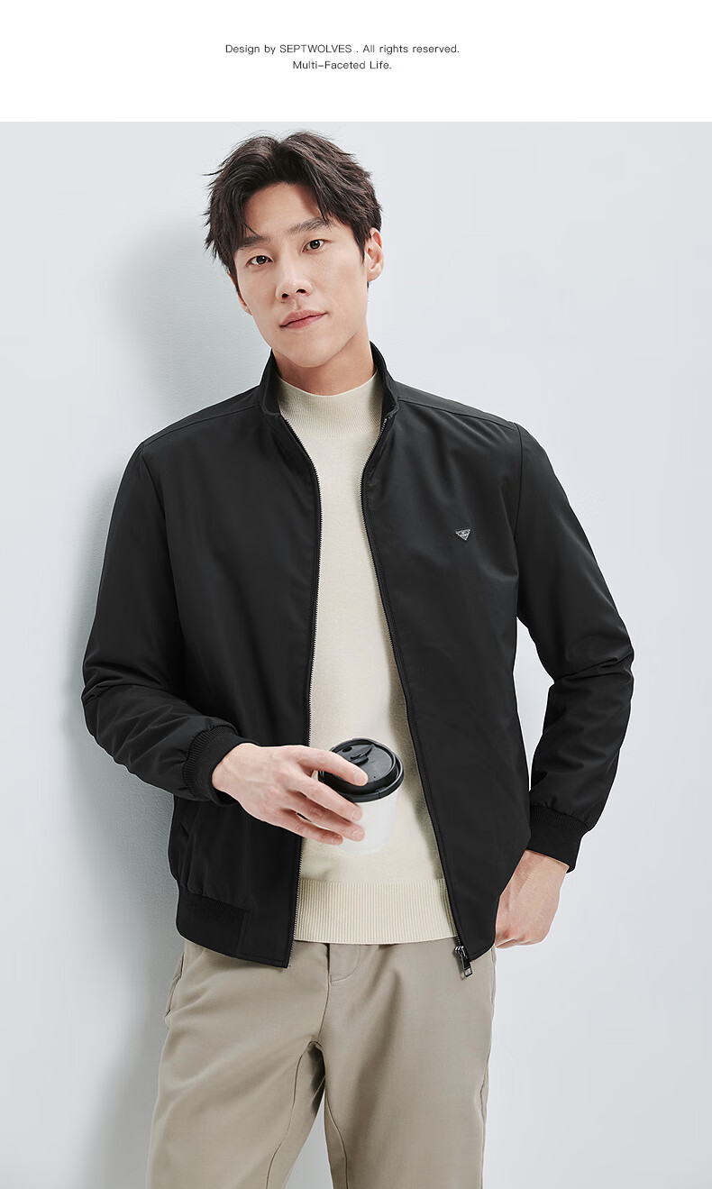 Septwolves jacket men's jacket autumn stand collar three-proof dark texture jacquard thin cotton graphene warm and comfortable skin-friendly men's clothing