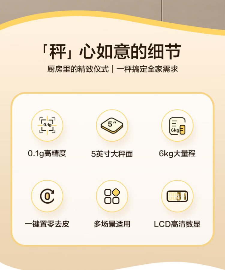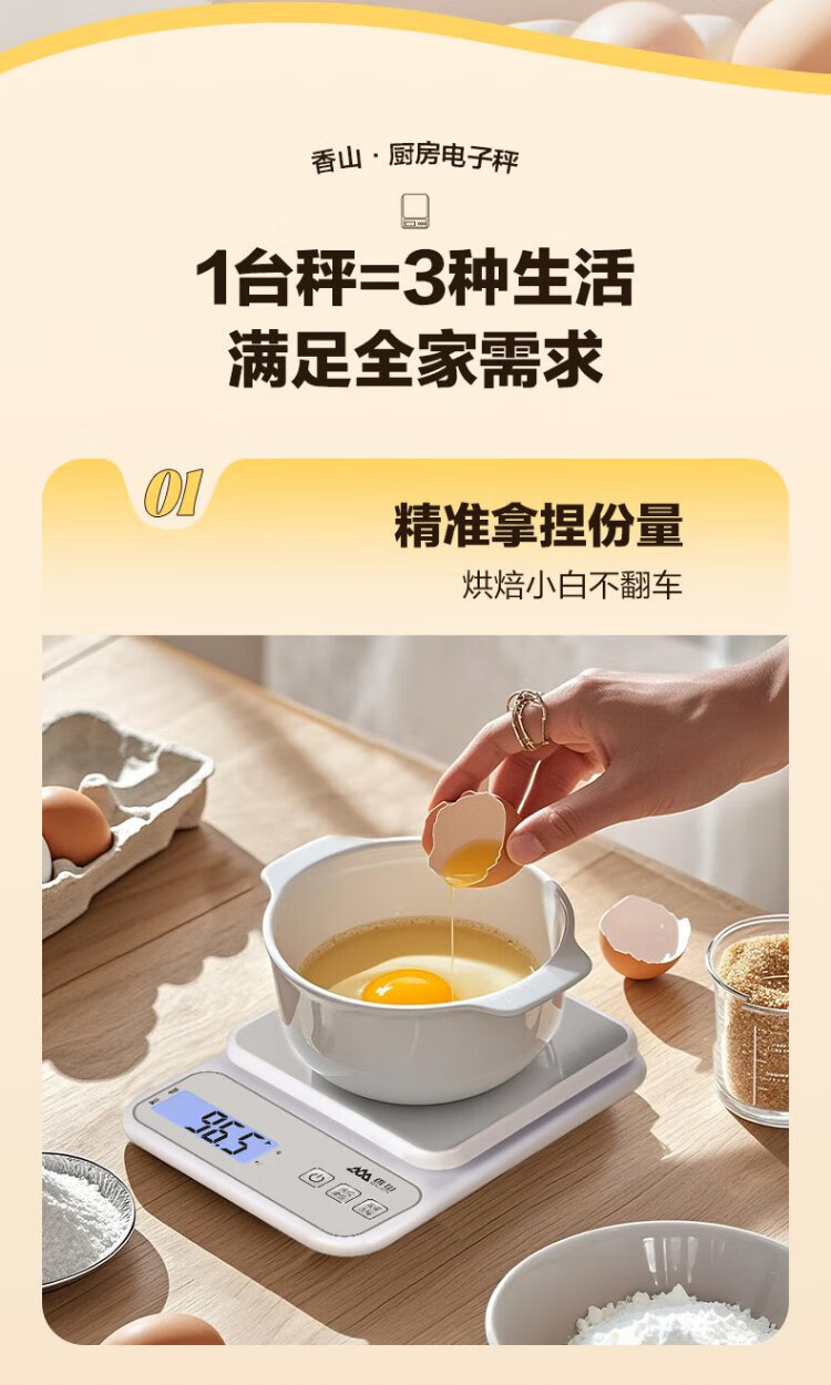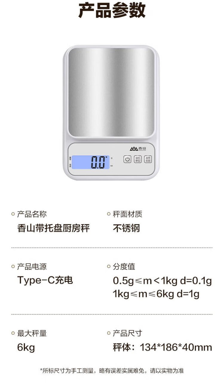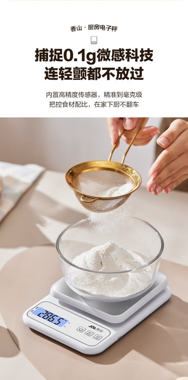 Xiangshan Electronic Scale Kitchen Scale Gram Weight Accuracy 0.1g Food Scale Stainless Steel Scale Surface 6kg Type-C Charging