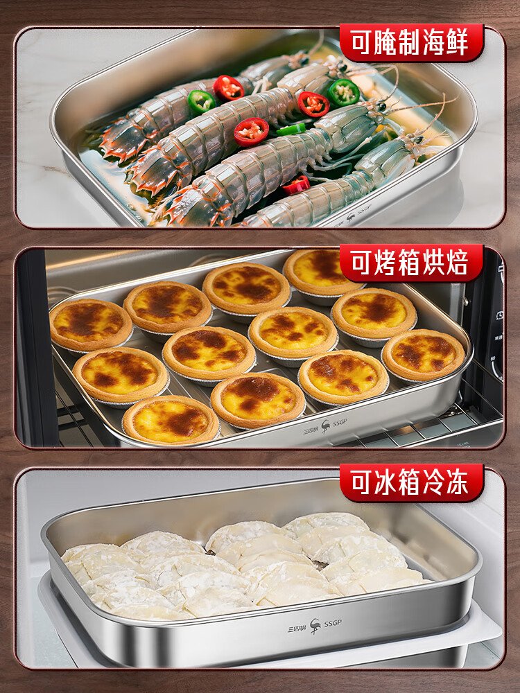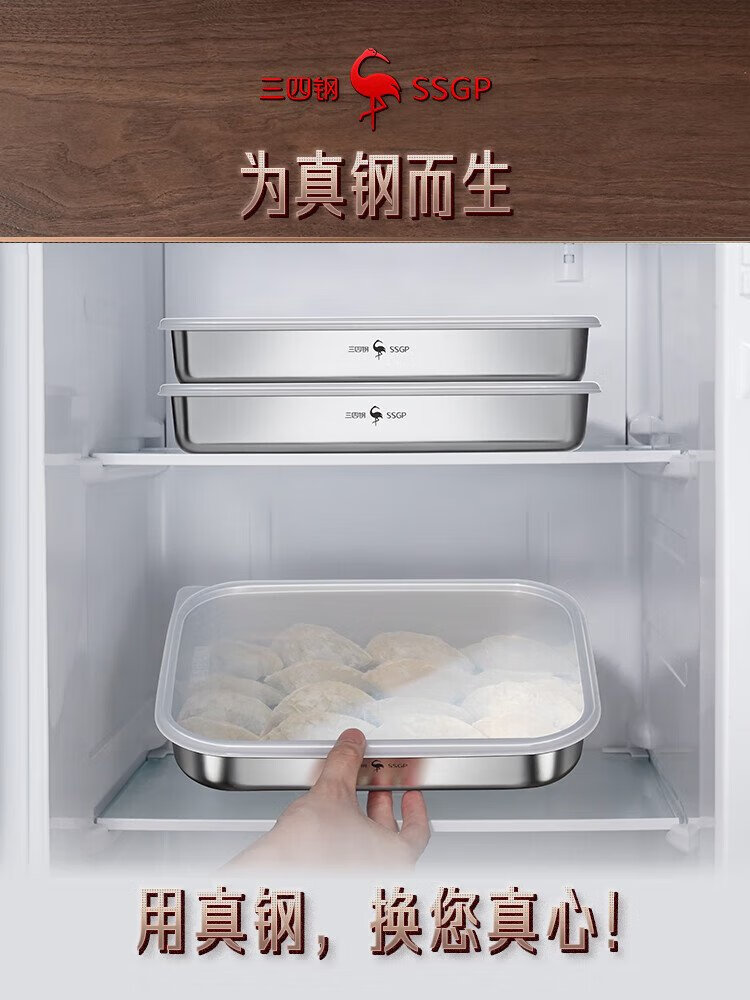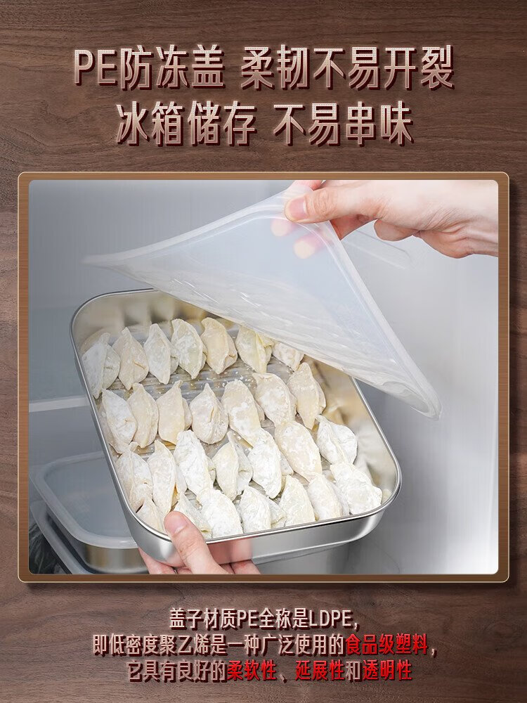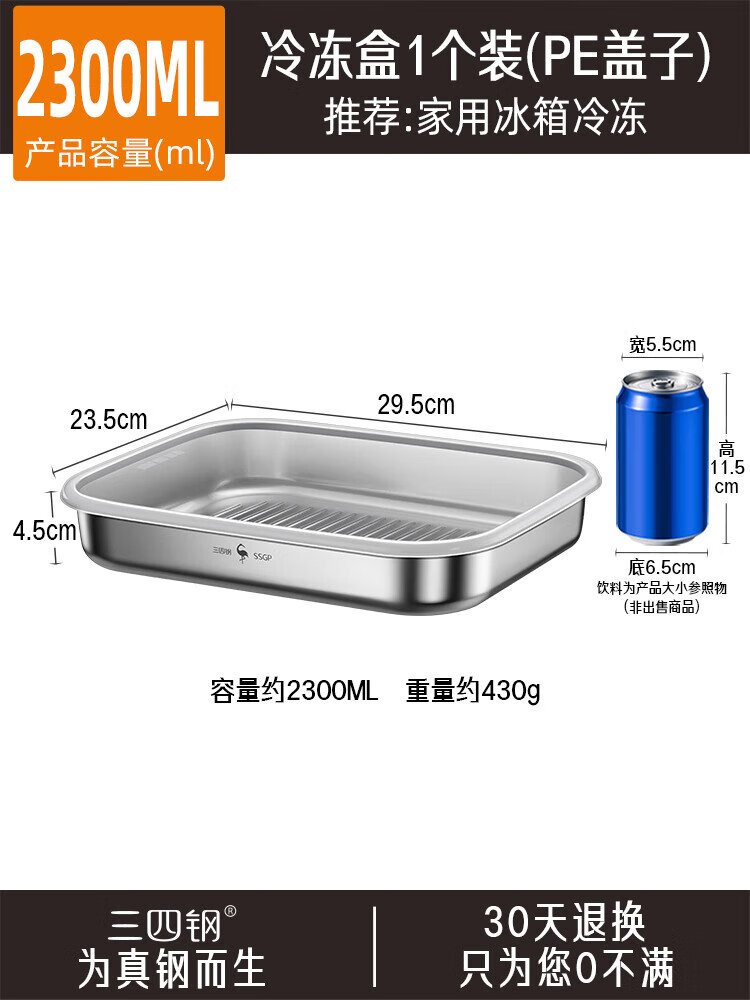 Sansi Steel Dumpling Freezer Box 316L Stainless Steel Fresh Box Food Grade Refrigerator Storage Single Pack 2300ml 38761