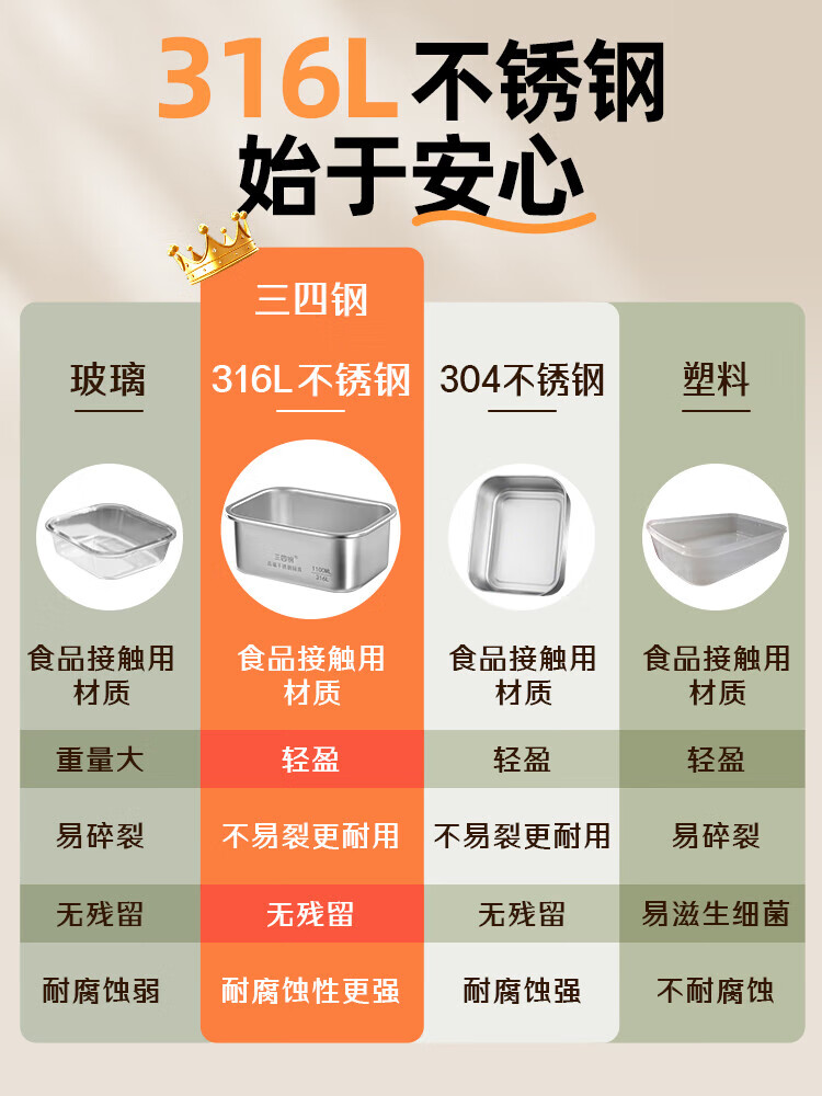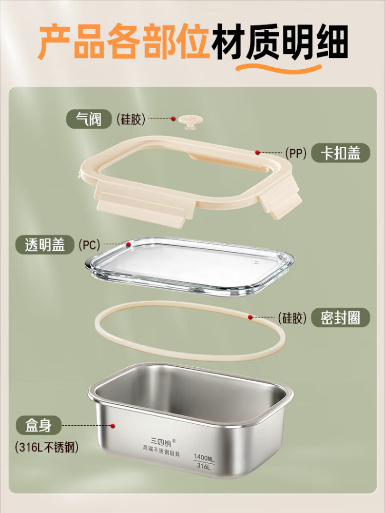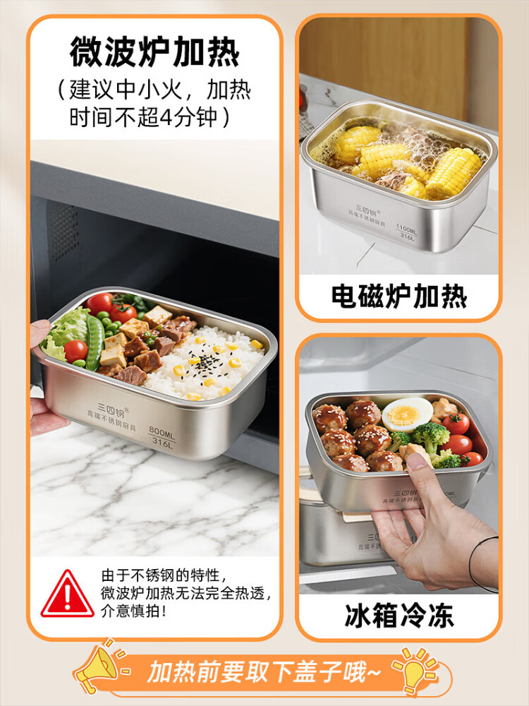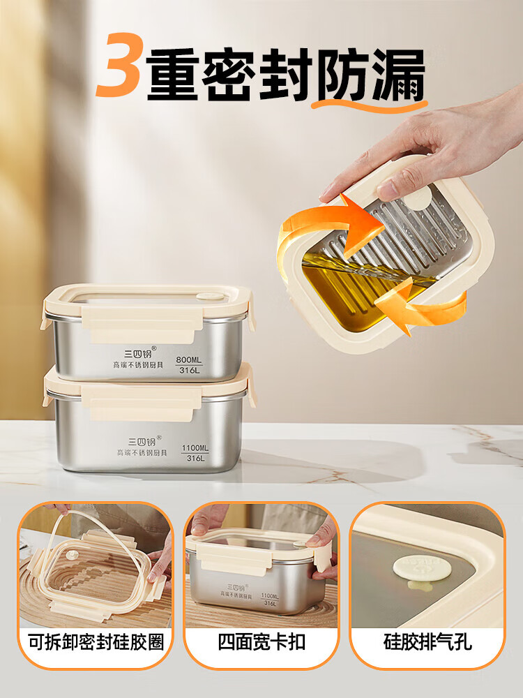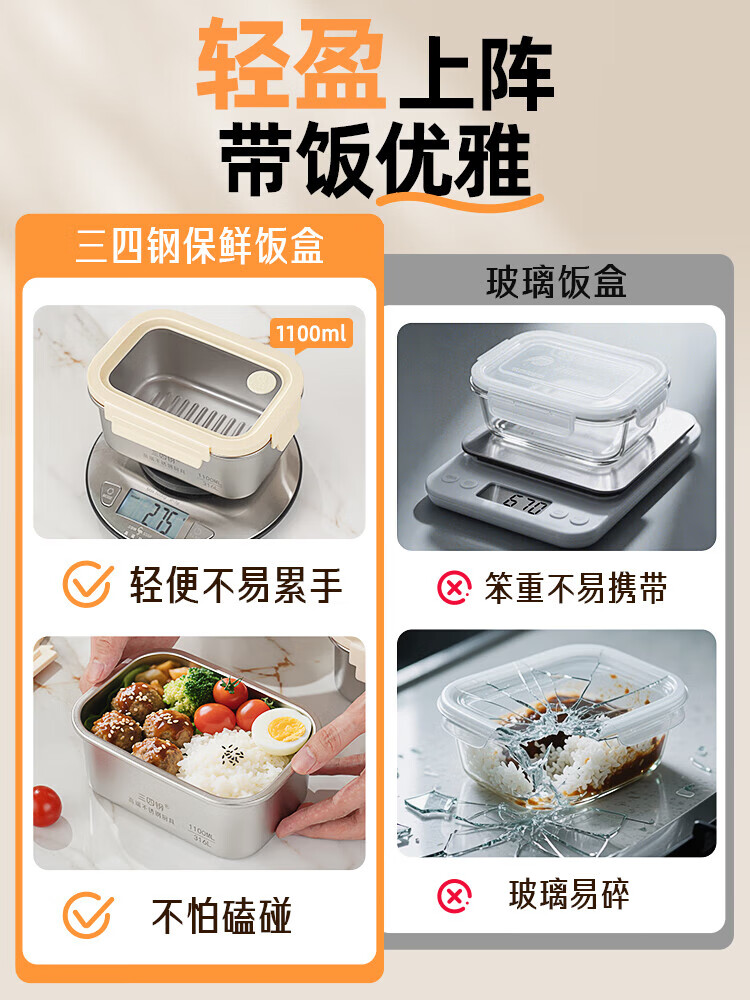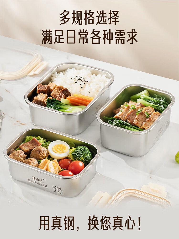 Sansi Steel stainless steel lunch box 316L sealed fresh-keeping lunch box fruit lunch box for primary school students with rice 1100ml 38422
