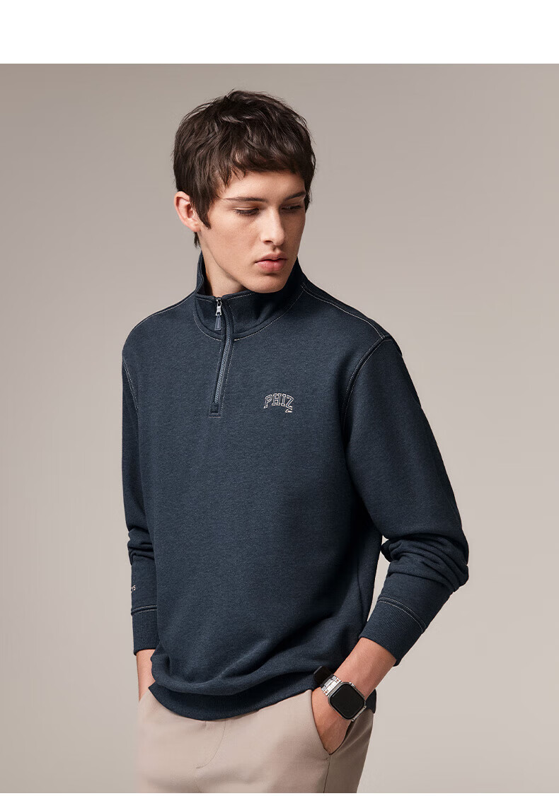 HAZZYS Men's Clothing Spring and Autumn Simple Casual Men's Tops Half-front Pullover Sweatshirts for Men ABTZE0CCI36