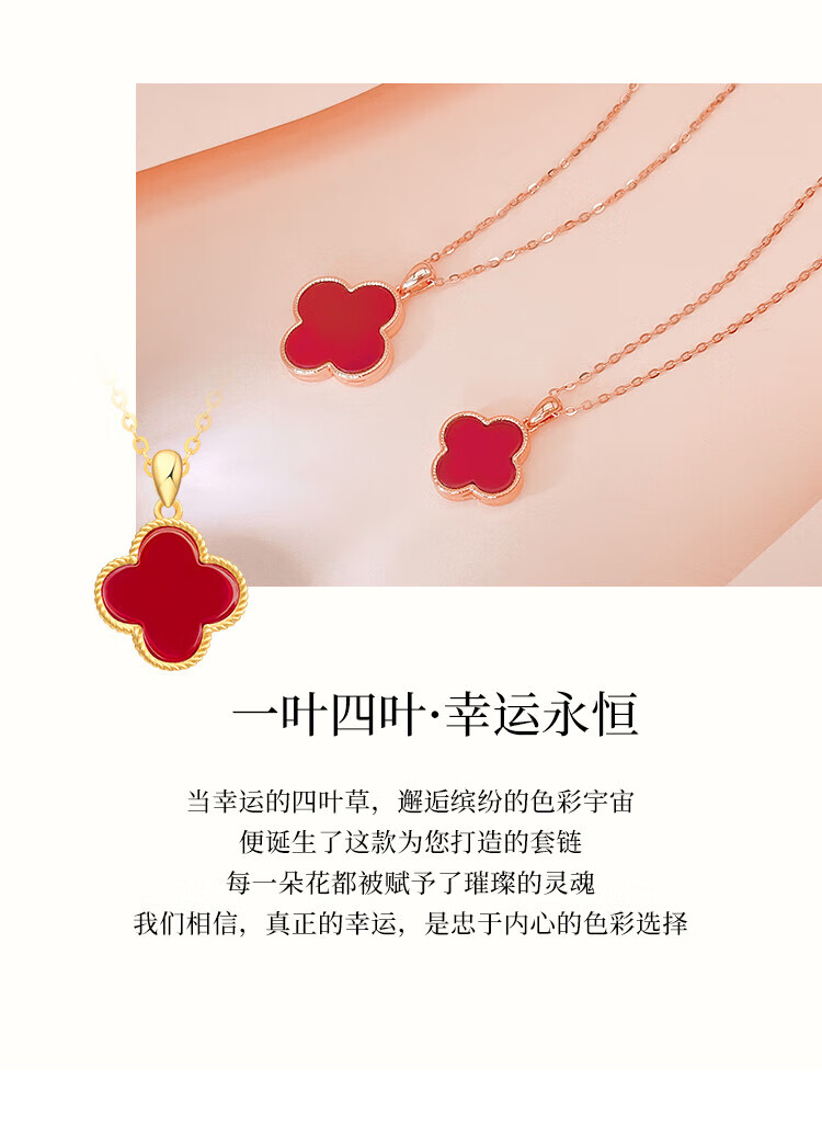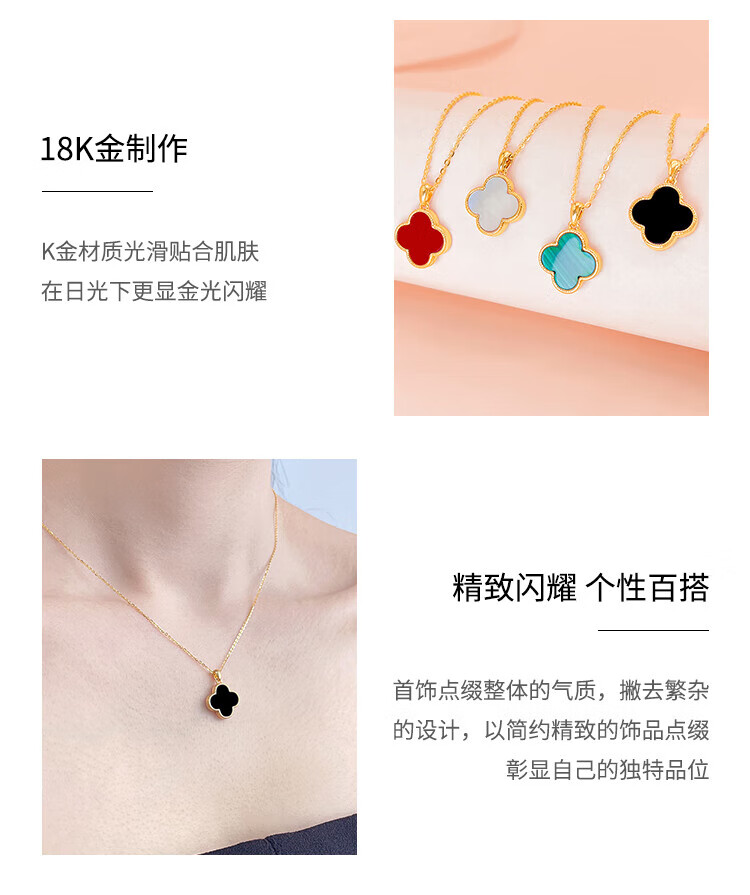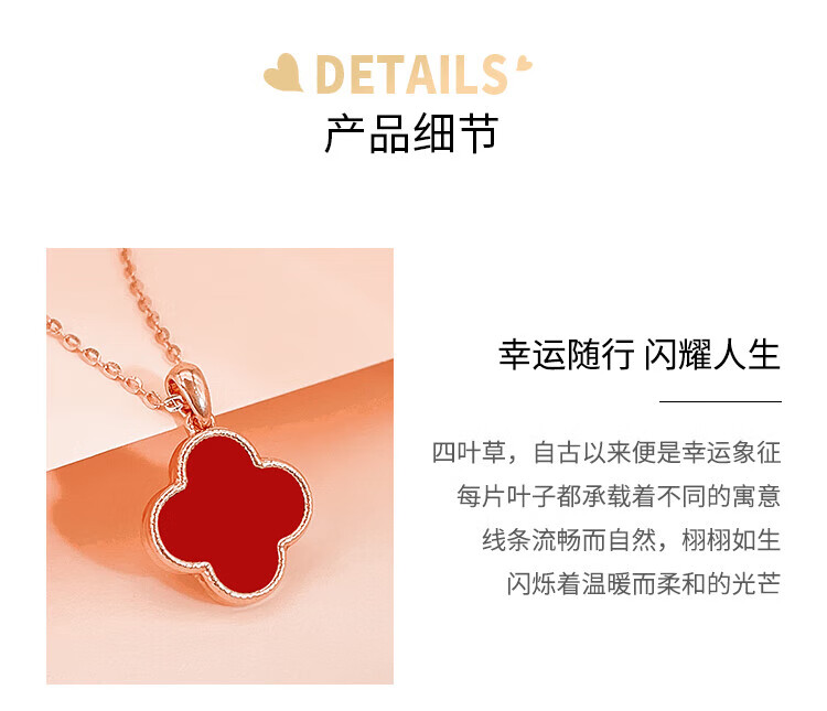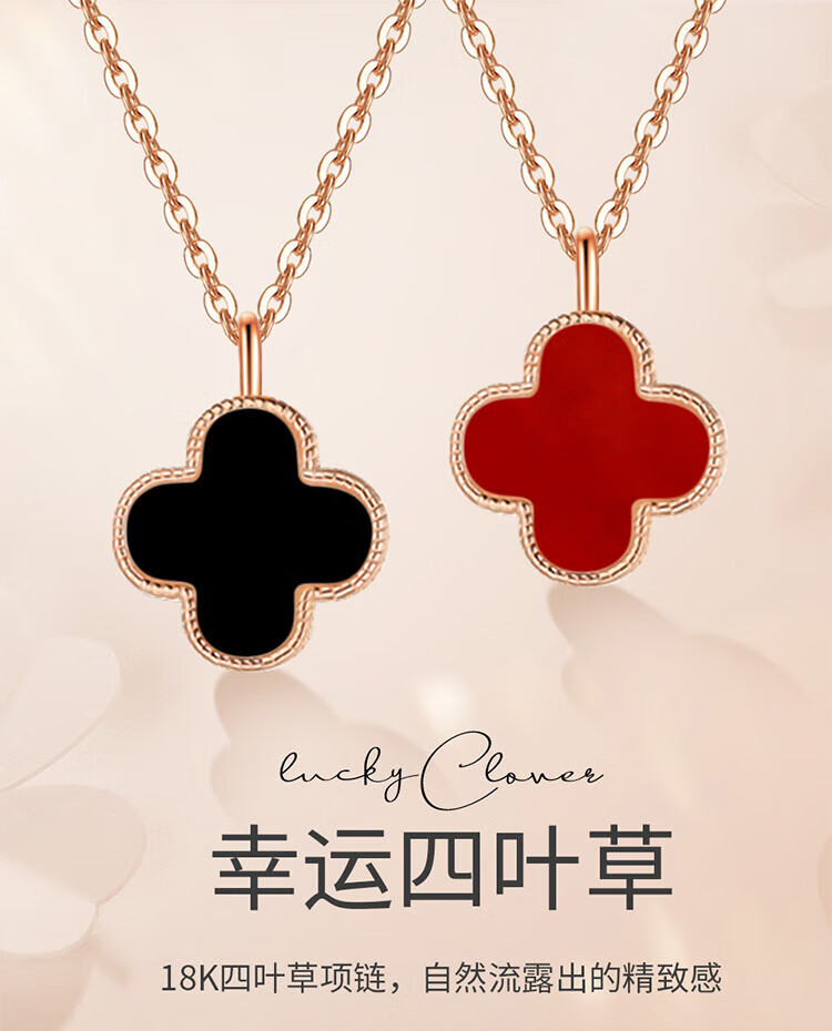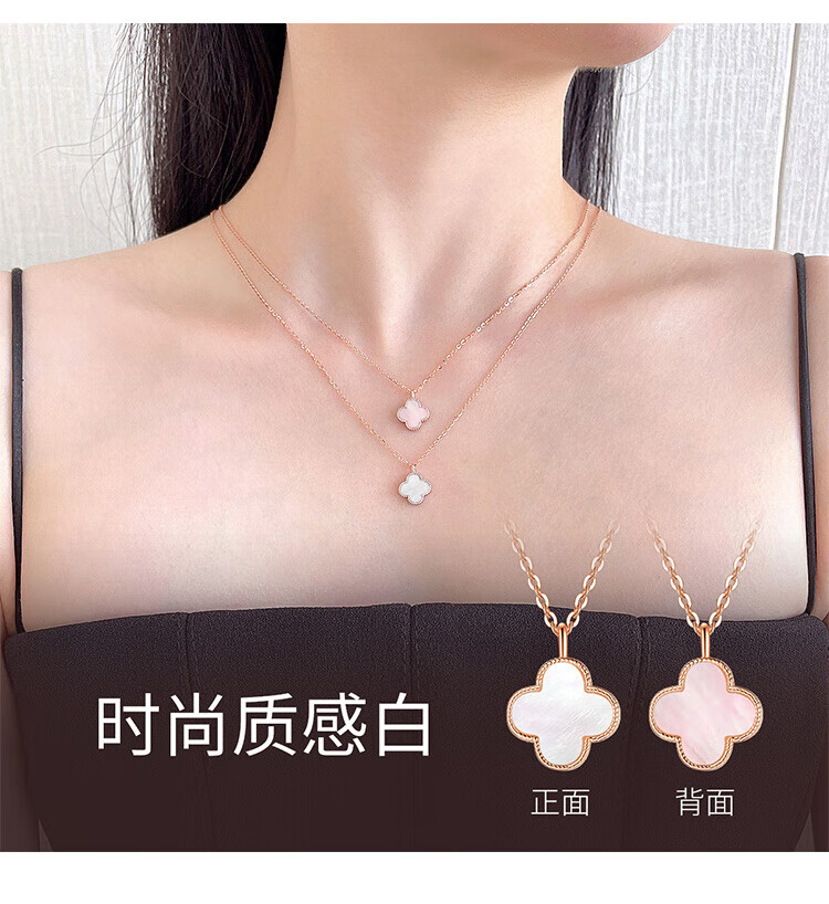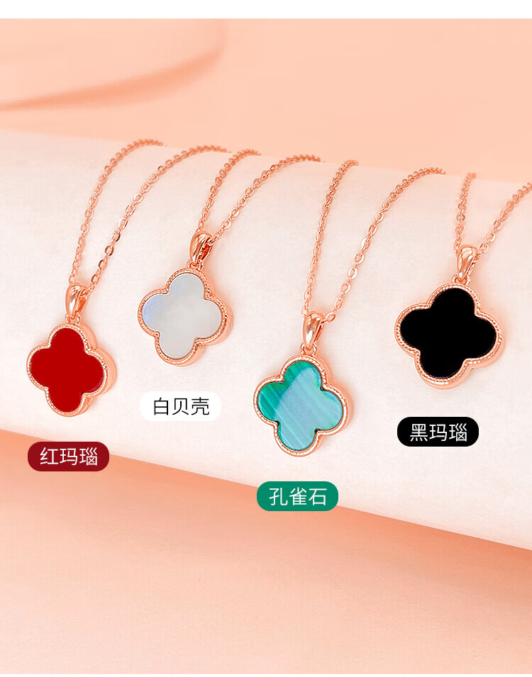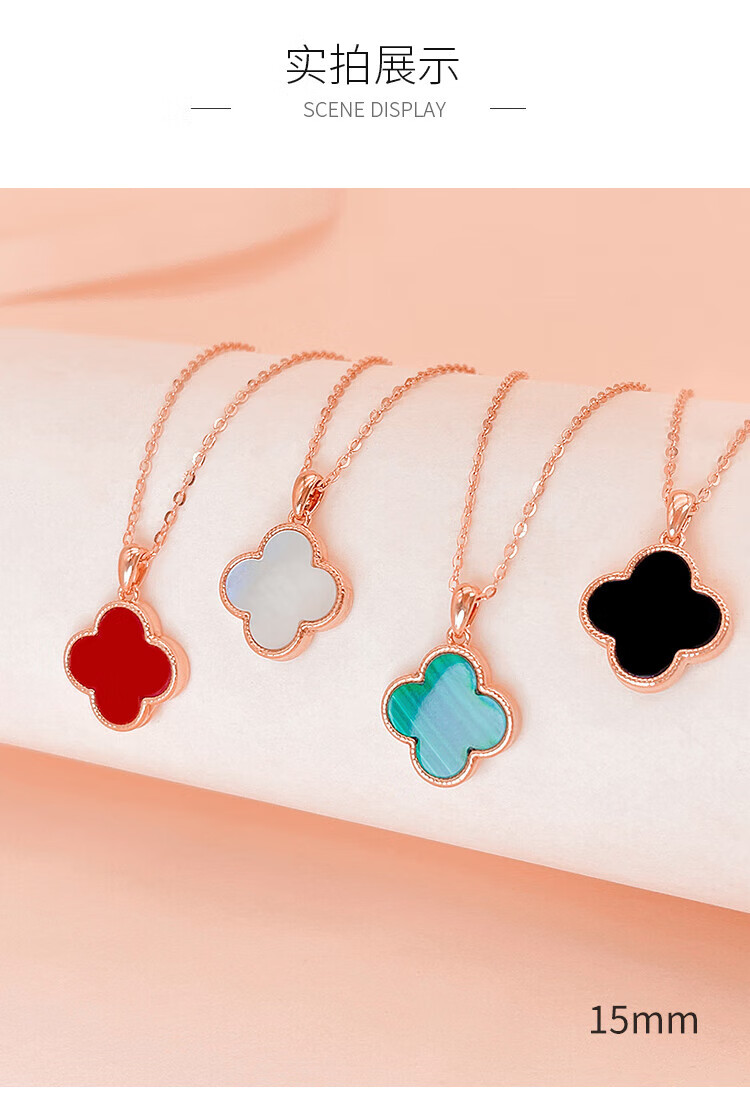 Demouni 18K gold necklace, classic lucky four-leaf clover rose gold necklace, one for two wears, Chinese Valentine's Day gift