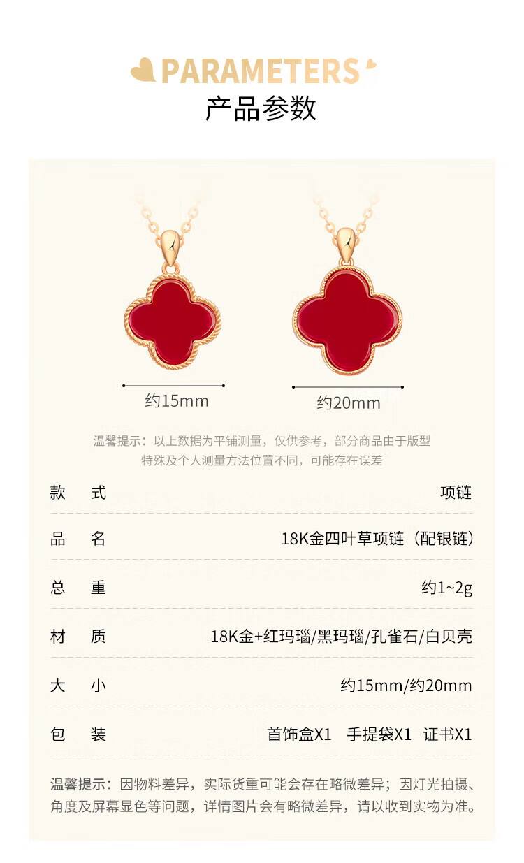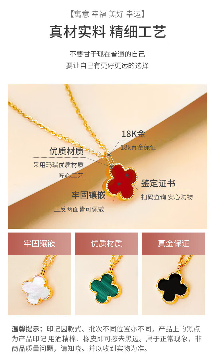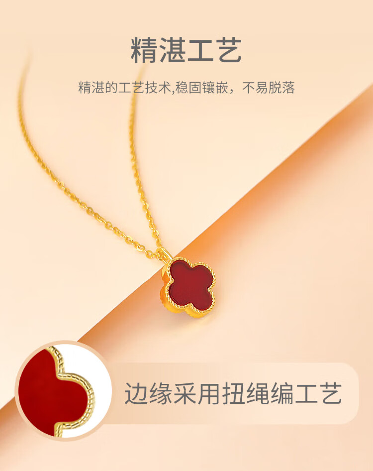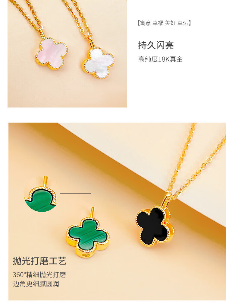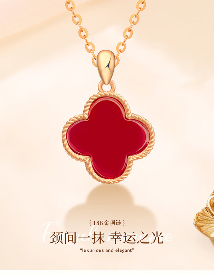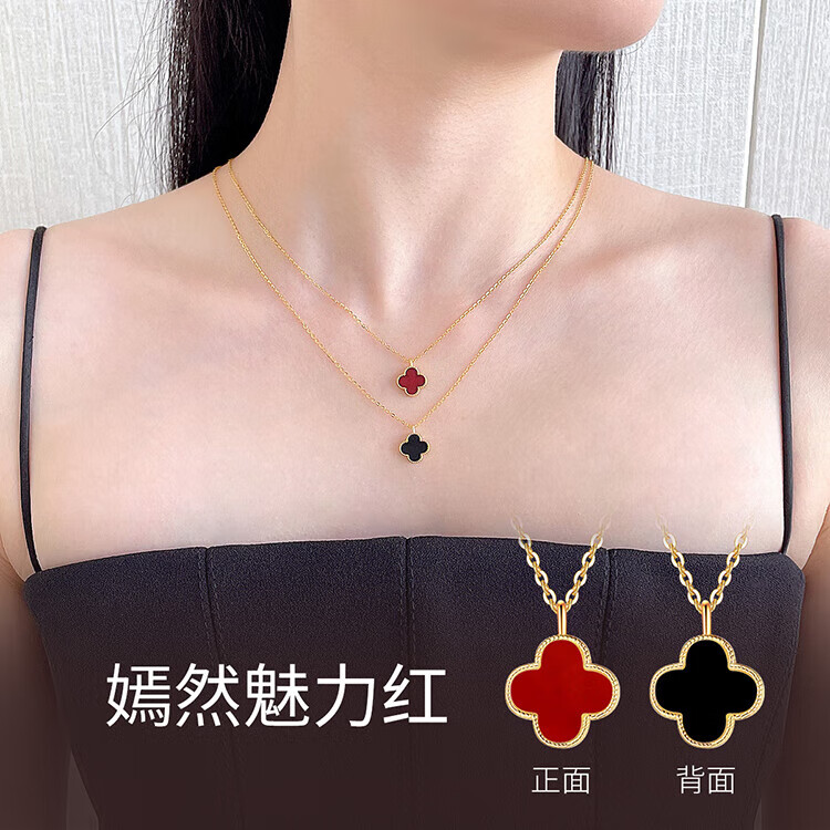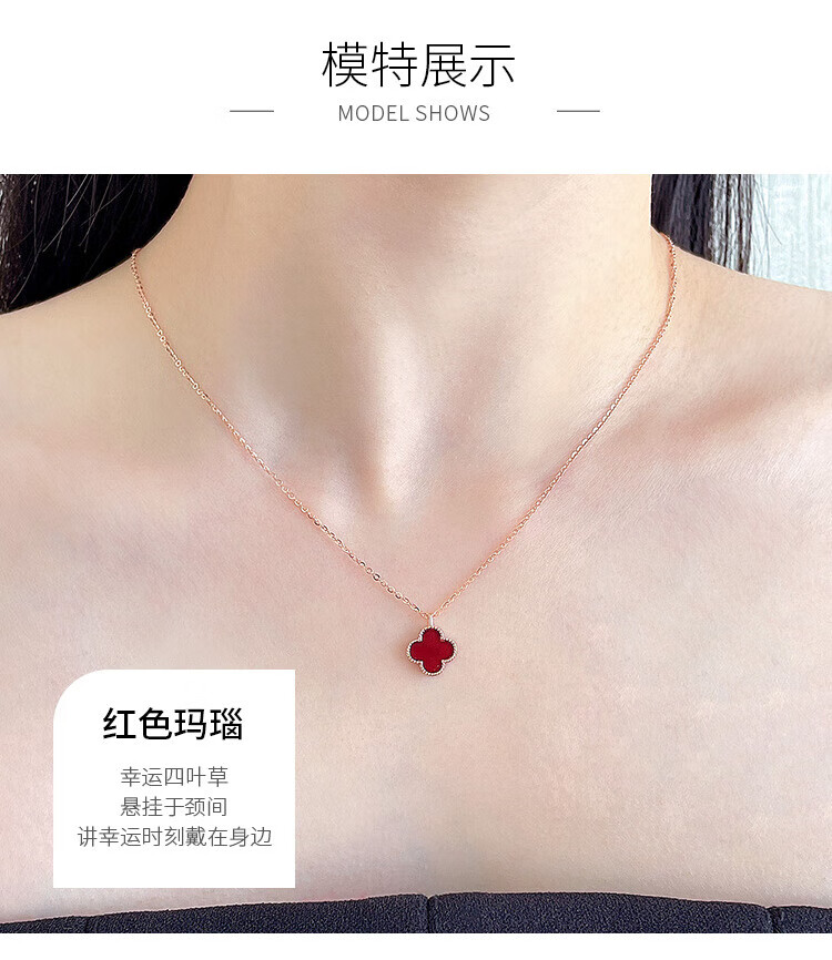 Demouni 18K gold necklace, classic lucky four-leaf clover rose gold necklace, one for two wears, Chinese Valentine's Day gift