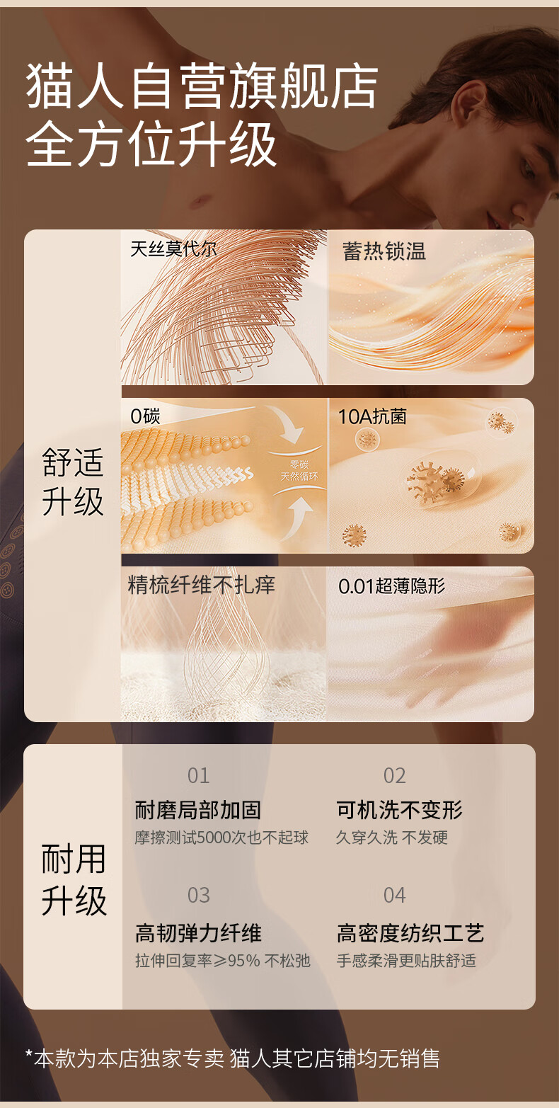 Catman Modal men's long johns men's anti-scrotum moisture-free underwear thin section 25 new high-end thermal underwear