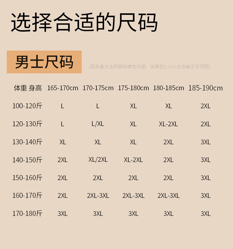 China (cm) 160-165/84-86 165-170 / 88-90 167-172 / 92-96 168-173 / 98-102 170-176 / 106-110
