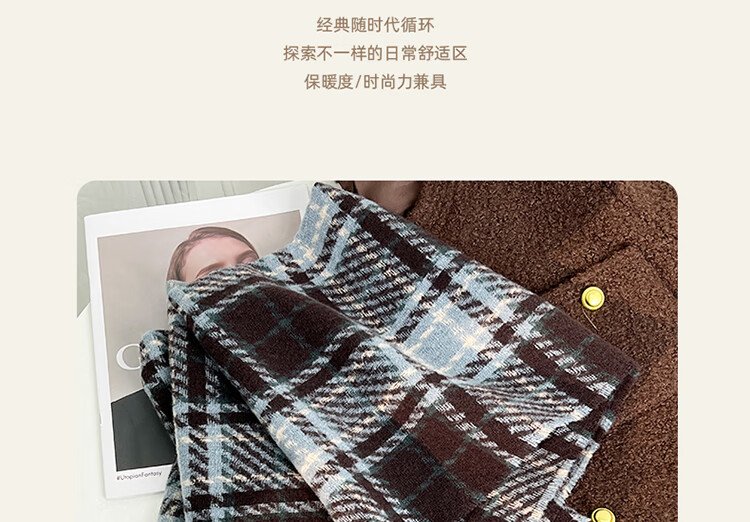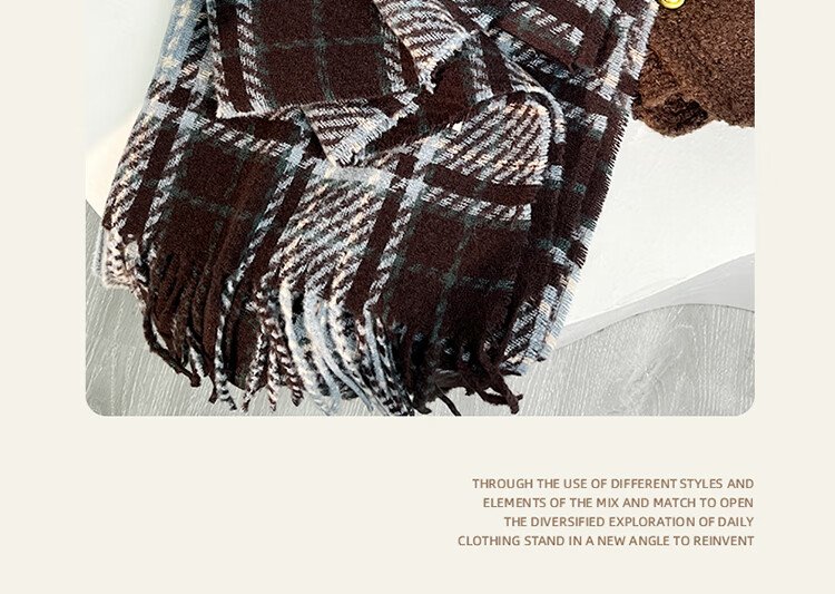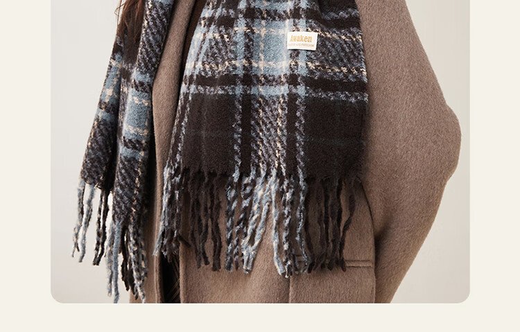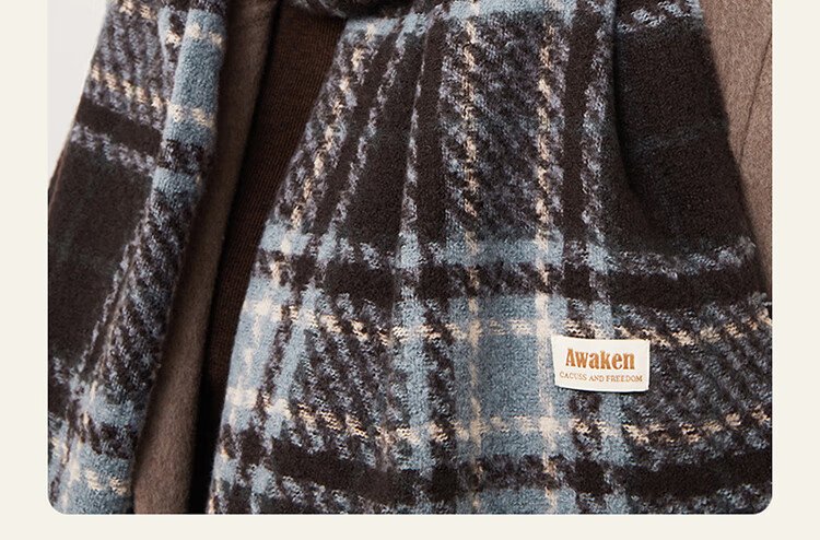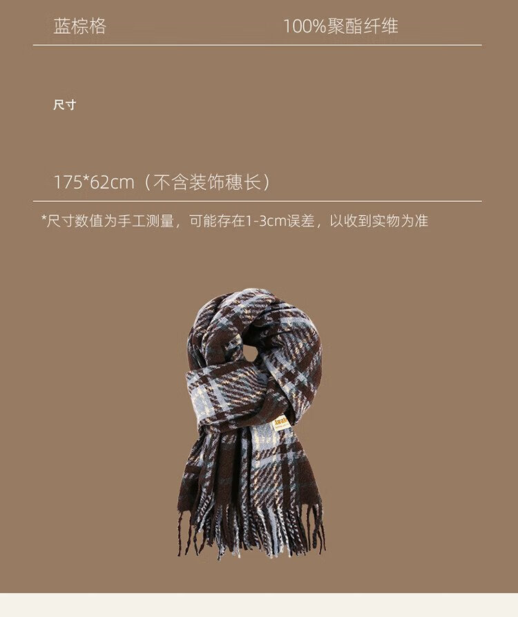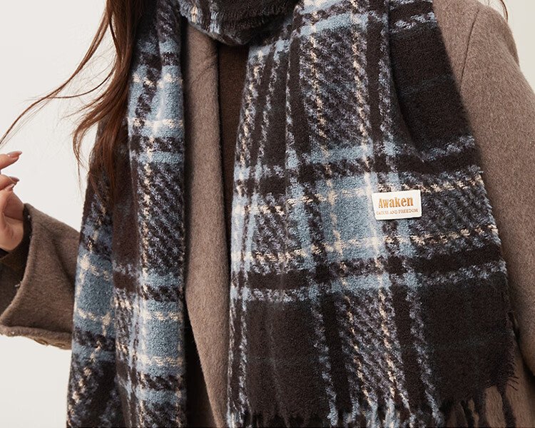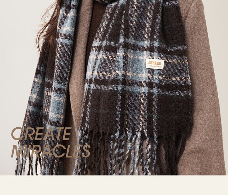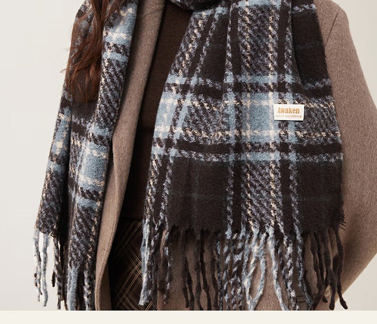 CACUSS Scarf Women's Autumn and Winter Warm Scarf Outdoor Cold-proof Shawl Women's Tassel Design Birthday Gift Blue Brown Check