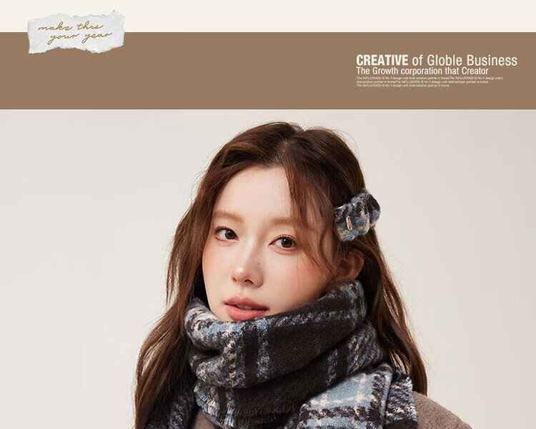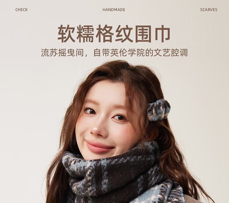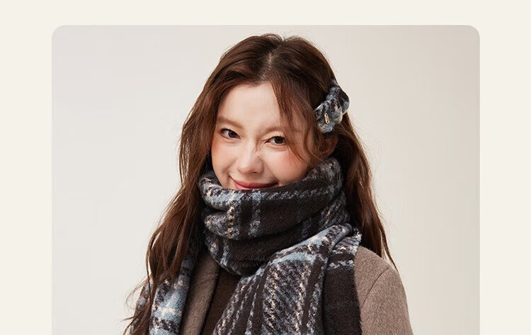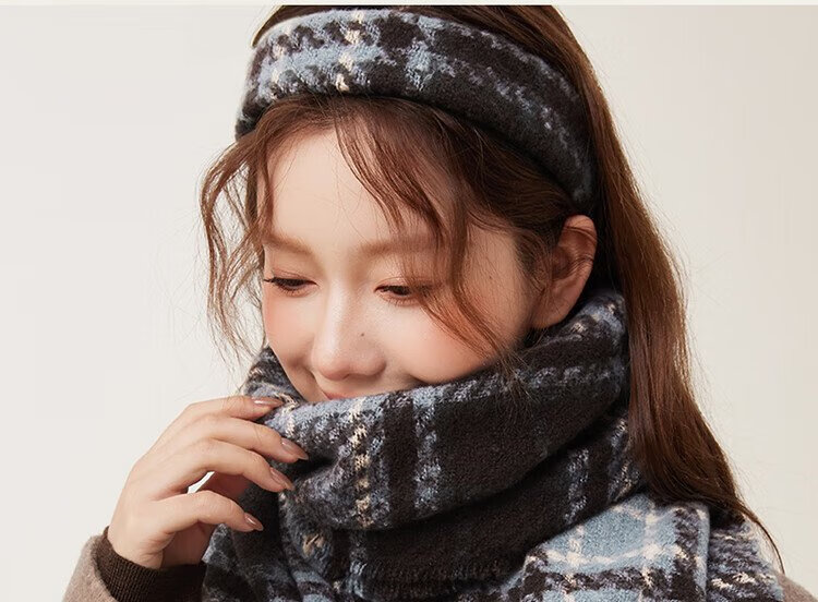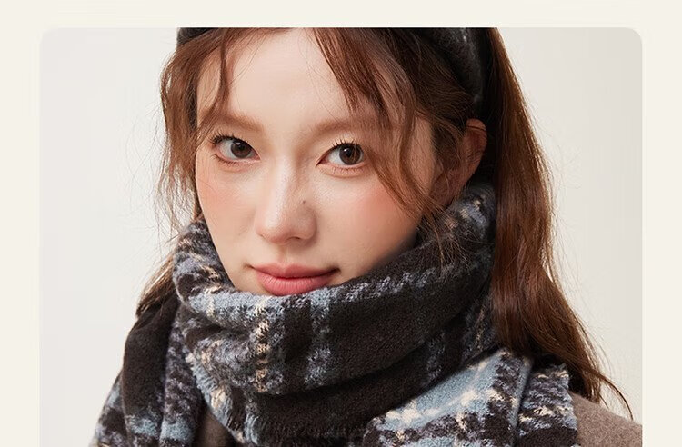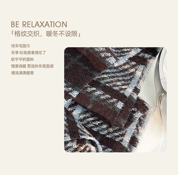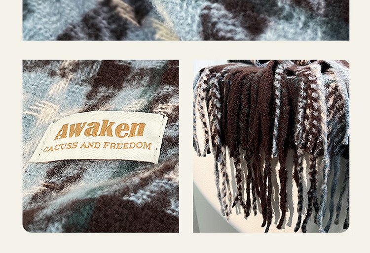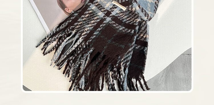 CACUSS Scarf Women's Autumn and Winter Warm Scarf Outdoor Cold-proof Shawl Women's Tassel Design Birthday Gift Blue Brown Check