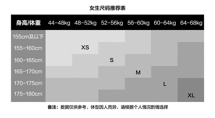 China (cm) 160-165/84-86 165-170 / 88-90 167-172 / 92-96 168-173 / 98-102 170-176 / 106-110