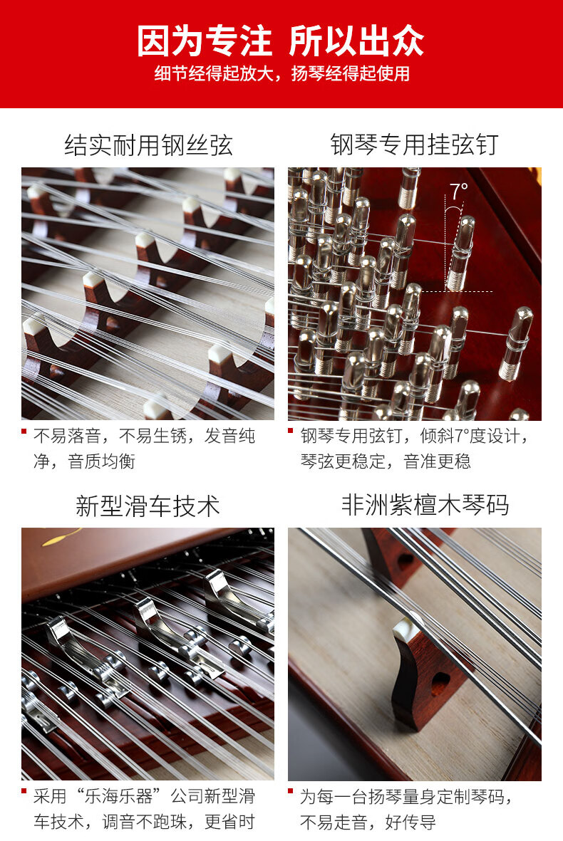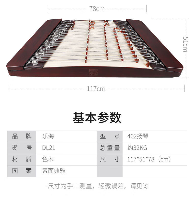 Lehai (THE OCEAN OF MUSIC) Yangqin instrument beginners' introductory practice teaching 402 Yangqin color wood burgundy plain surface dulcimer multiple options DL21 plain surface