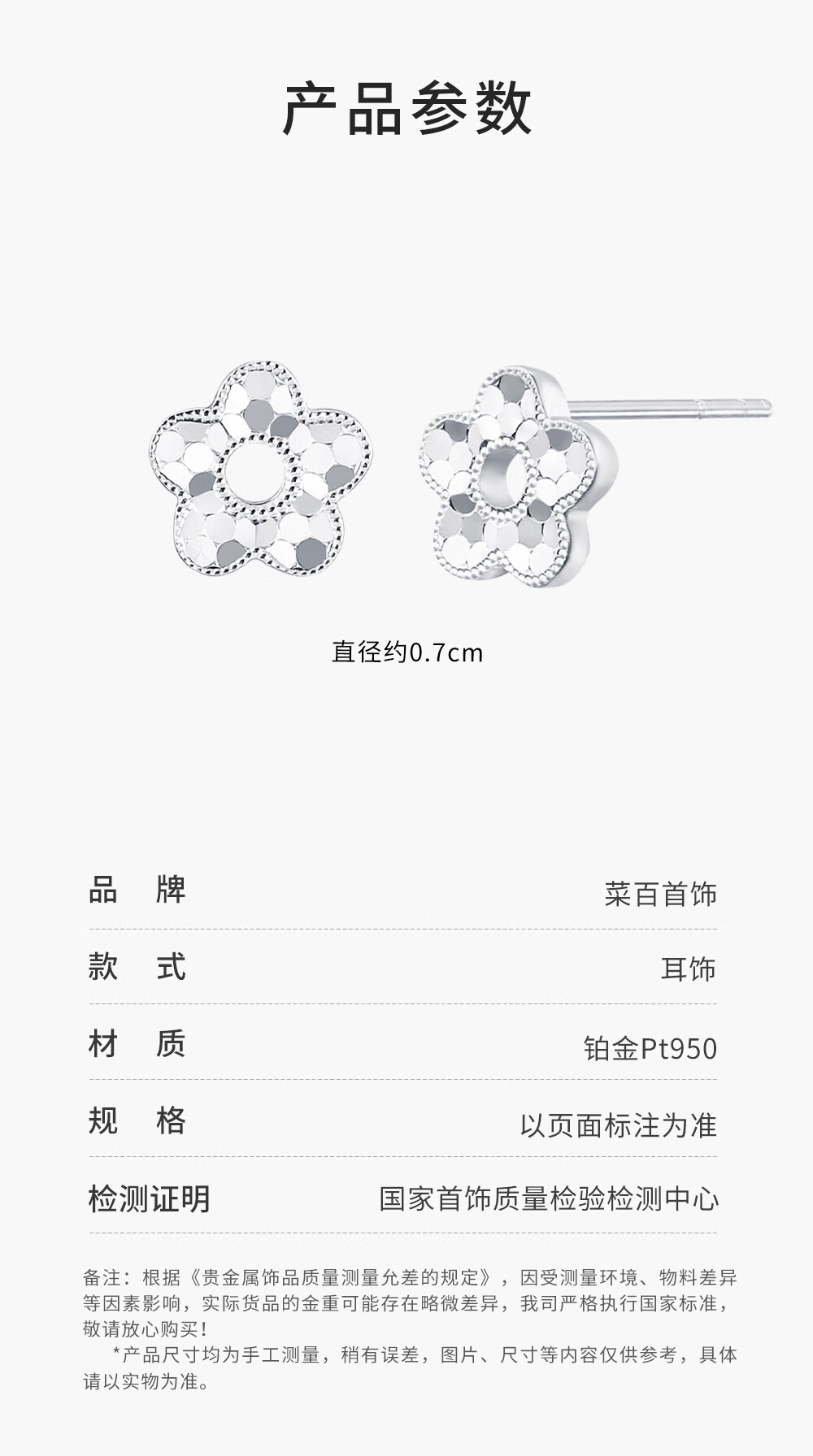 Caibai Jewelry Platinum Earrings Pt950 Platinum Sweet Flower Fashion Fish Scale Flower Earrings Price Approximately 2.00g
