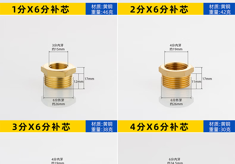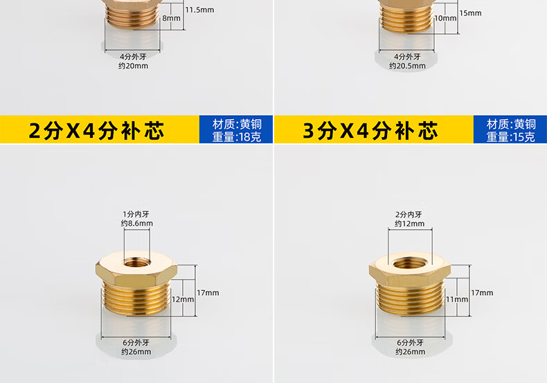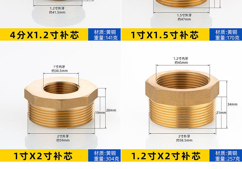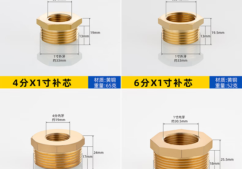 CHJ core-filling reducing joint, core-filling joint, core-filling joint outer wire, inner and outer wire, water heating pipe and air pipe accessories, 1-inch outer wire, 4-point inner wire, 2 pieces