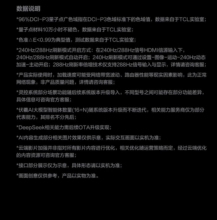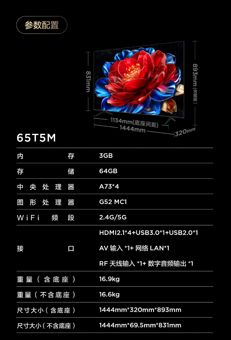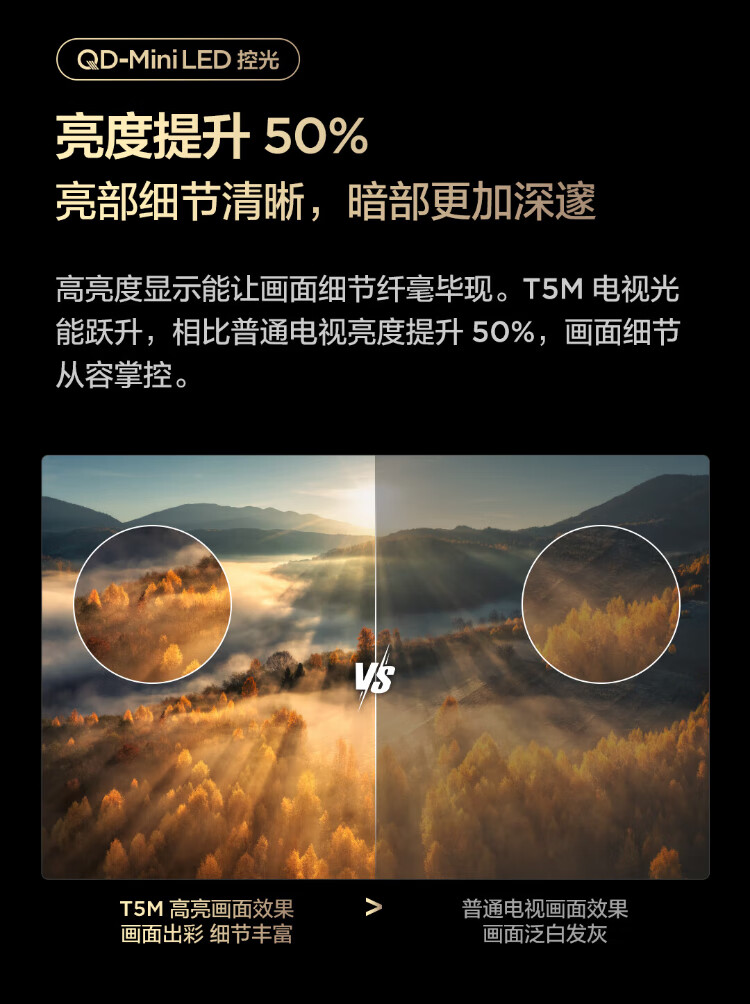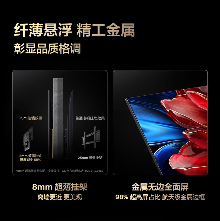TCL TV 65T5M 65-inch QD-Mini LED light control 288Hz high brush QLED quantum dot WiFi6 ultra-thin state subsidy