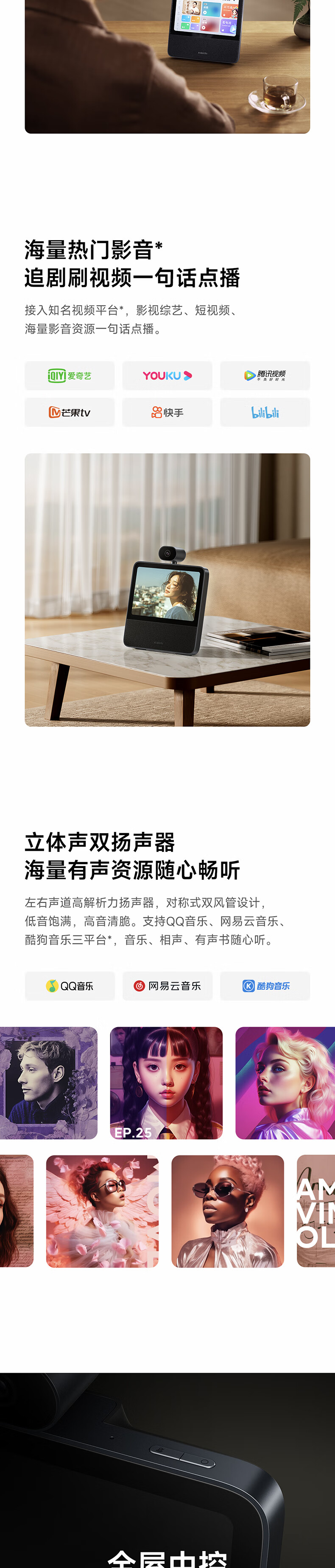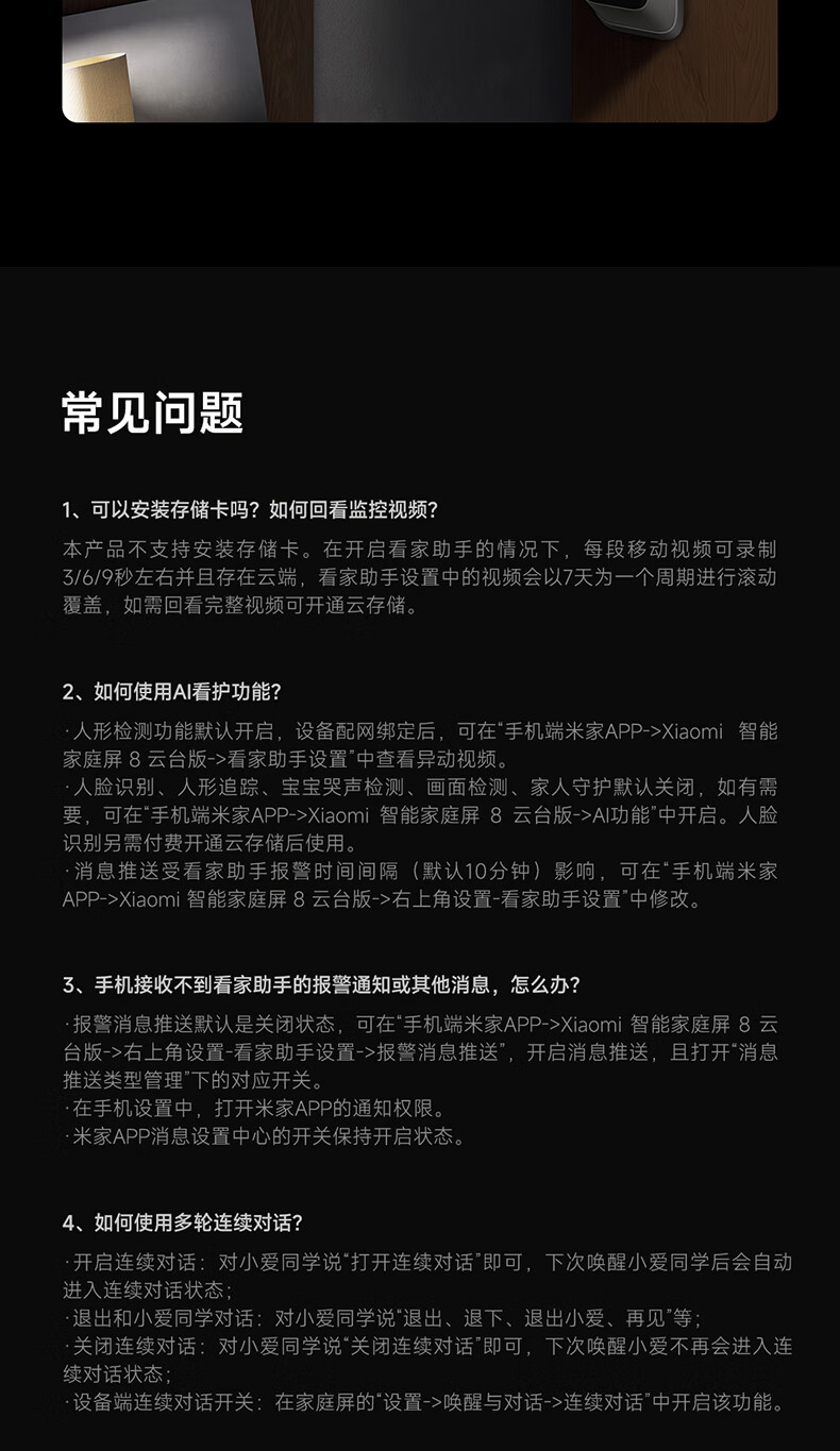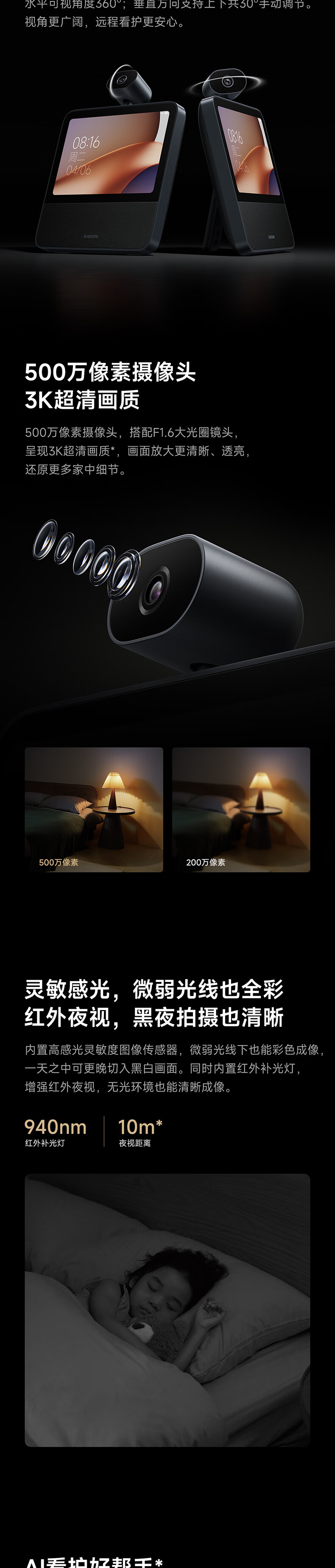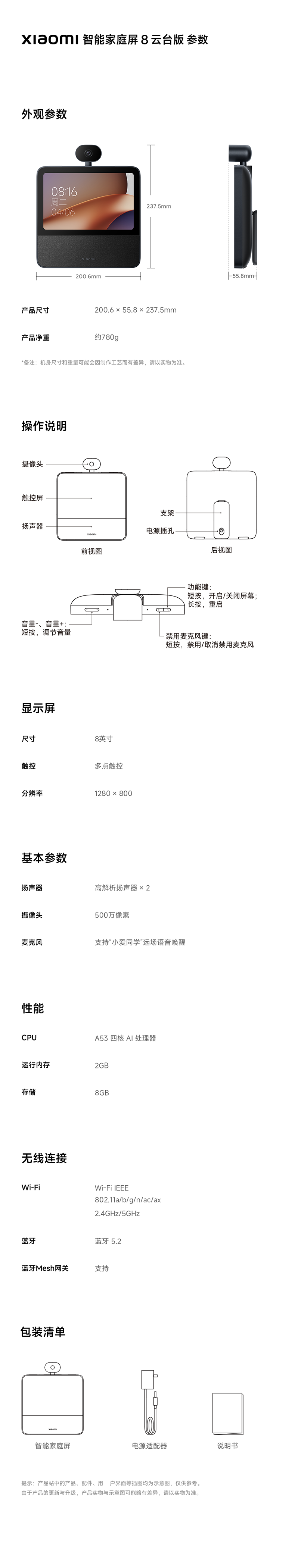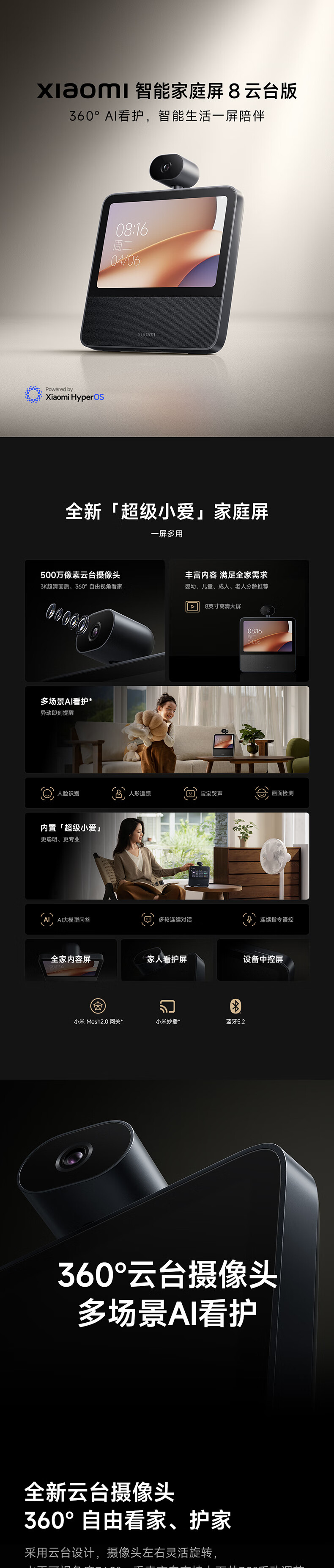 Xiaomi (MI) Xiaomi smart home screen 8 PTZ version, smart speaker and camera all-in-one machine, Bluetooth audio remote care, gift for the elderly, Xiao Ai large model