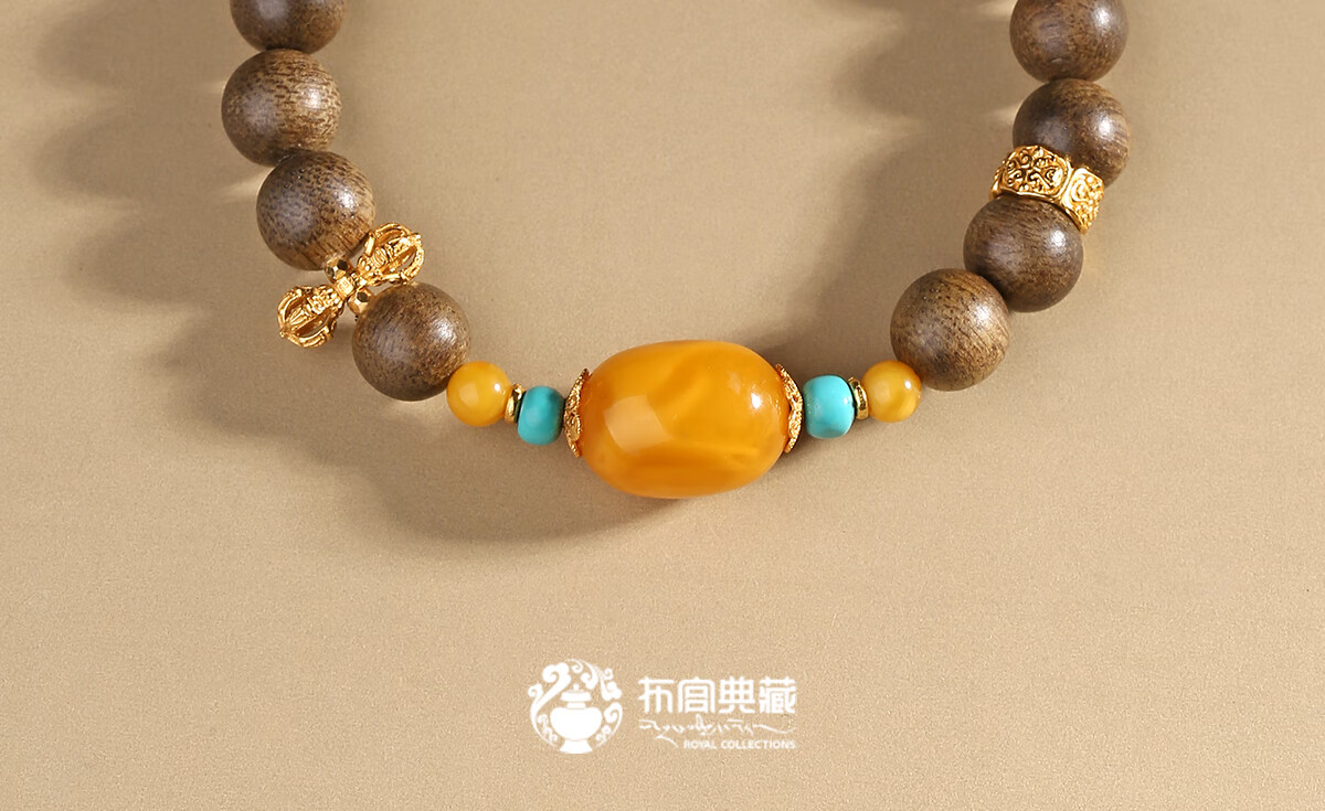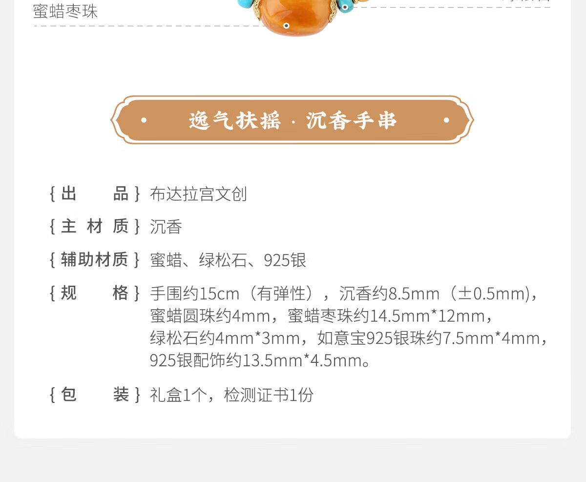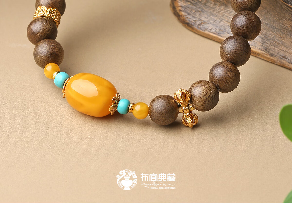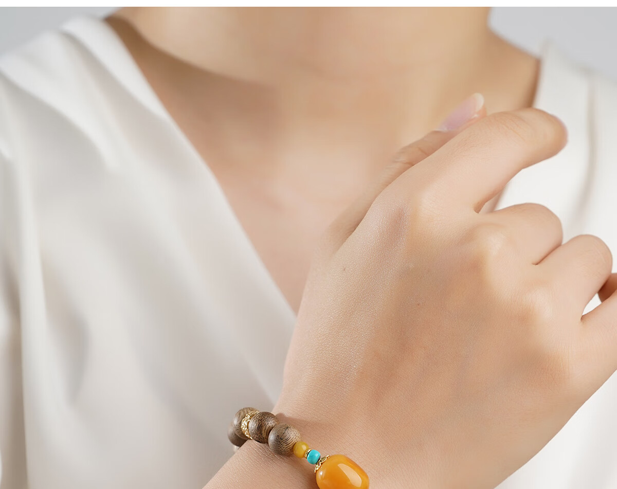 Potala Palace Agarwood Beeswax Green Pine Bracelet 925 Silver Wooden Toy Transfer Bead Bracelet Men's and Women's Birthday Gift for Boyfriend