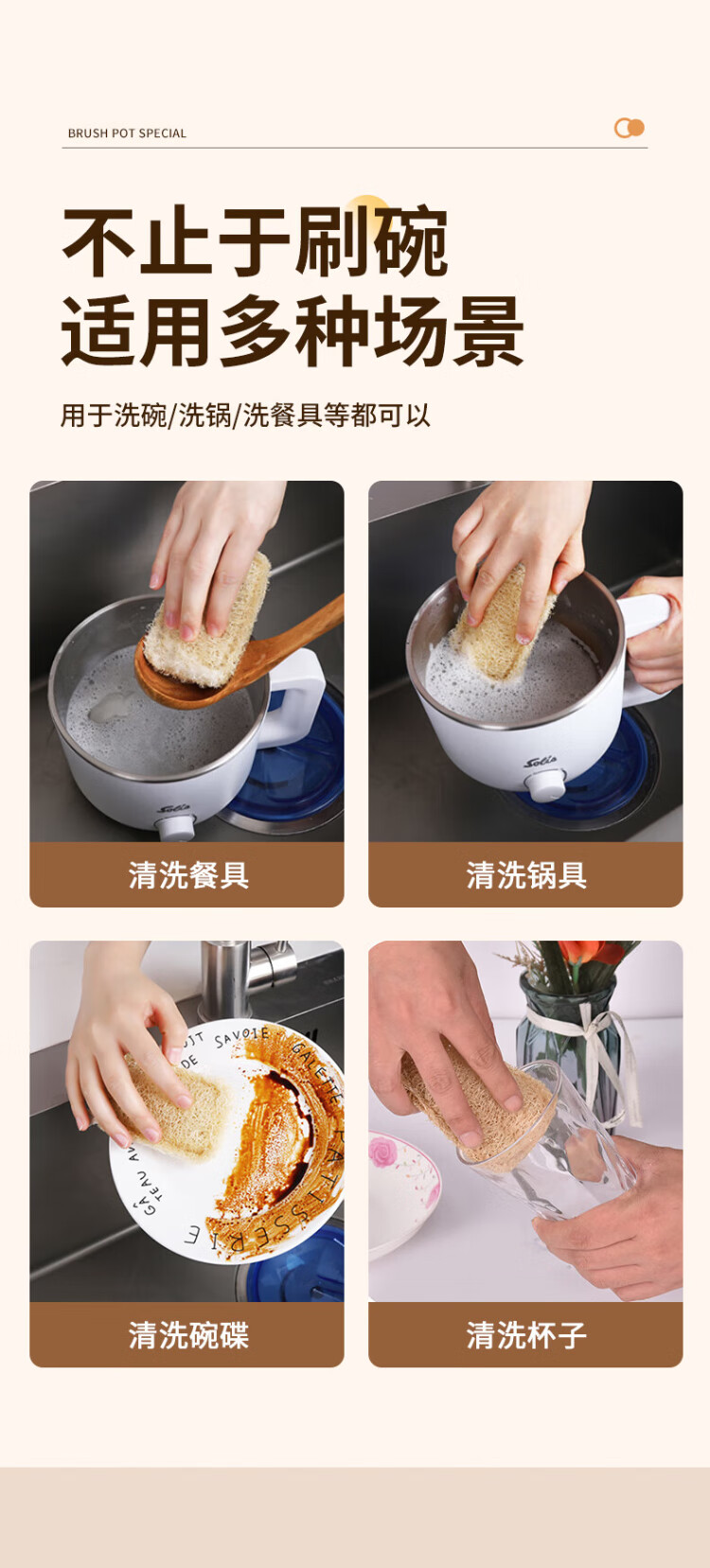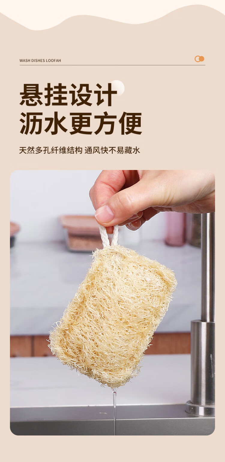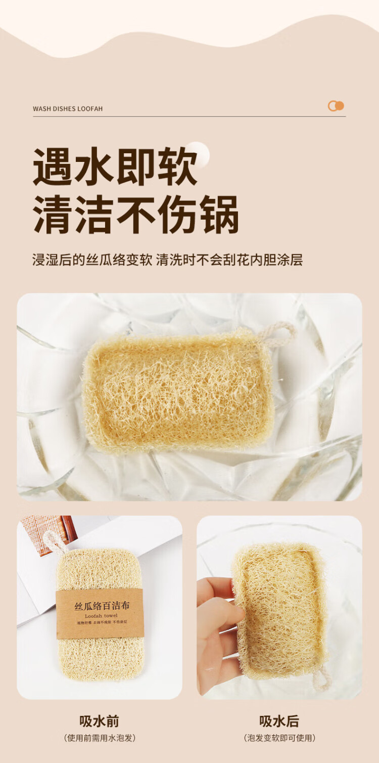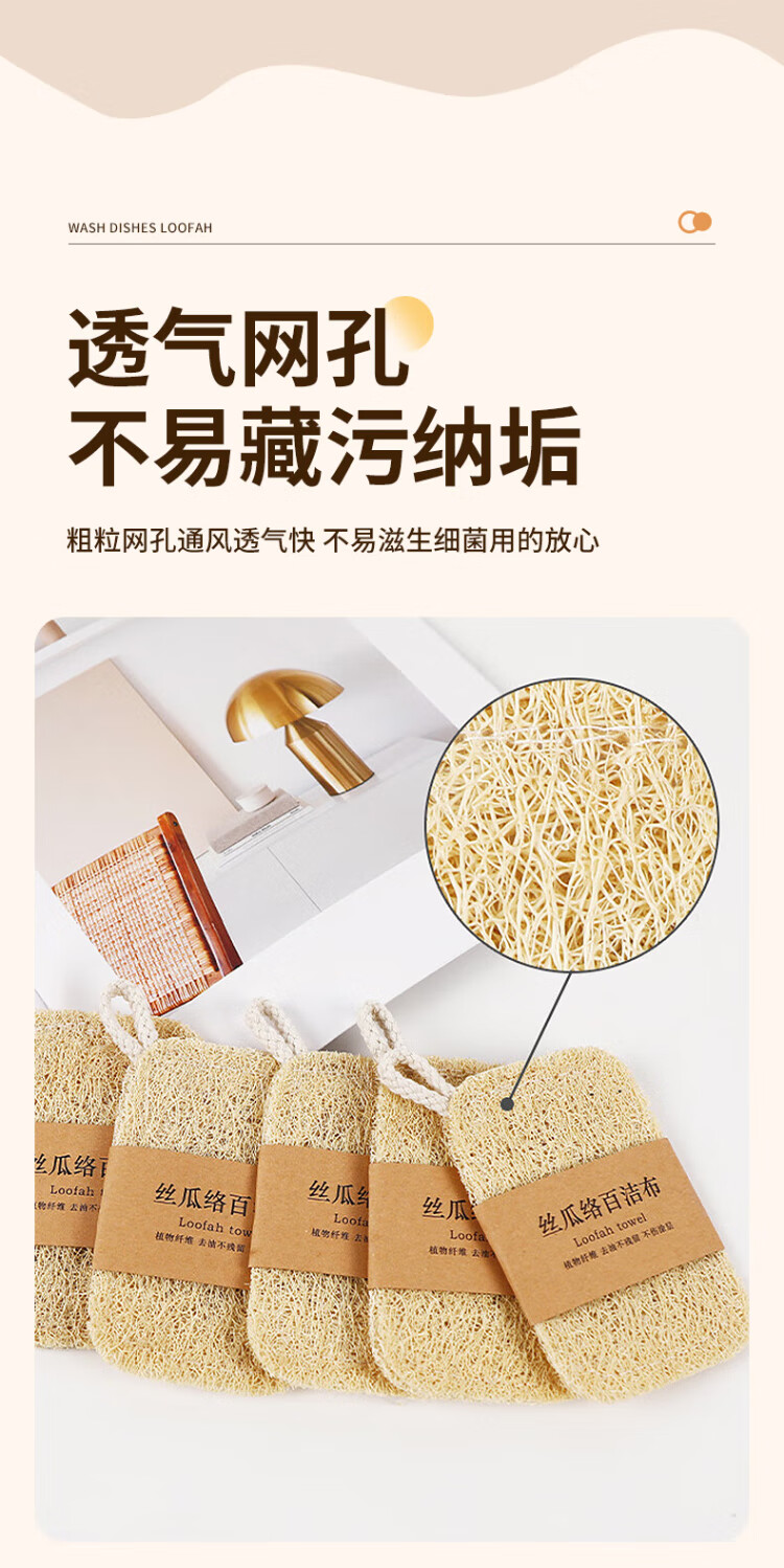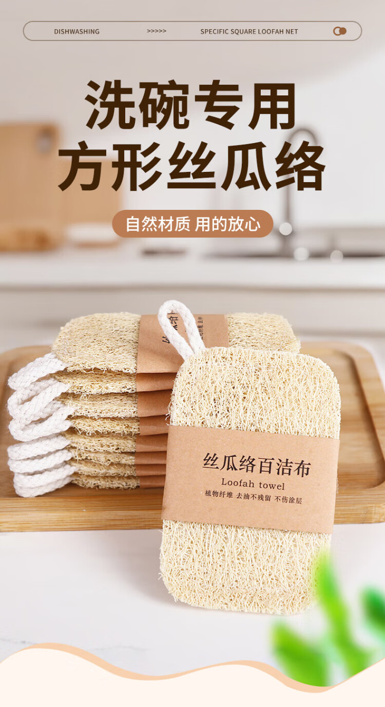 Dingqing loofah dishwashing dishwashing pot multi-functional natural loofah pulp dishwashing rags housework 5 pack
