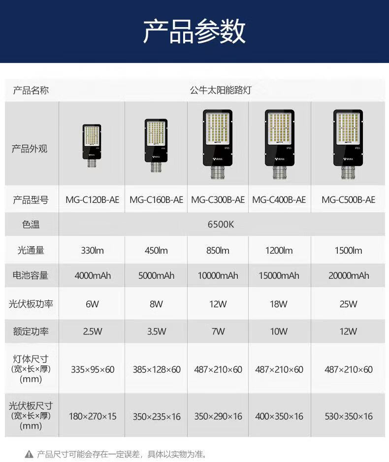 BULL solar street light outdoor yard light waterproof and anti-collision intelligent light control MG-C300B-AE luminous flux 850lm
