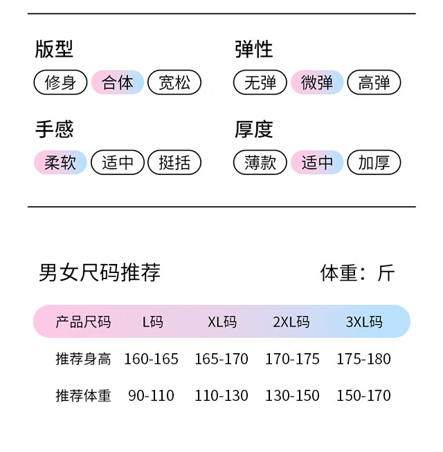 China (cm) 160-165/84-86 165-170 / 88-90 167-172 / 92-96 168-173 / 98-102 170-176 / 106-110