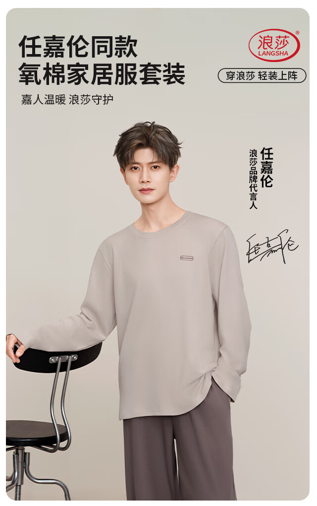 Langsha's 25th-year new product, the same style as celebrity Ren Jialun, safe quality pajamas for men and women, oxygen cotton antibacterial home clothes