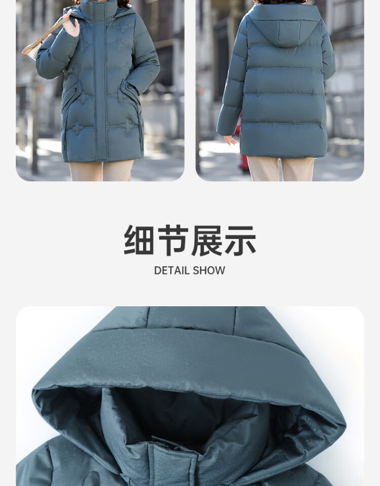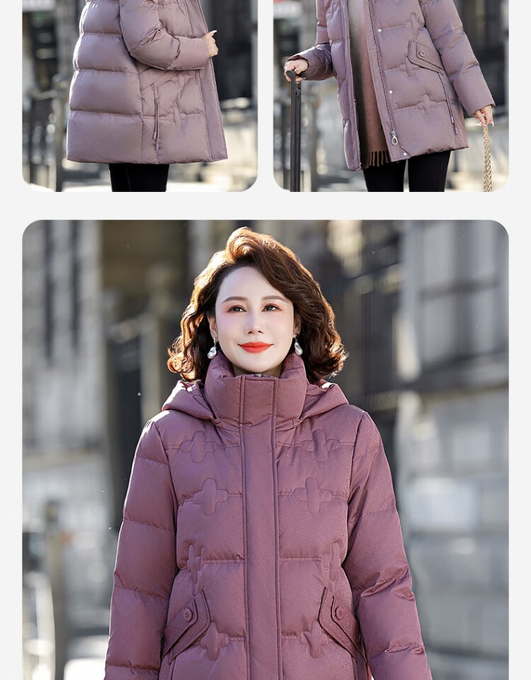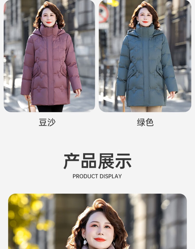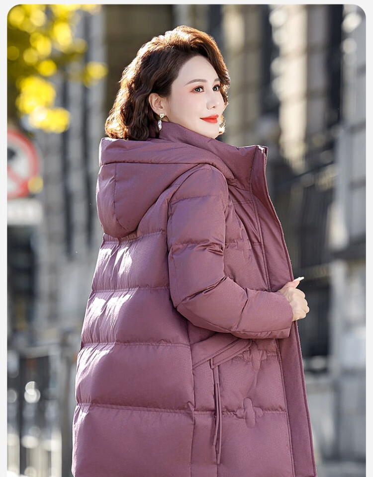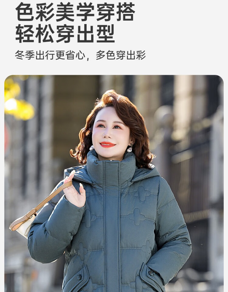 Flying in the snow down jacket for women 2025 winter mid-length loose hooded middle-aged and elderly thick coat mother's wear natural green 2XL