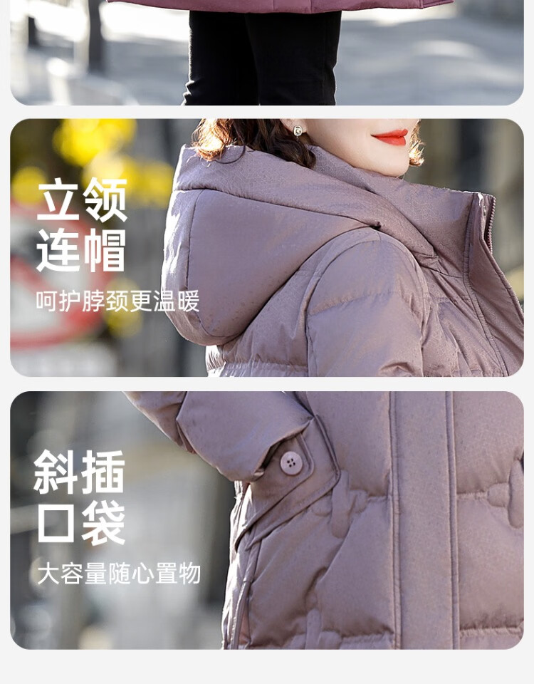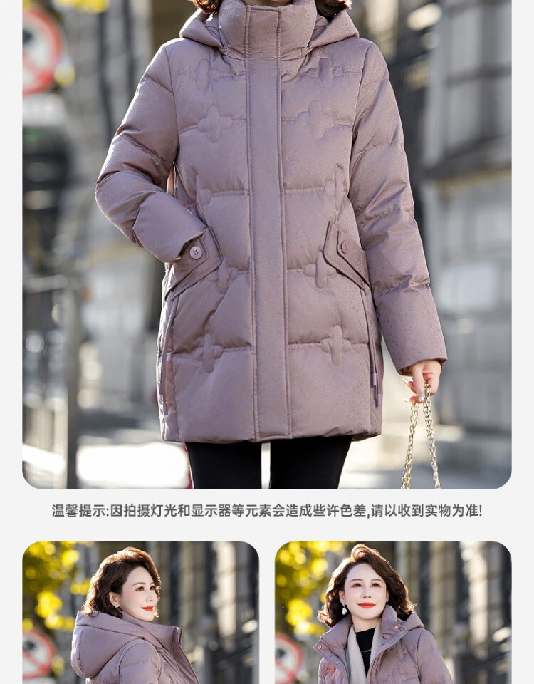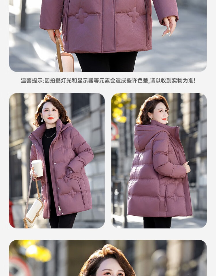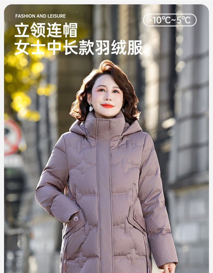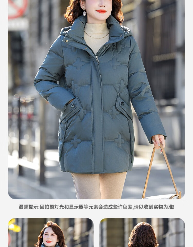 Flying in the snow down jacket for women 2025 winter mid-length loose hooded middle-aged and elderly thick coat mother's wear natural green 2XL