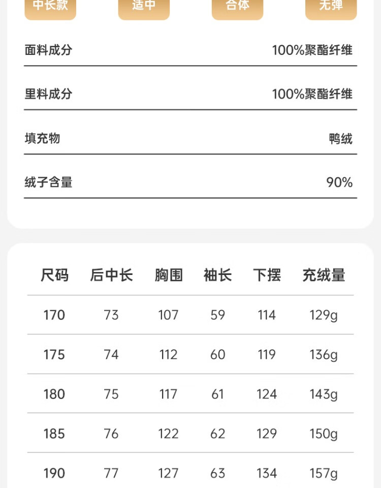 China (cm) 165 / 88-90 170 / 96-98 175 / 108-110 180 / 118-122 185 / 126-130
