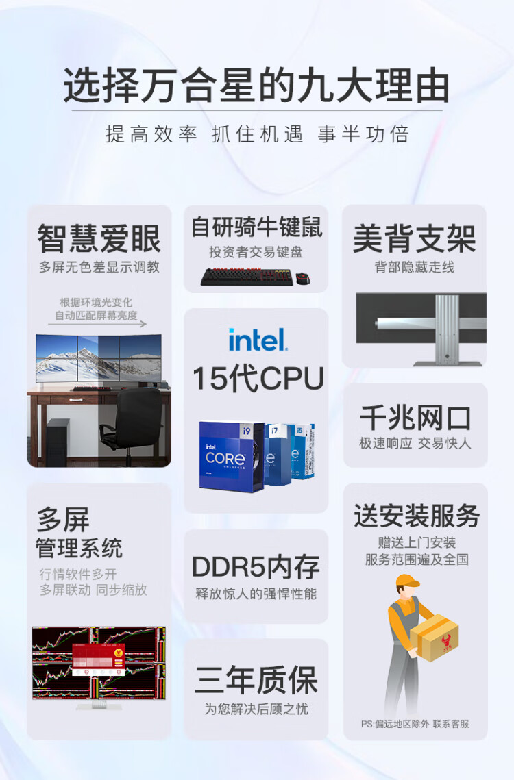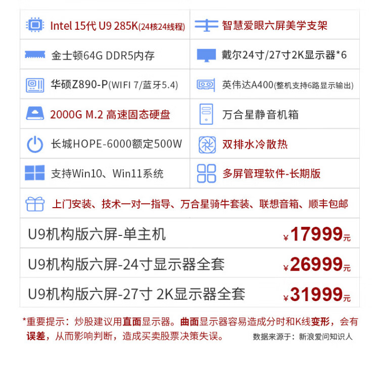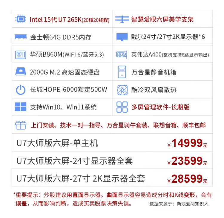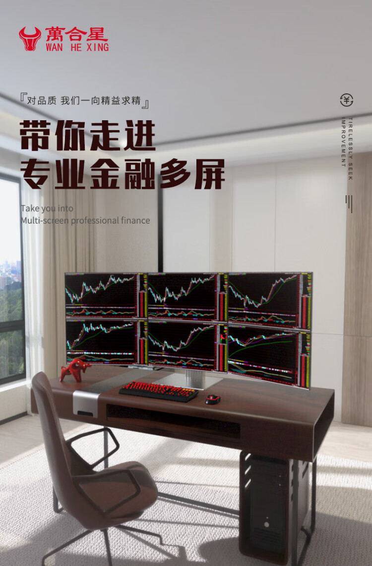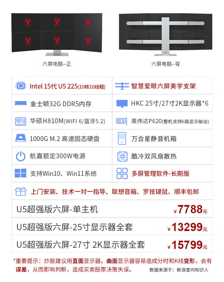 WAN HE XING WAN HE XING multi-screen computer six-screen professional stock traders use one multi-screen stock and foreign exchange futures assembly computer institutional version 15th generation U9 64G 2000G丨Aesthetic bracket 27-inch 2K monitor complete set (including door-to-door installation)