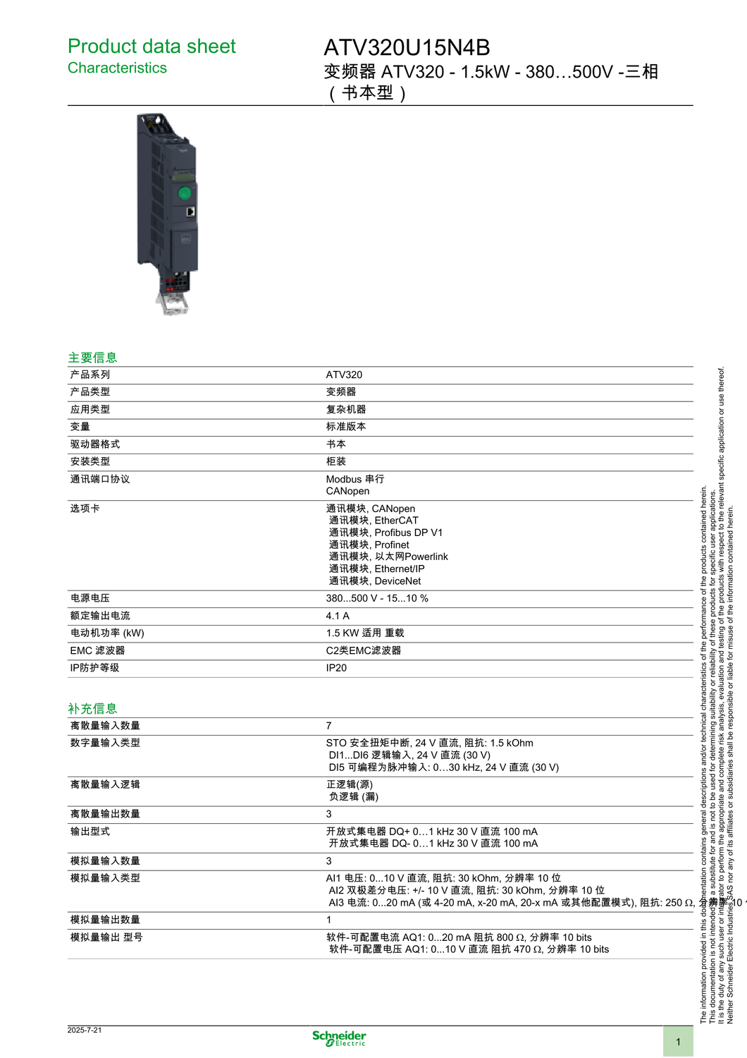 Schneider Electric inverter ATV320 1.5kW three-phase (book type) ATV320U15N4B