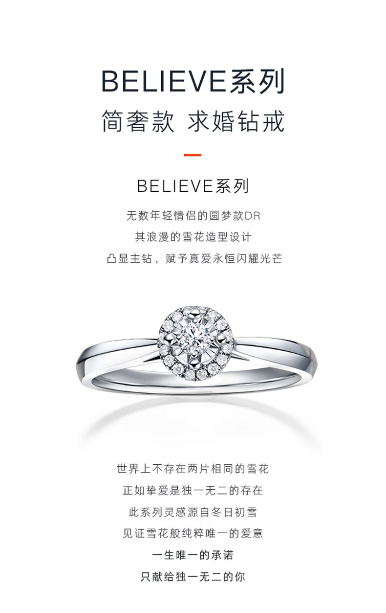 DR proposal diamond ring platinum BELIEVE simple luxury wish bouquet engagement diamond holiday gift WJ0055 5 points H color SI1 small amount in stock + gift box