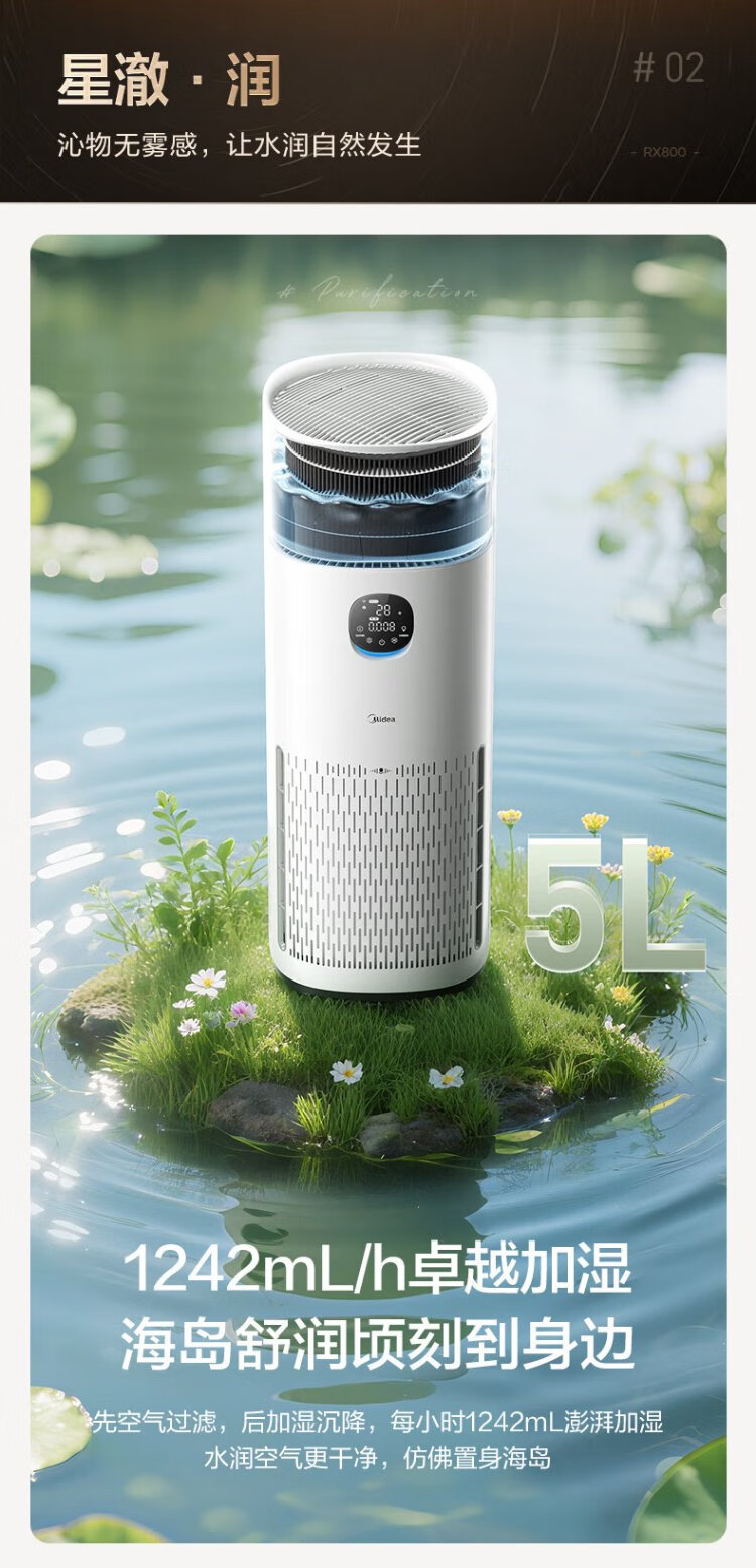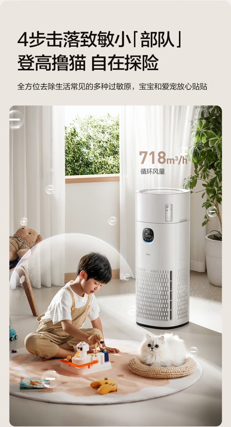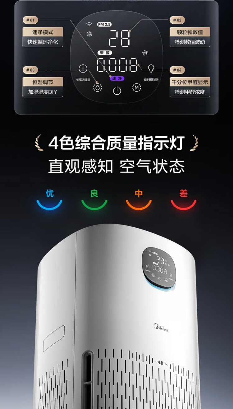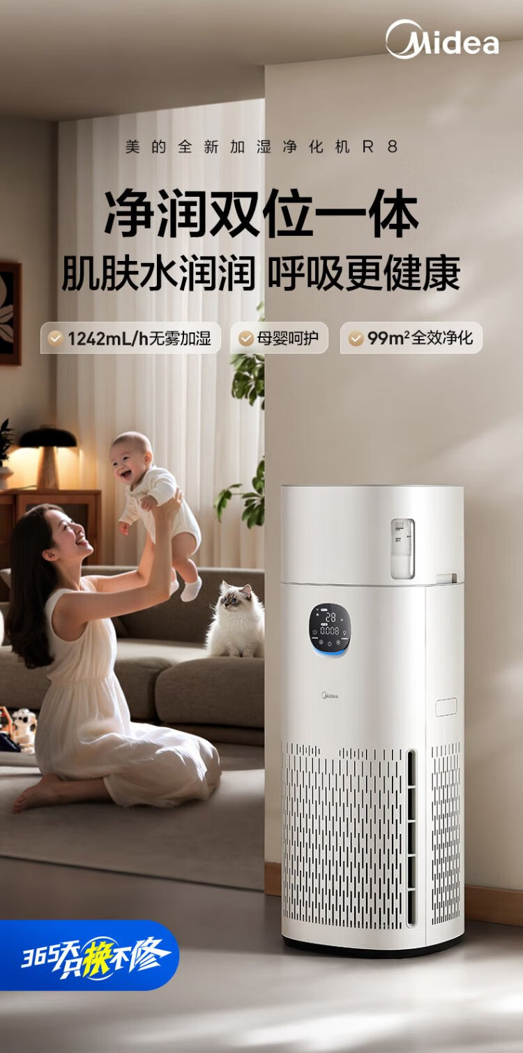 Midea fog-free humidifier R8 air purifier humidification integrated formaldehyde digital display smoke and odor removal allergen pet cat hair air purifier state subsidy