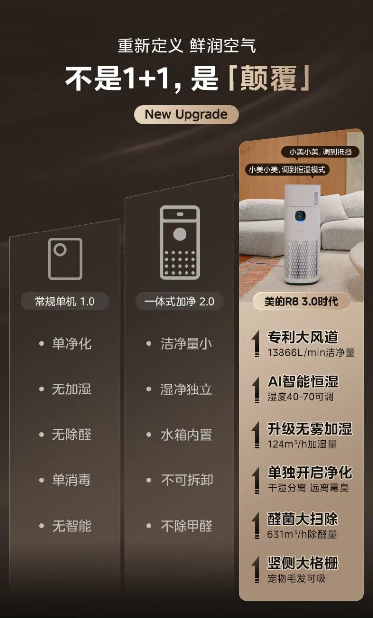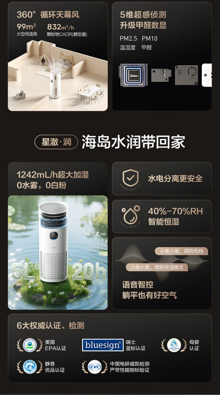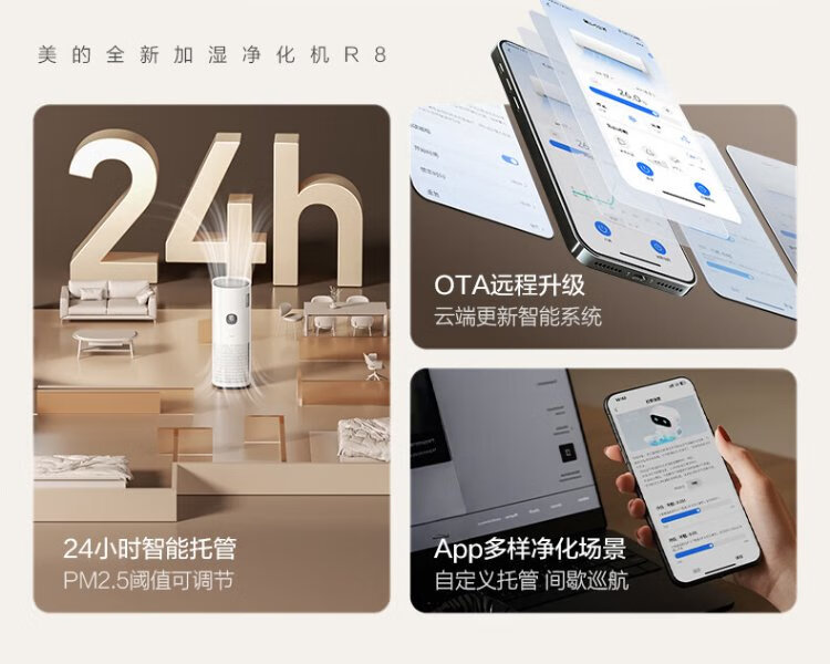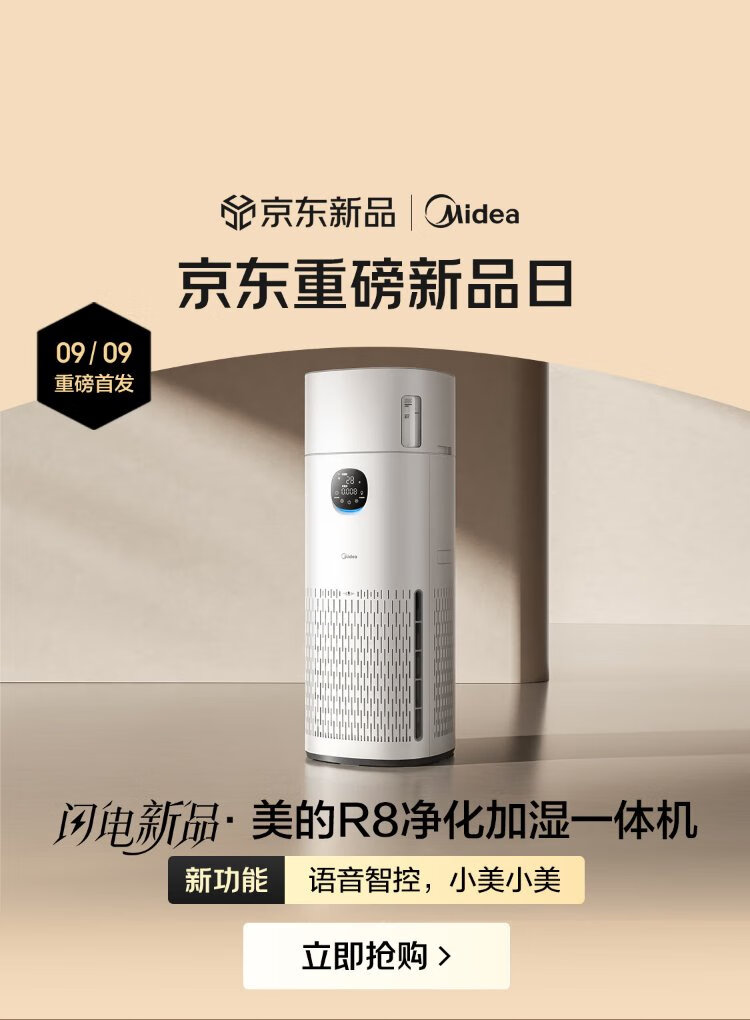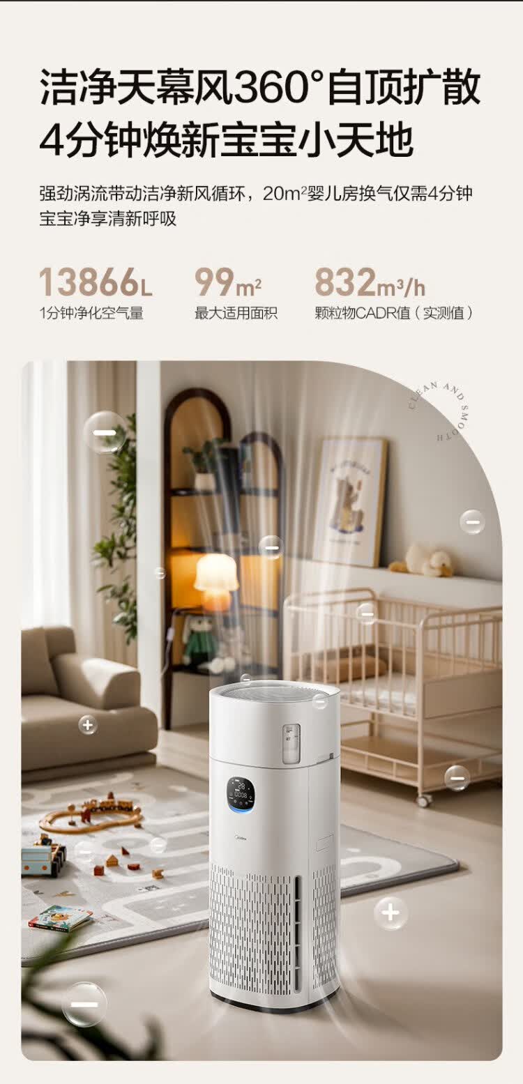 Midea fog-free humidifier R8 air purifier humidification integrated formaldehyde digital display smoke and odor removal allergen pet cat hair air purifier state subsidy