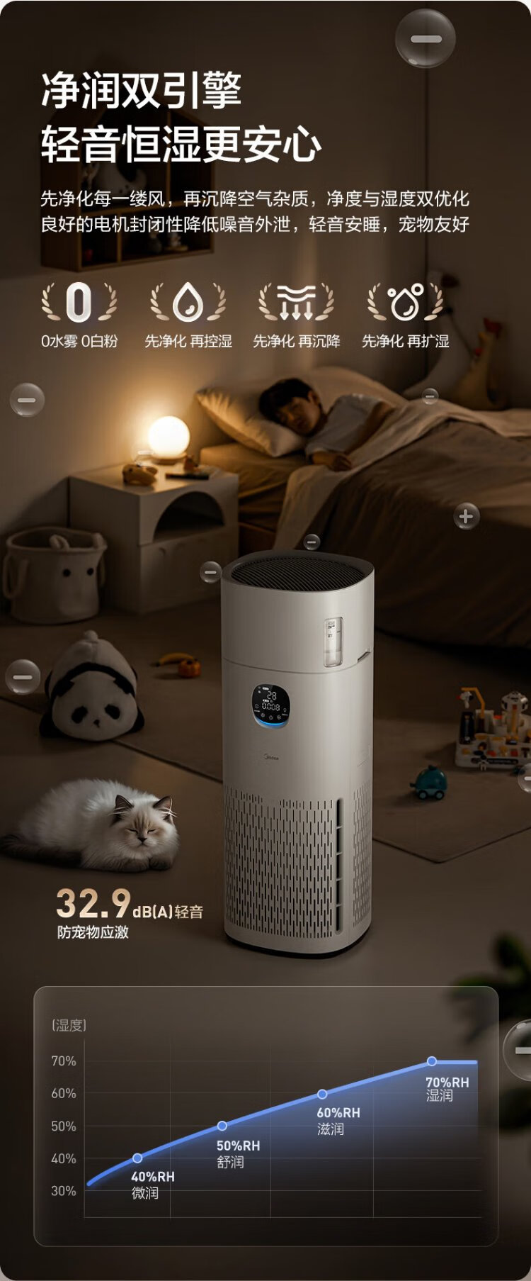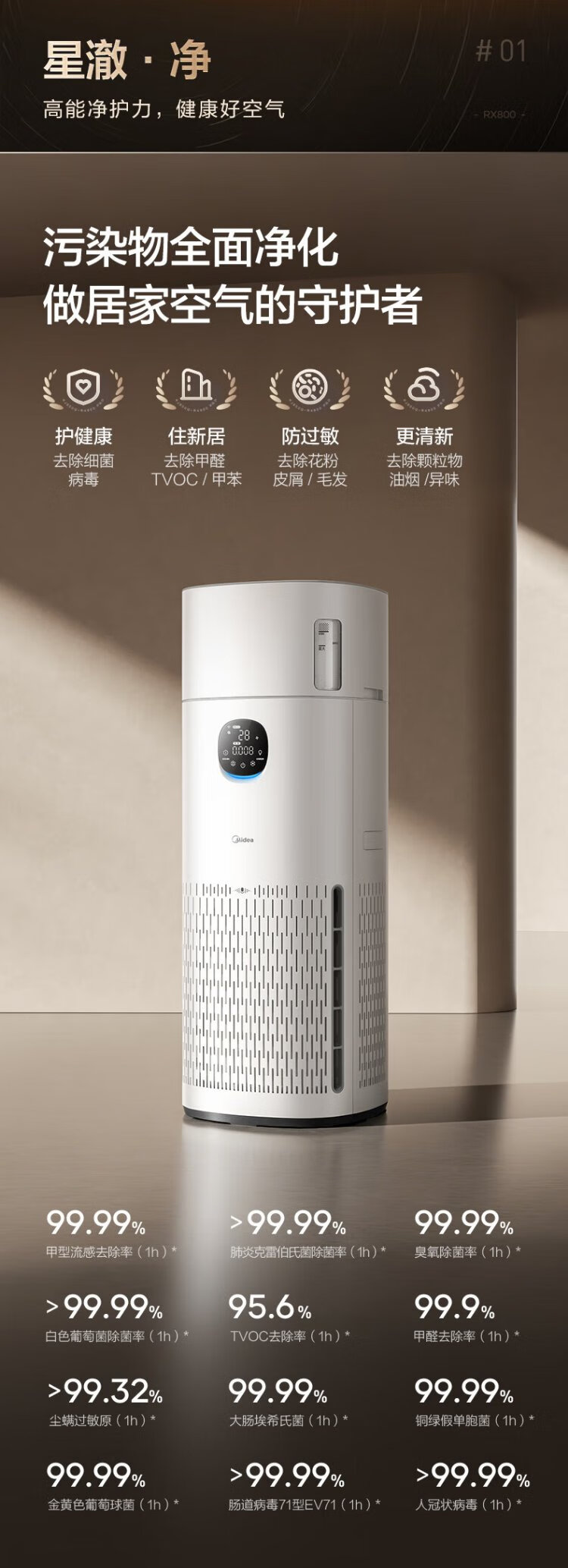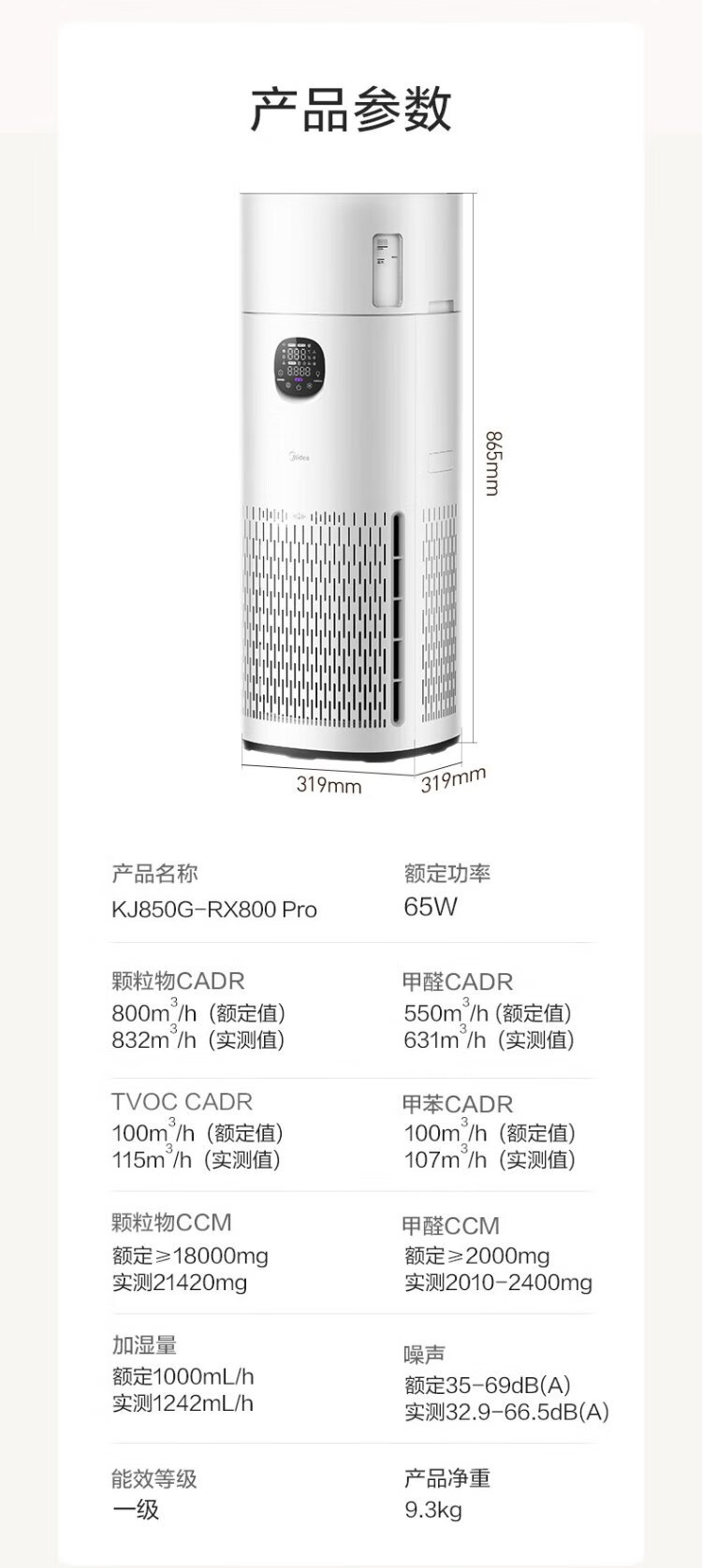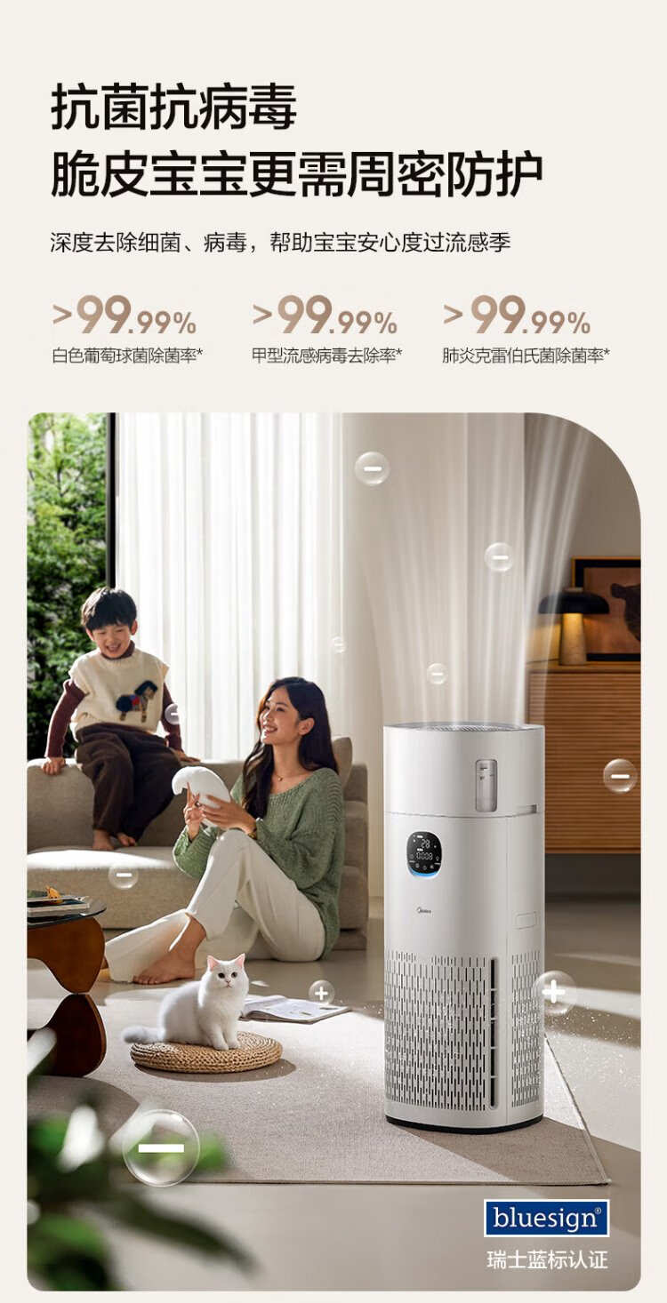 Midea fog-free humidifier R8 air purifier humidification integrated formaldehyde digital display smoke and odor removal allergen pet cat hair air purifier state subsidy