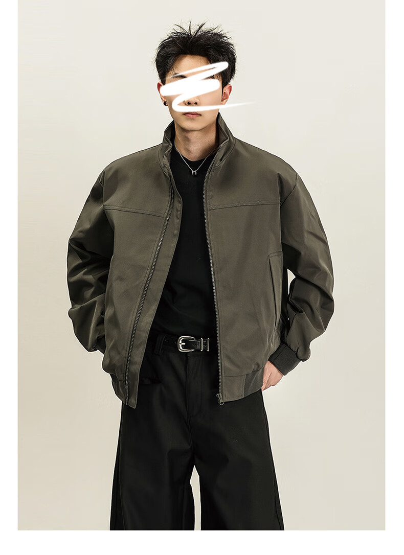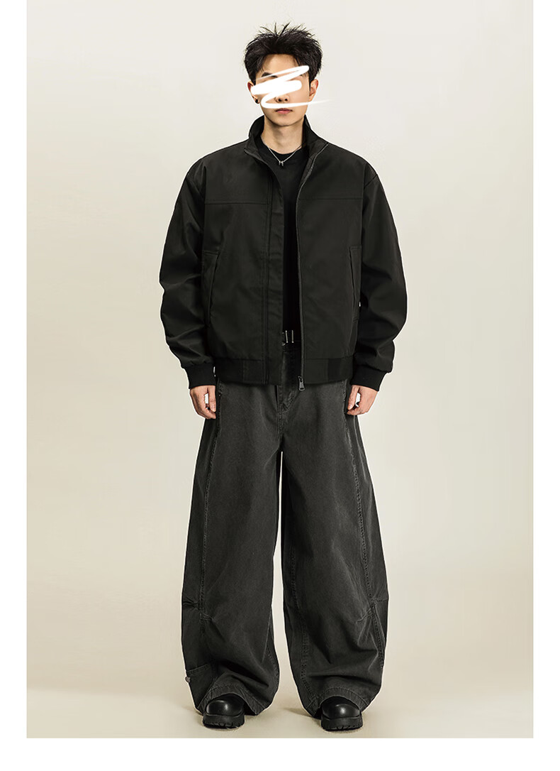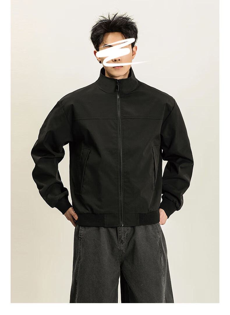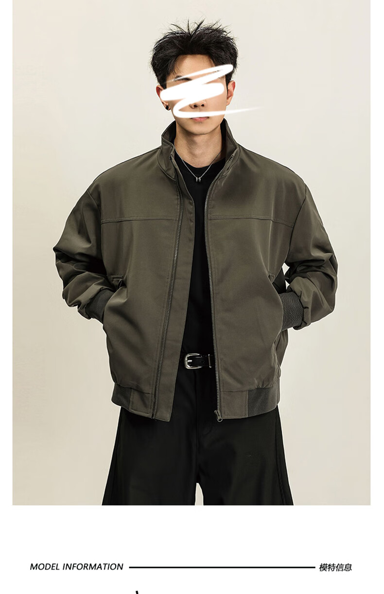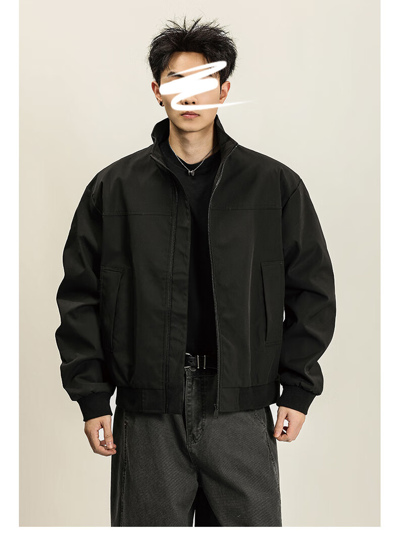 Foss Phil Workwear Flight Jacket Men's Autumn and Winter American Stand Collar Outdoor Baseball Jacket Top 26188 Black XL