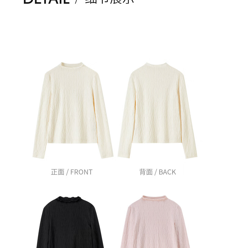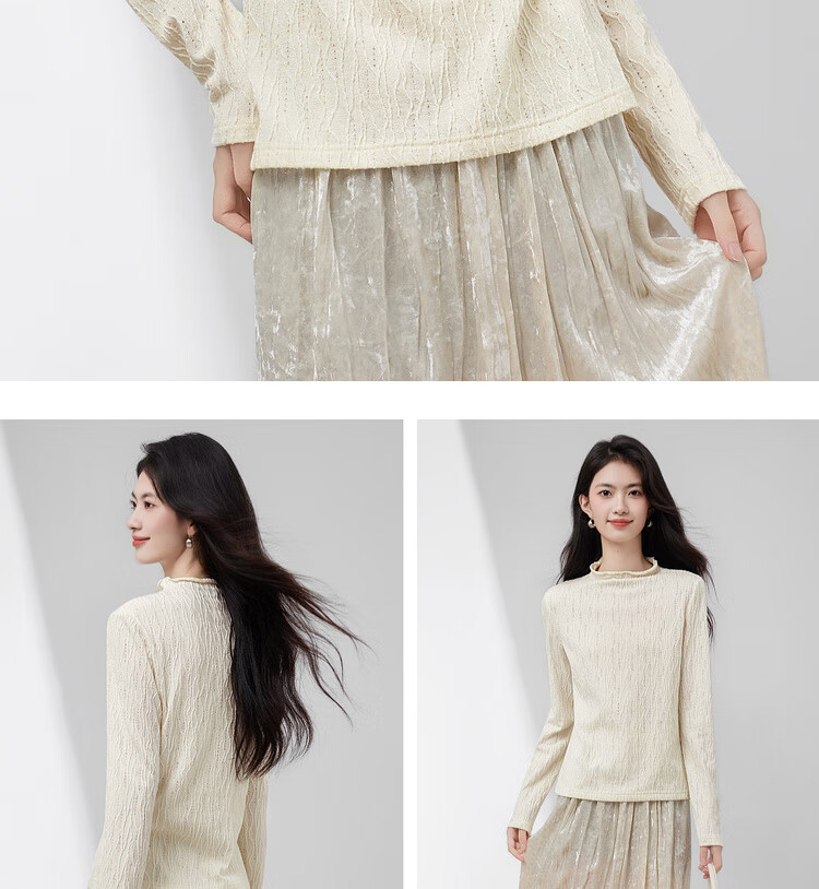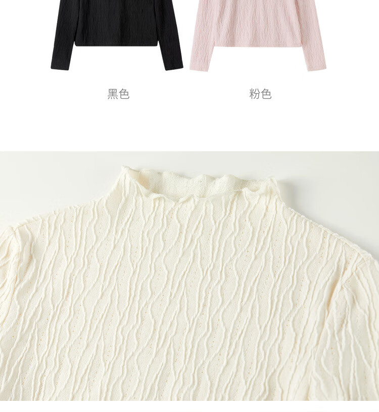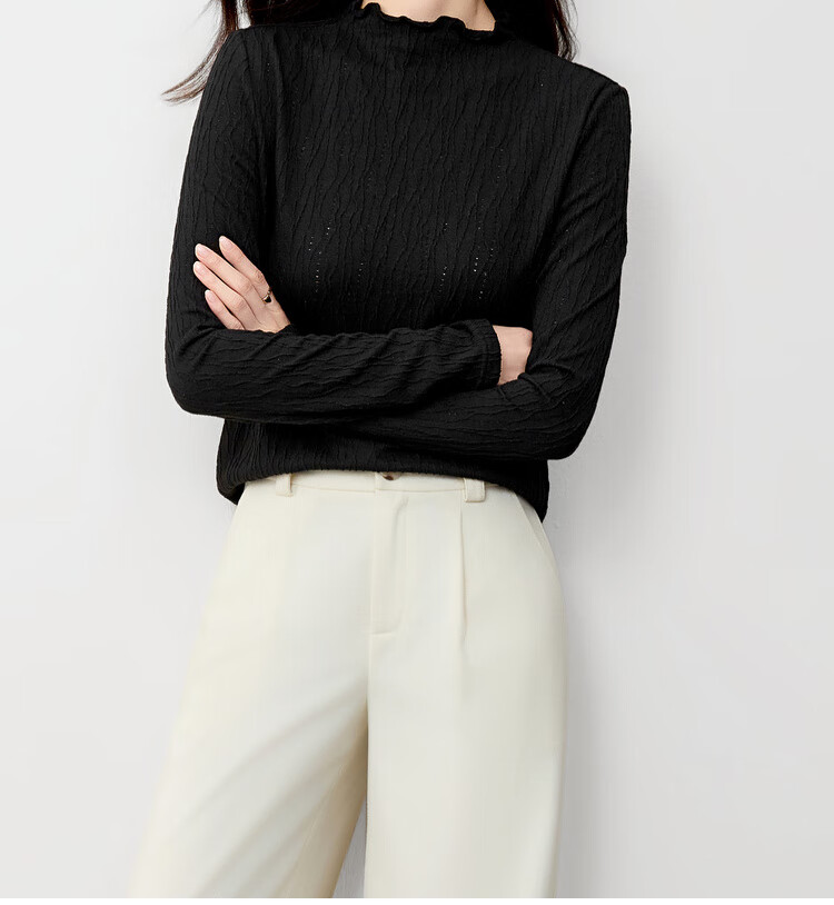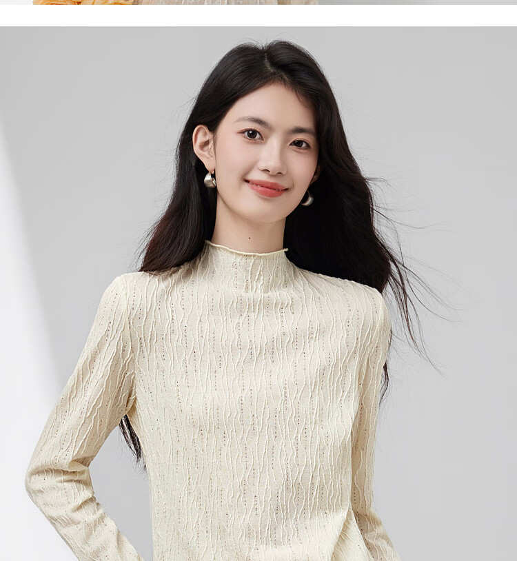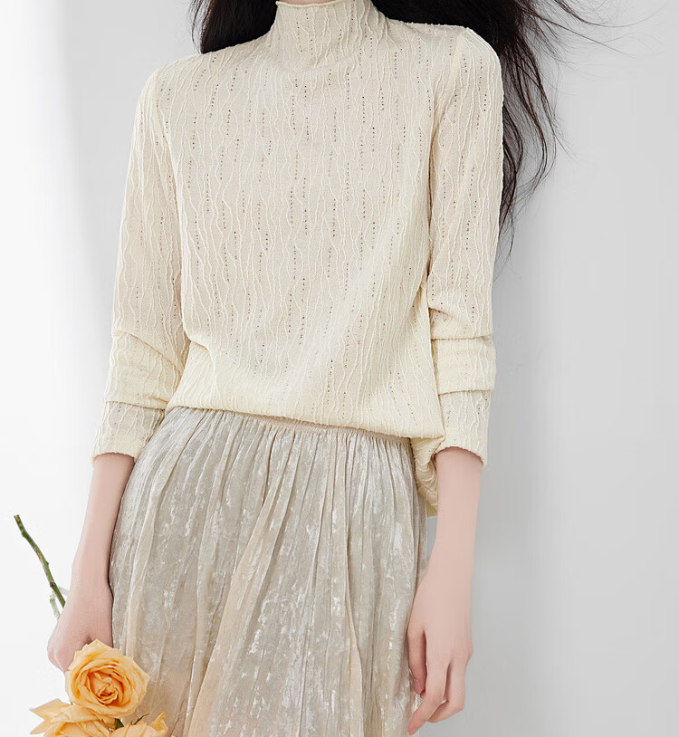 Shandubila water ripple texture cotton bottoming shirt for women autumn hollow knitted three-dimensional lace shirt half high collar inner top