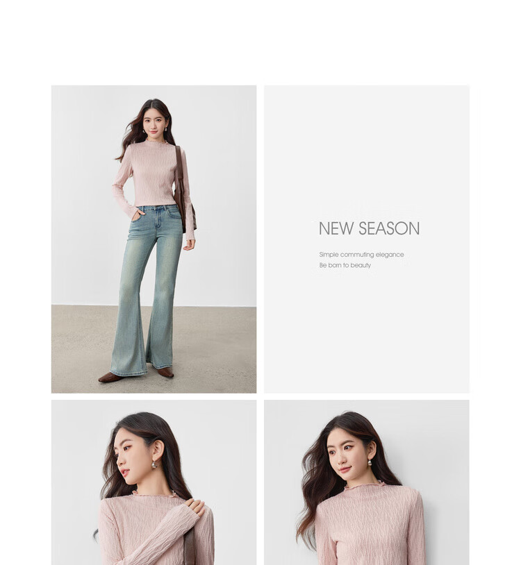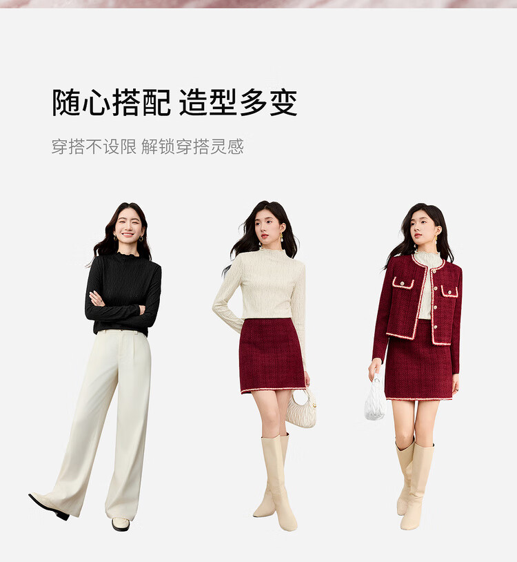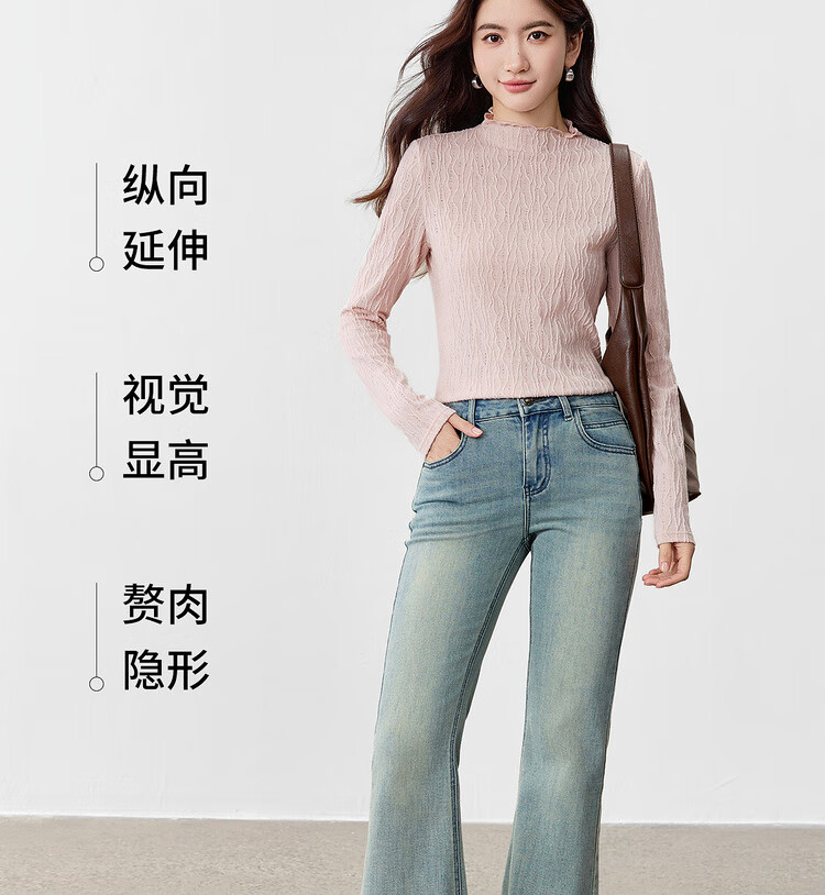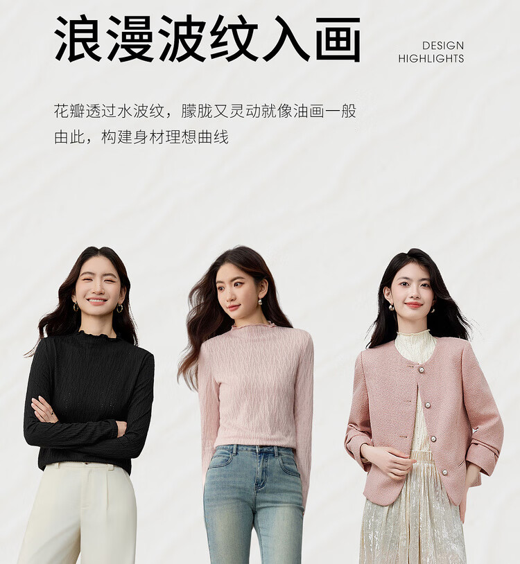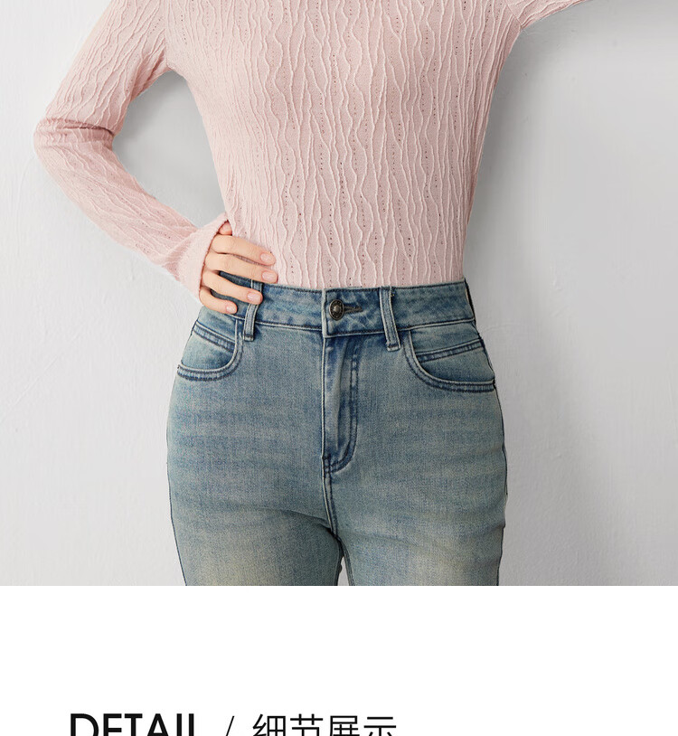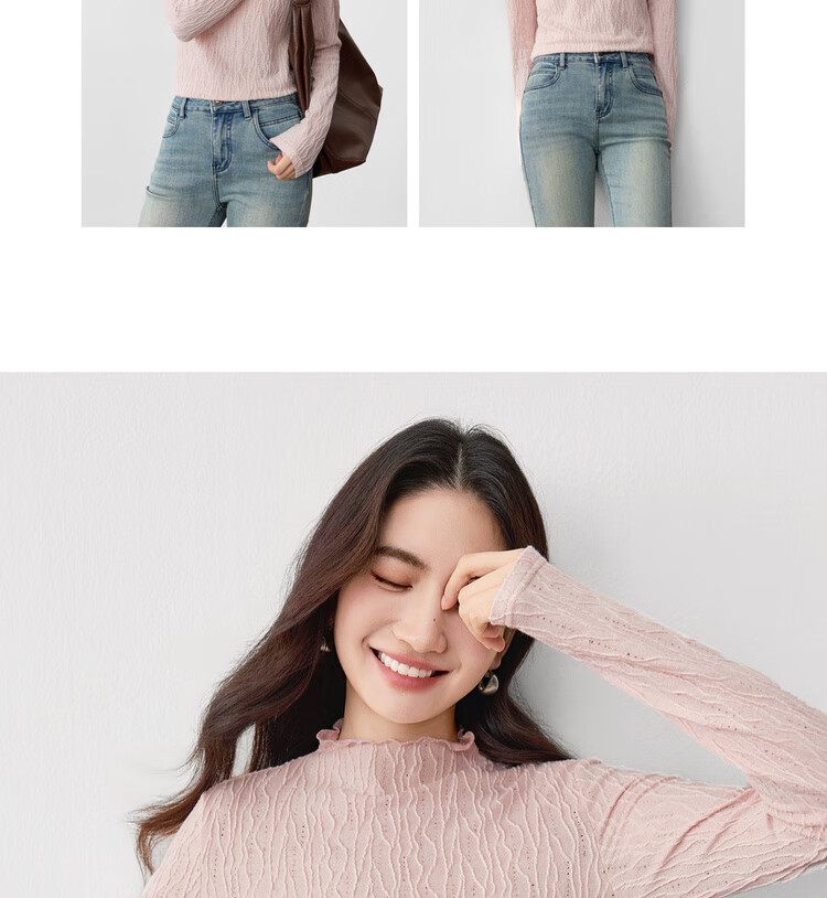 Shandubila water ripple texture cotton bottoming shirt for women autumn hollow knitted three-dimensional lace shirt half high collar inner top