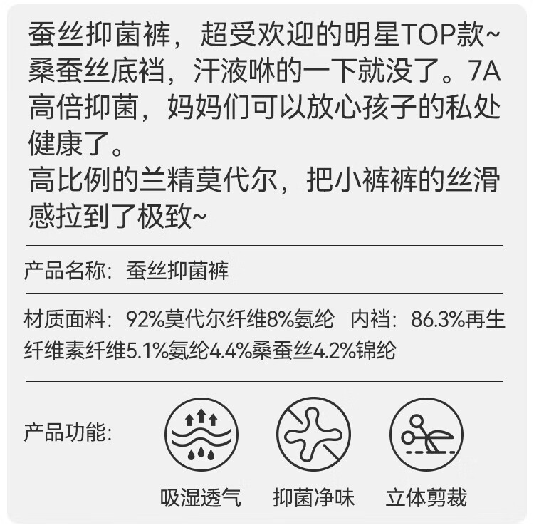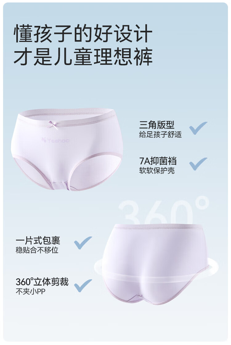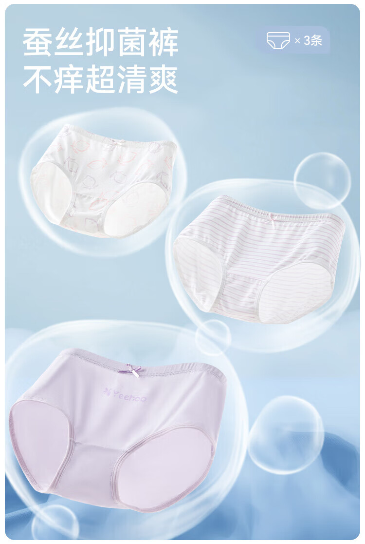 YEEHOO Lenzing Modal children's underwear 7A antibacterial mulberry silk bottom crotch girls' underwear, medium and large children's girls' briefs