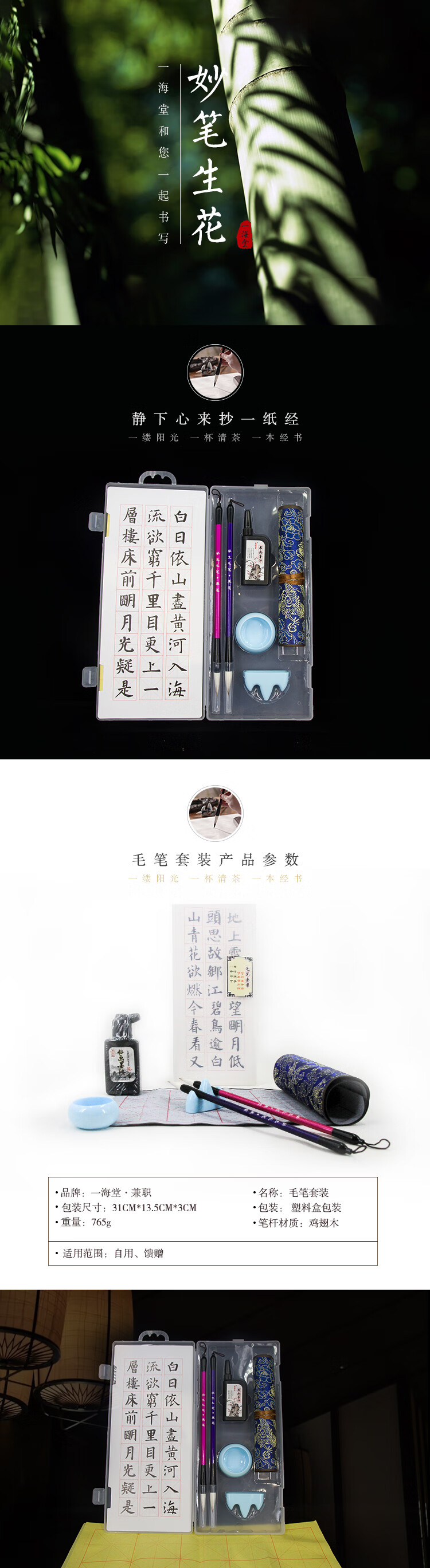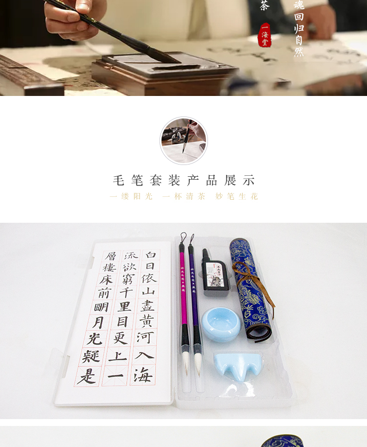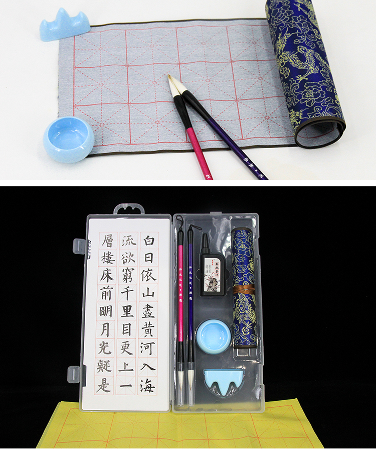 Yihaitang Culture Four Treasures of the Study on Water Writing Cloth Set Pen, Ink, Paper and Inkstone for Beginners and Hairbrush and Inkstone, Ink Stick and Pen Holder - Beginner Calligraphy 9-piece Gift Box