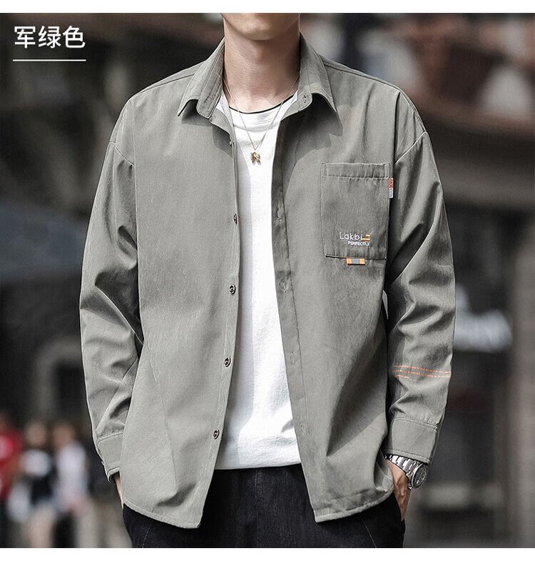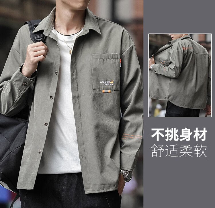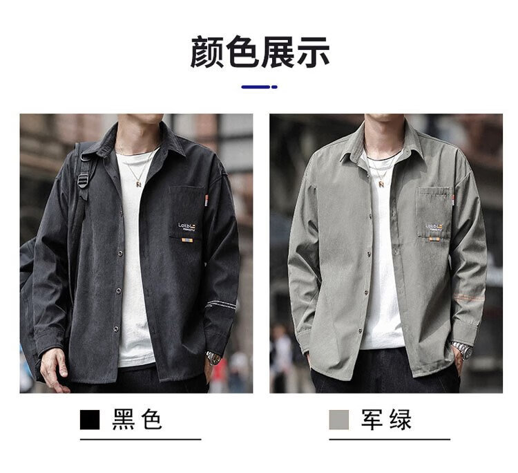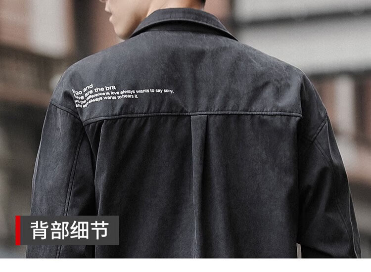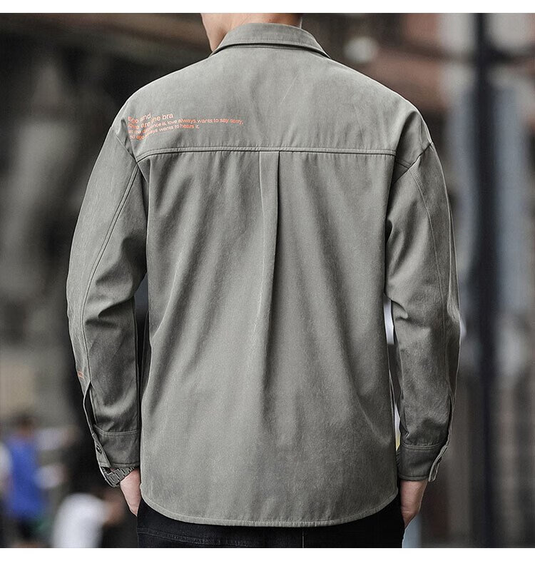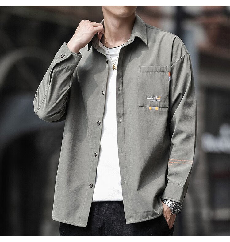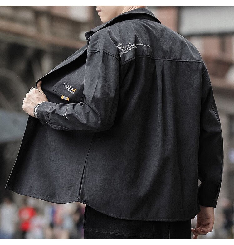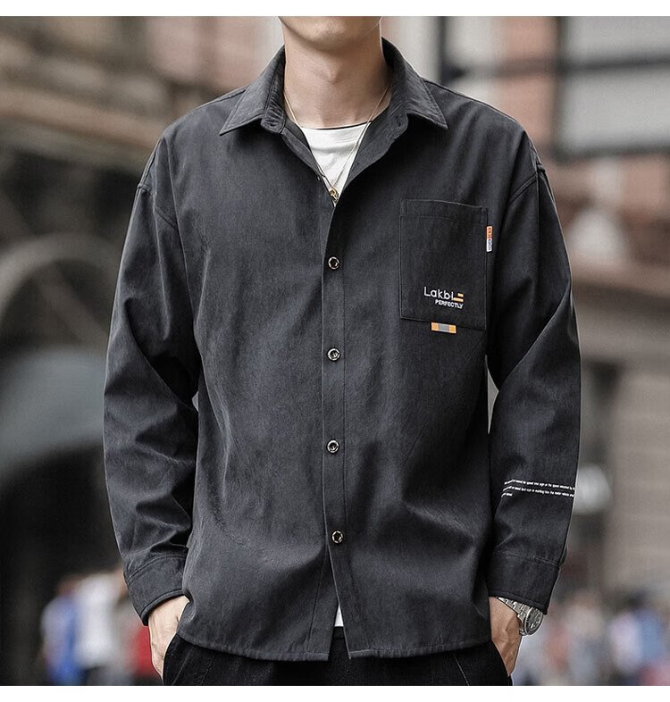 罗蒙(ROMON)长袖衬衫男春秋季潮流休闲外套男士宽松衬衣男装 黑色 XL