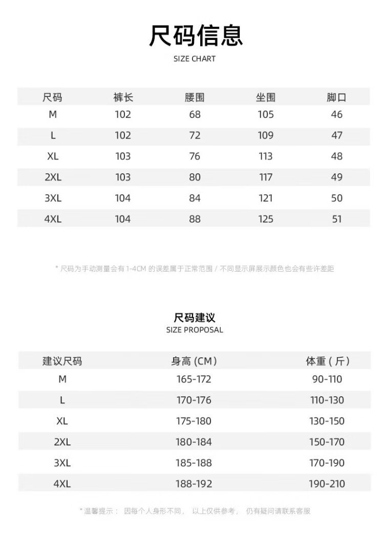 China (cm) 165 / 88-90 170 / 96-98 175 / 108-110 180 / 118-122 185 / 126-130