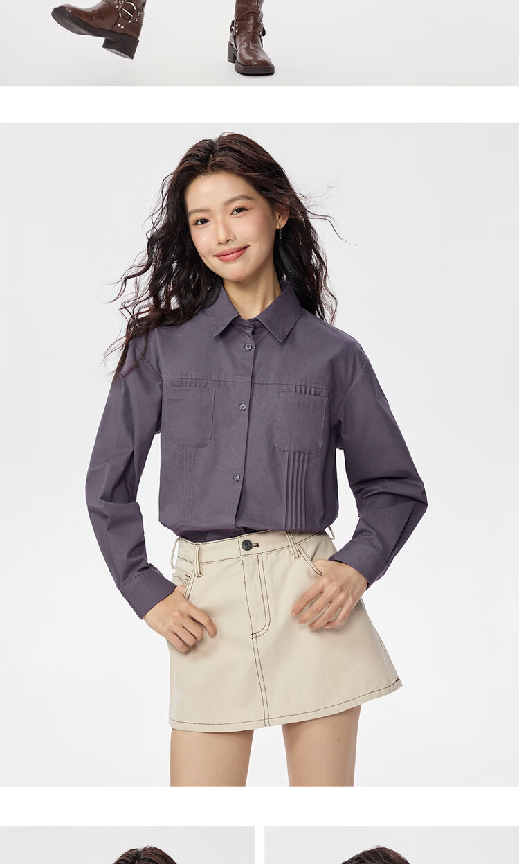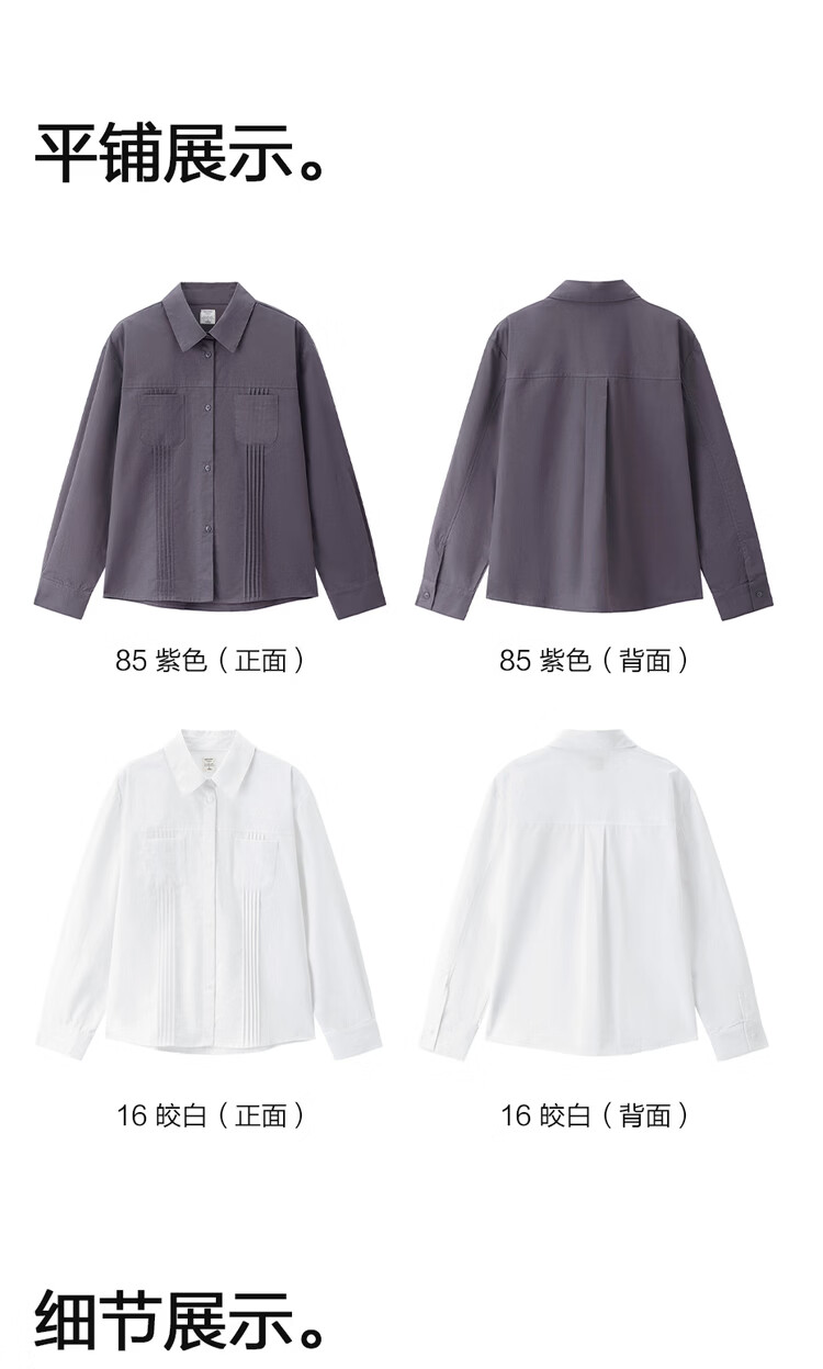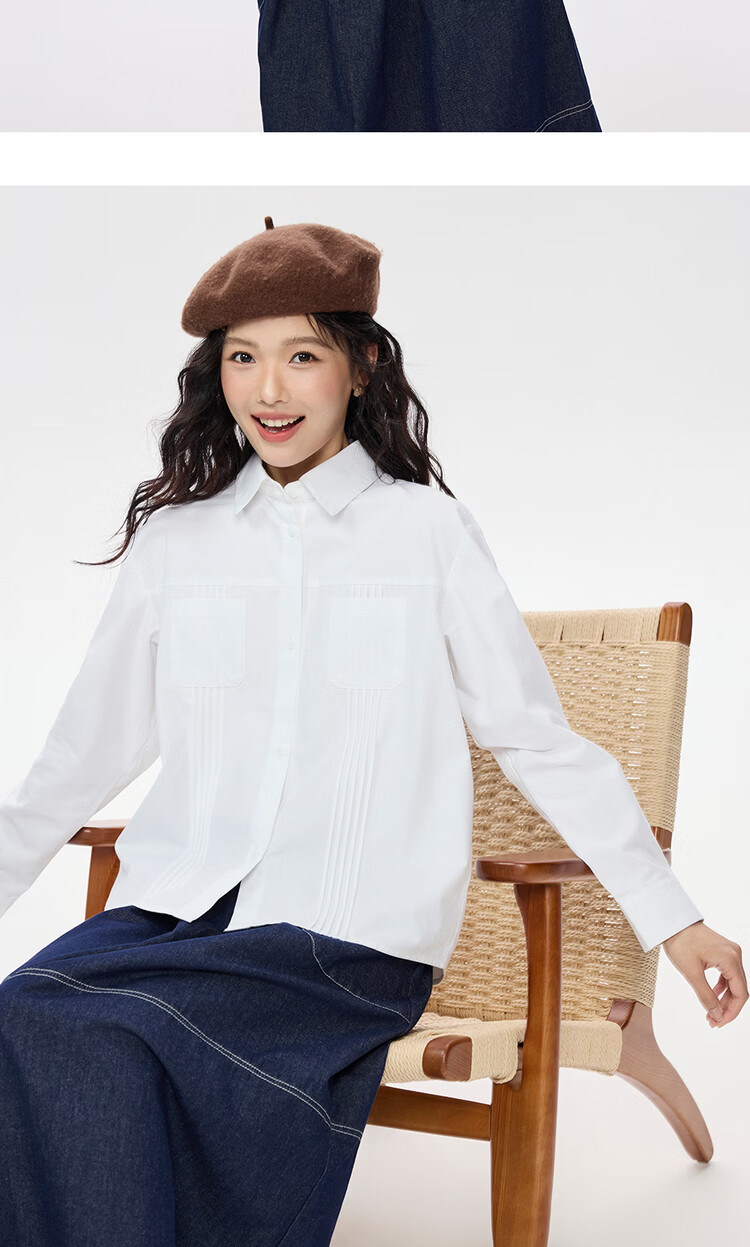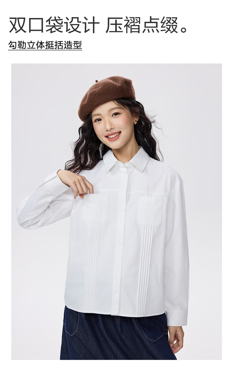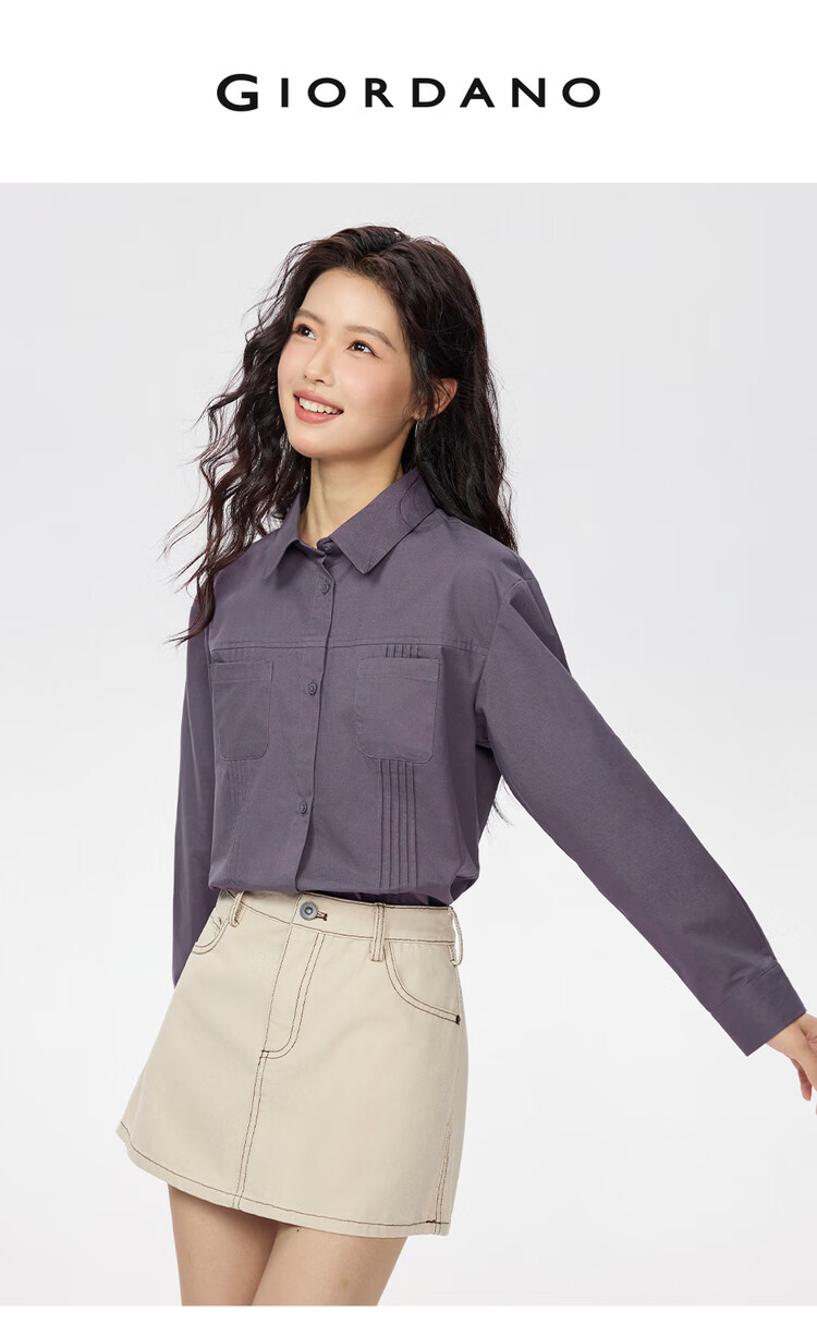 Giordano 2026 spring new pure cotton commuter pleated double pocket lapel long-sleeved shirt for women 05345866
