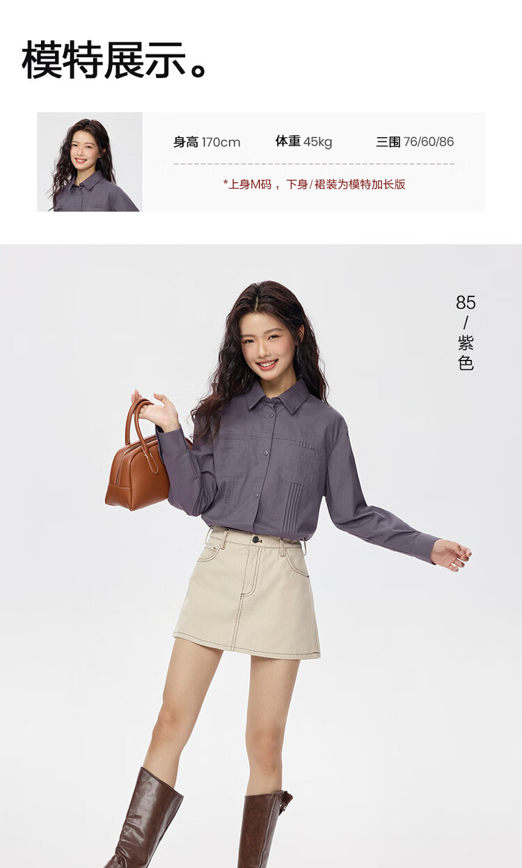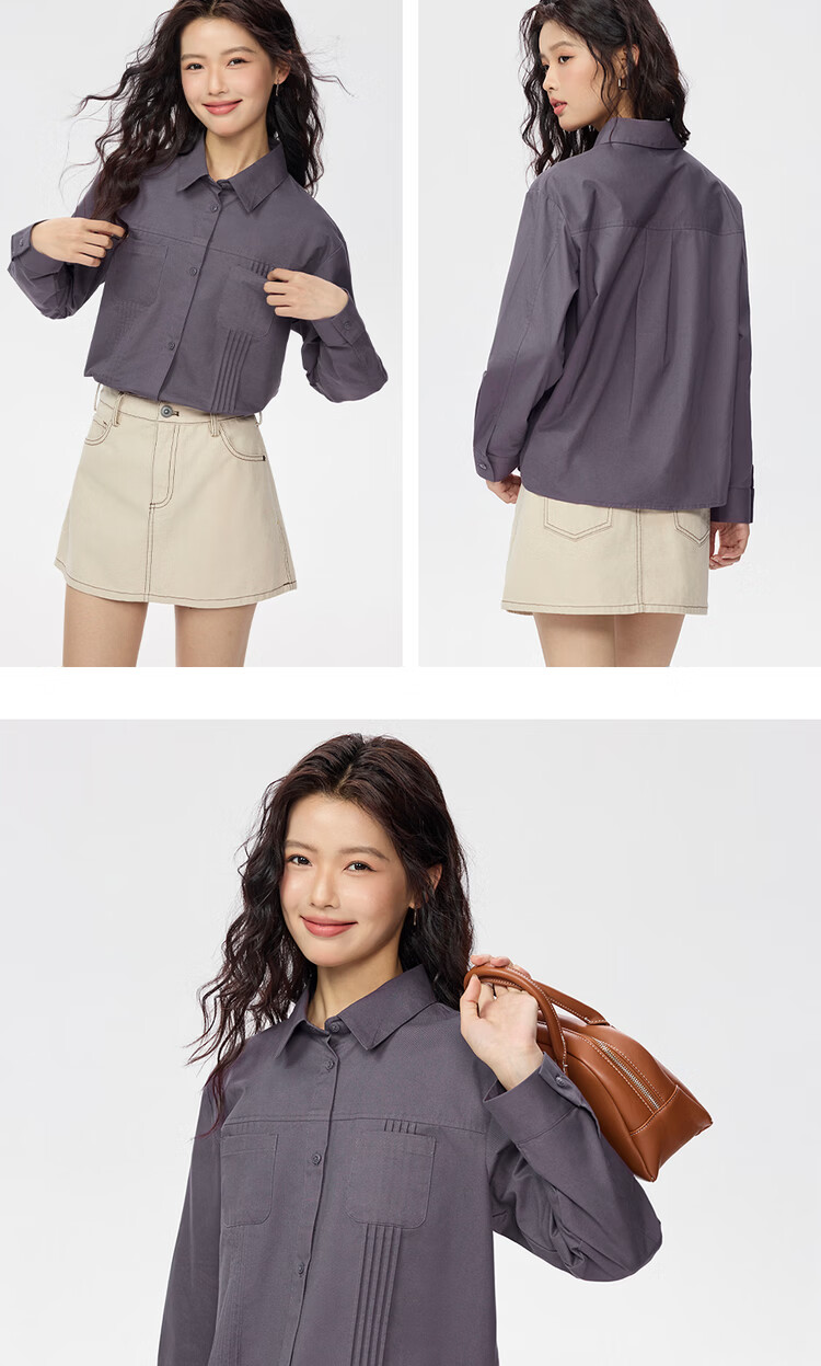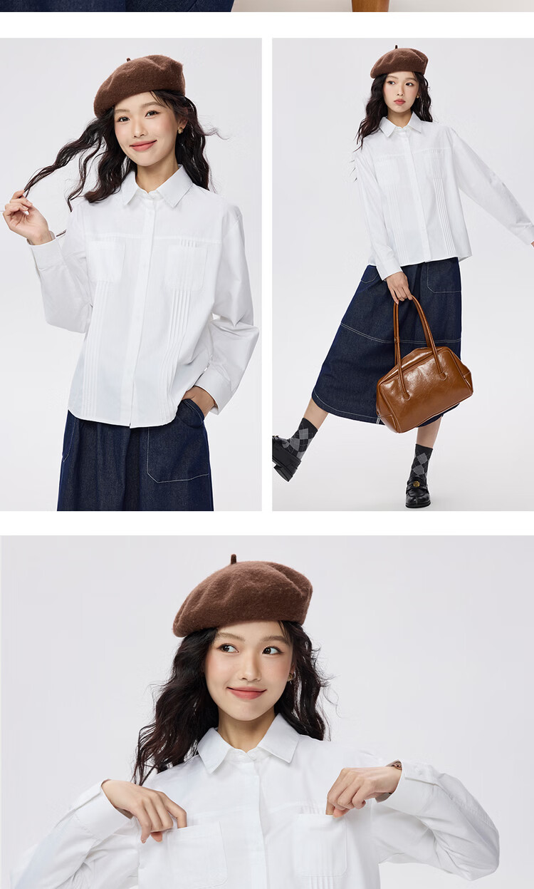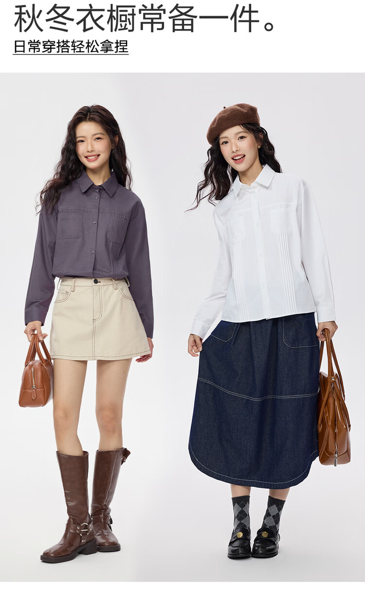 Giordano 2026 spring new pure cotton commuter pleated double pocket lapel long-sleeved shirt for women 05345866