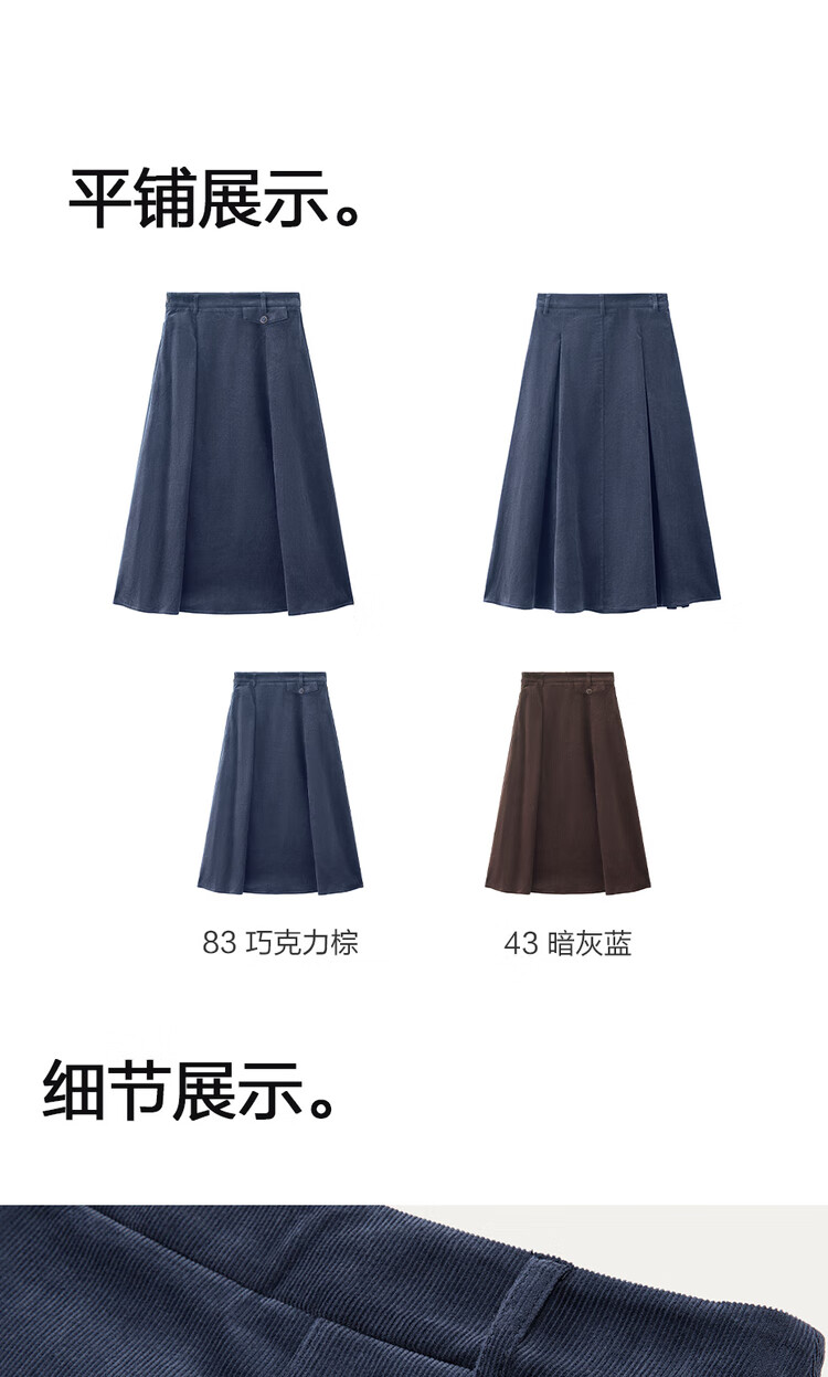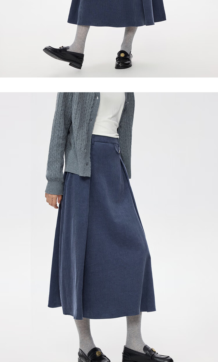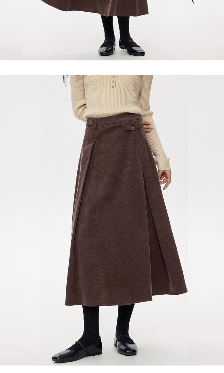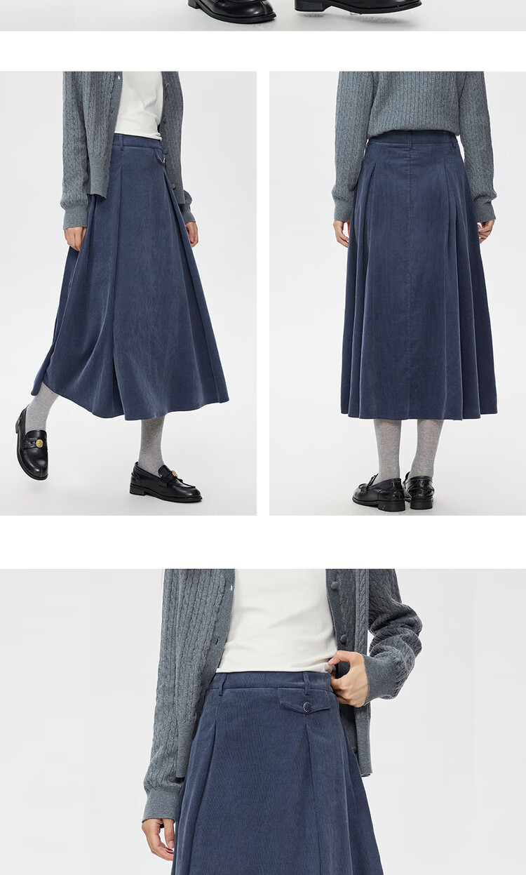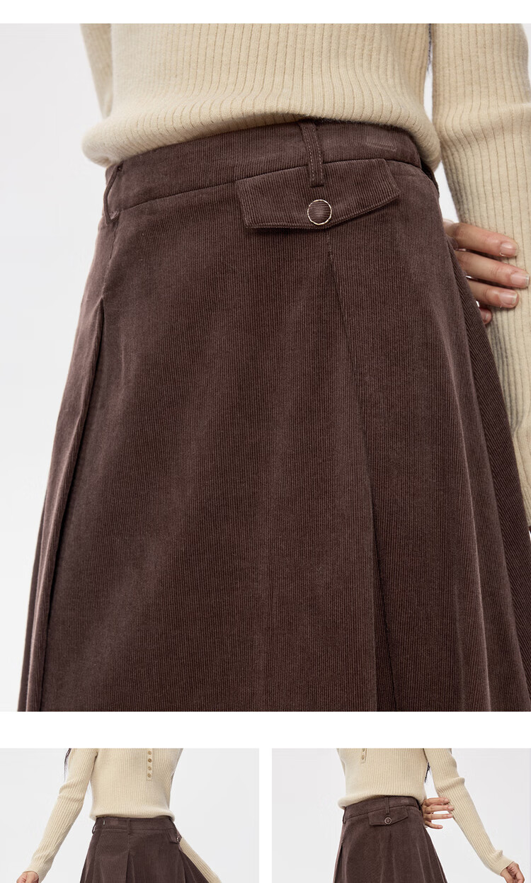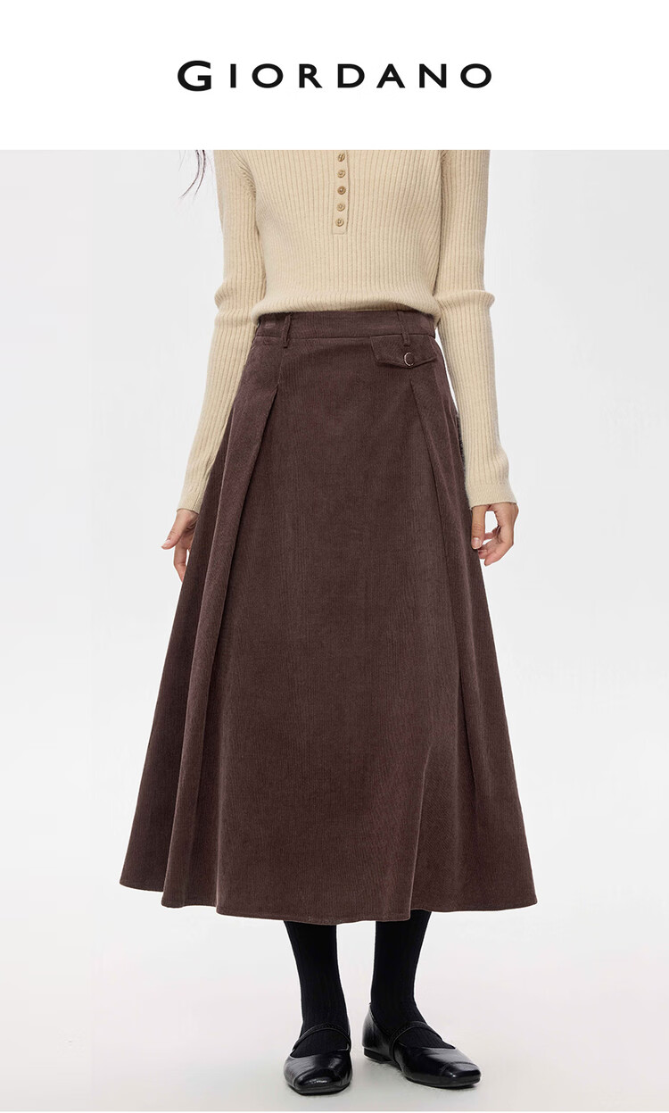 Giordano skirt women's autumn and winter pure cotton corduroy retro a-line skirt large hem half-length skirt 13465865