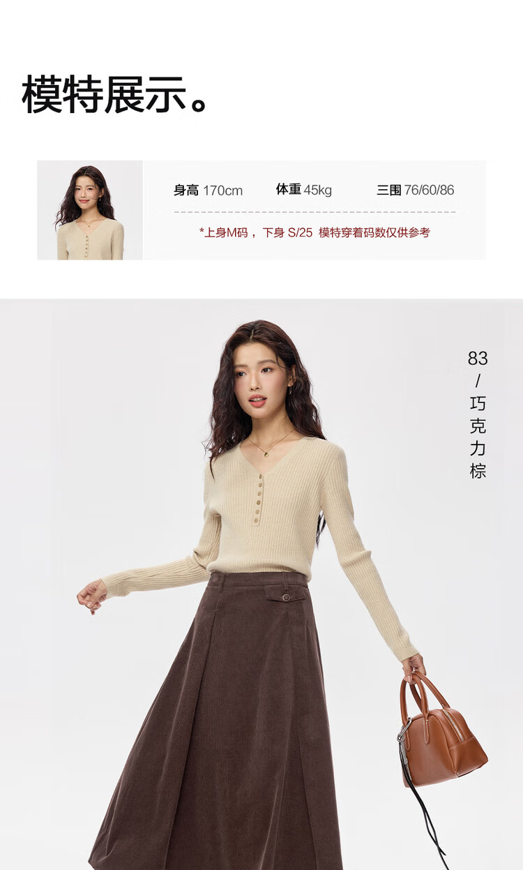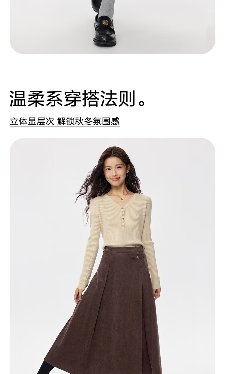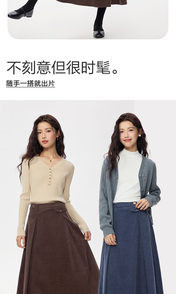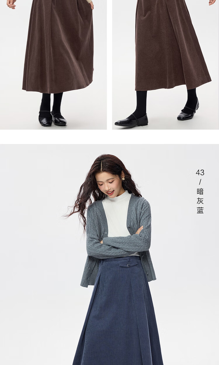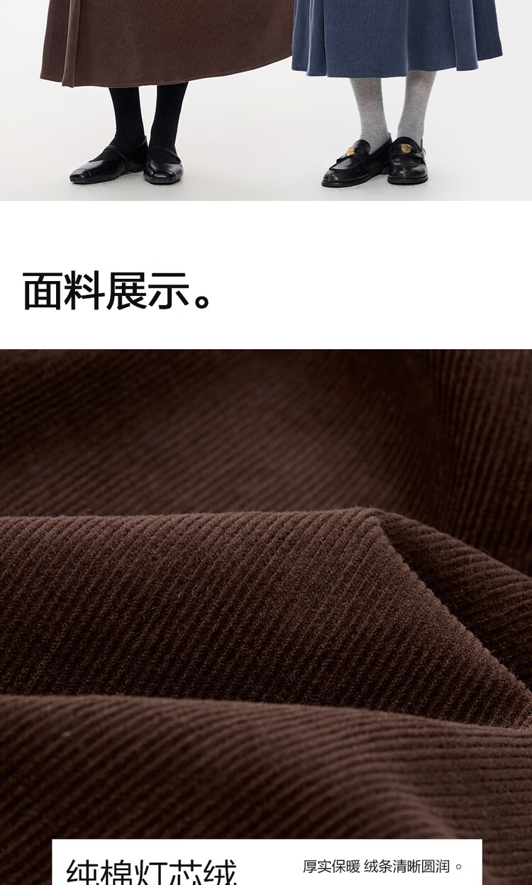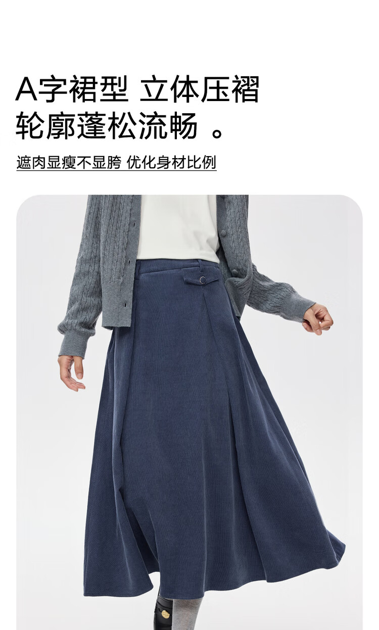 Giordano skirt women's autumn and winter pure cotton corduroy retro a-line skirt large hem half-length skirt 13465865