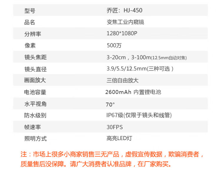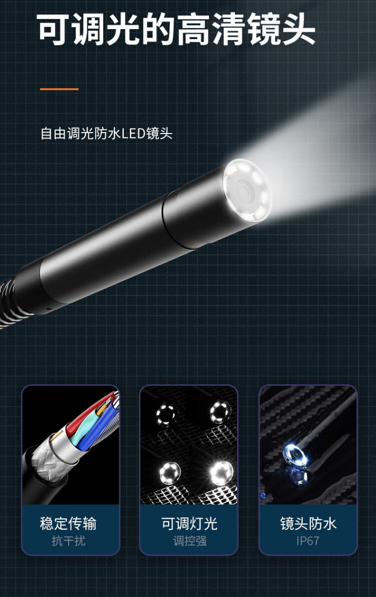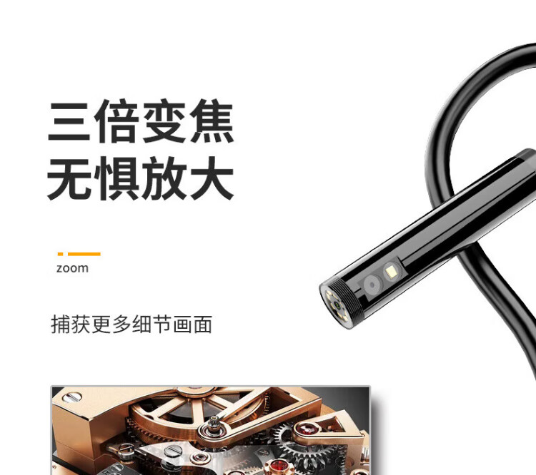 Qiaojiang 5 million industrial endoscope high-definition camera pipeline inspection auto repair repair visual mirror auto-focus probe 3.9mm lens (hard wire 1 meter)