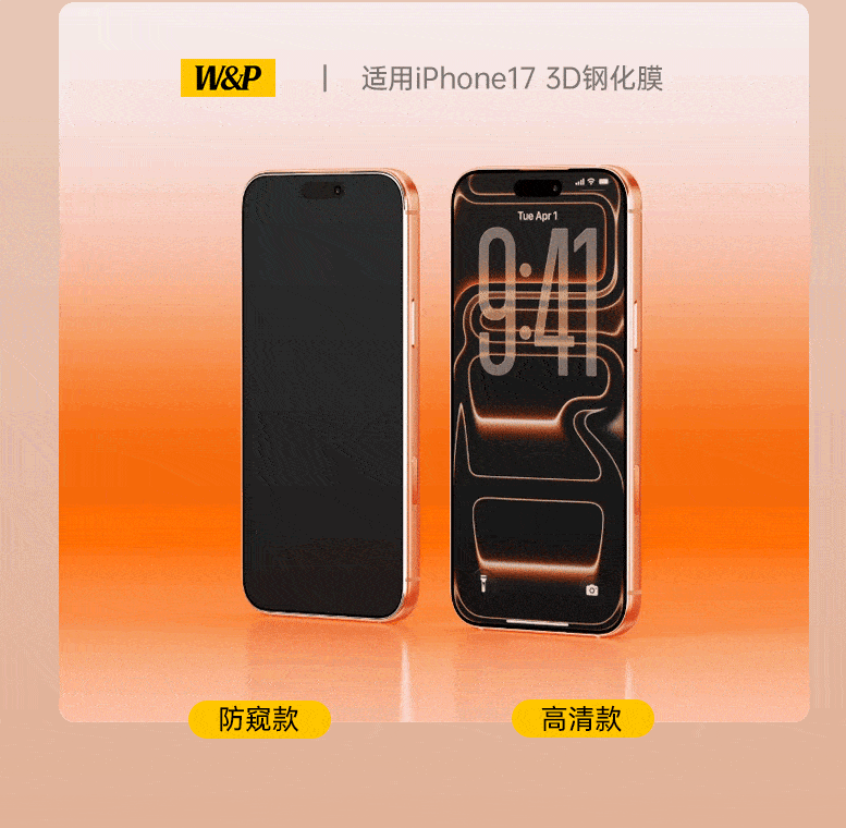 W&P 3D curved edge丨Full screen coverage Suitable for iPhone17 tempered film anti-peeping Apple 17 mobile phone film dust-proof, anti-fall, anti-peeping, anti-fingerprint dust-free warehouse second sticker wp