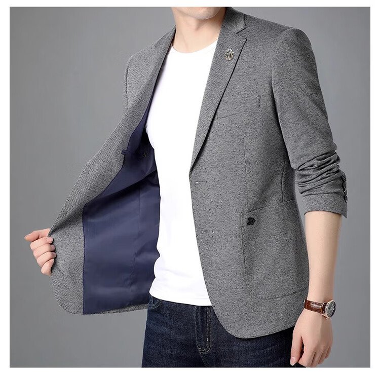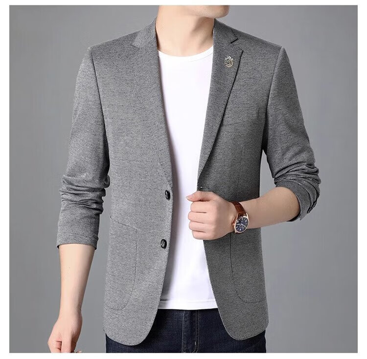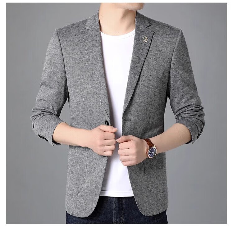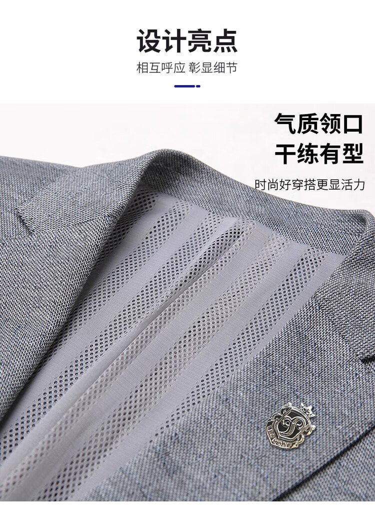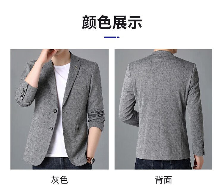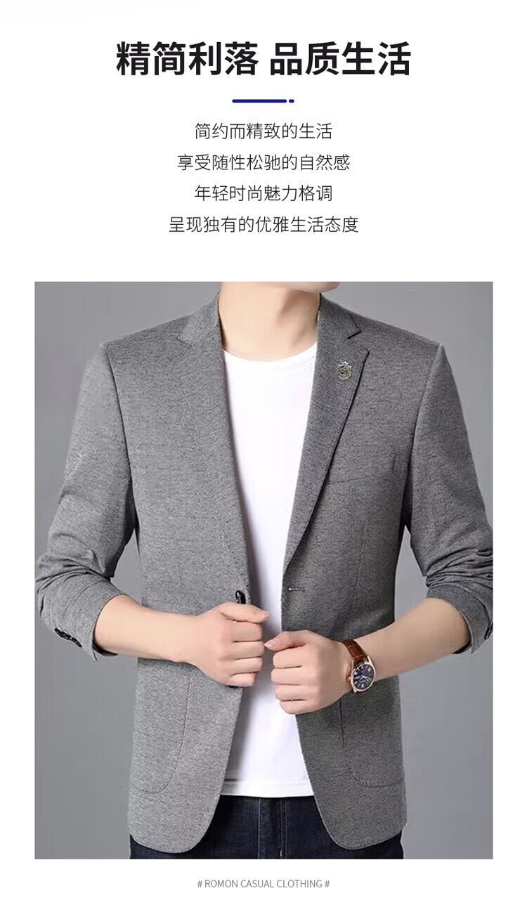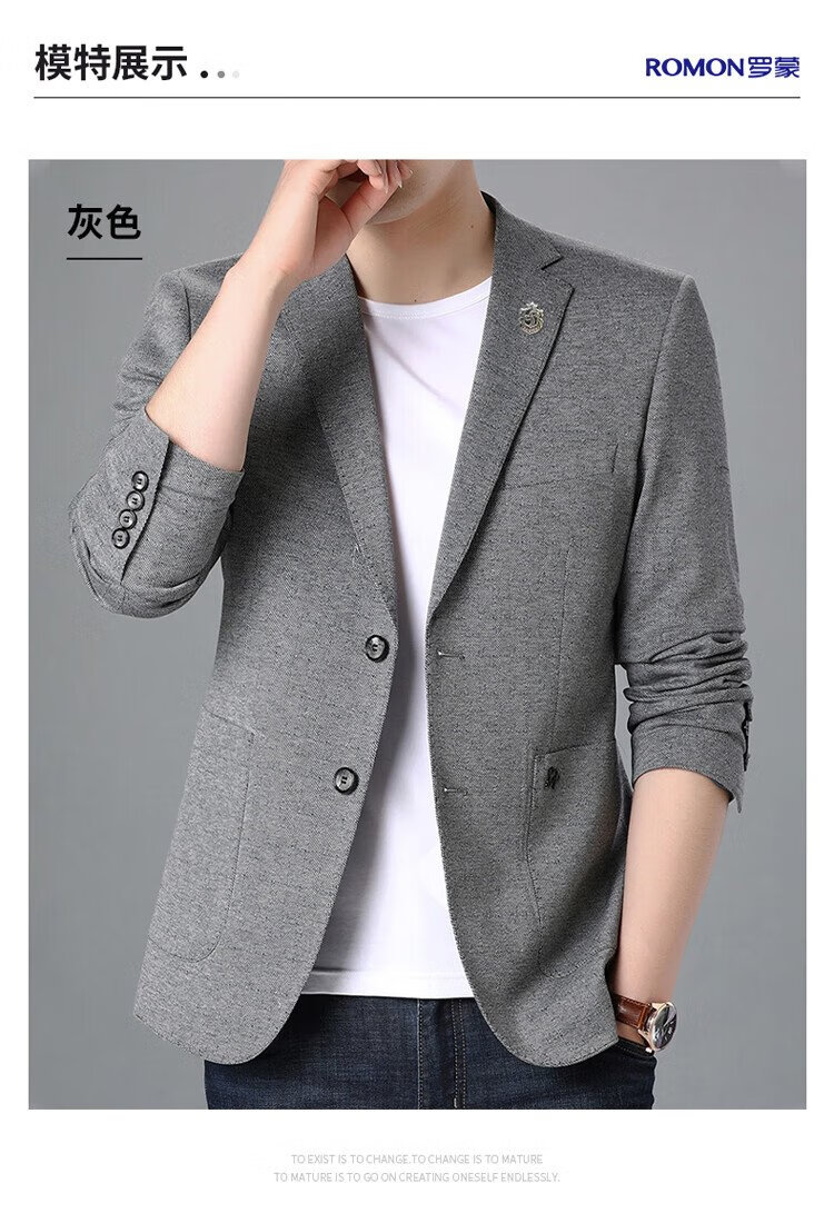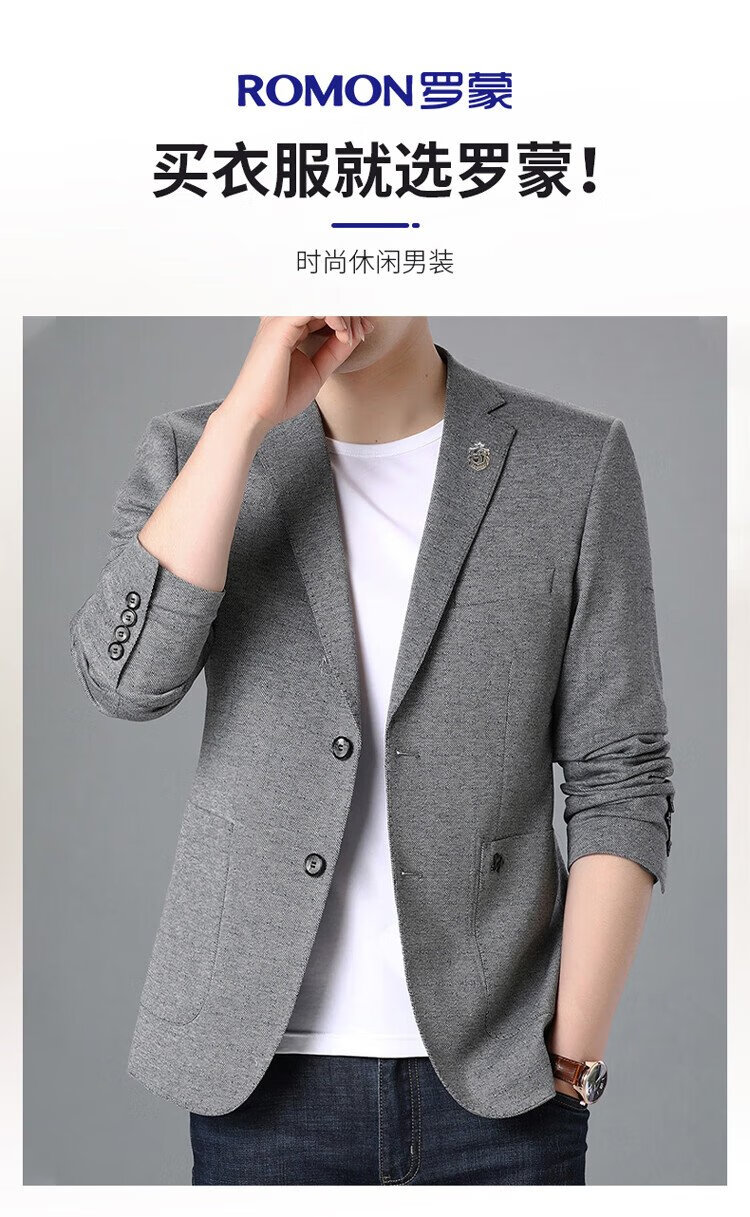 ROMON suit men's business slim jacket autumn and winter professional formal wedding dress suit gray L