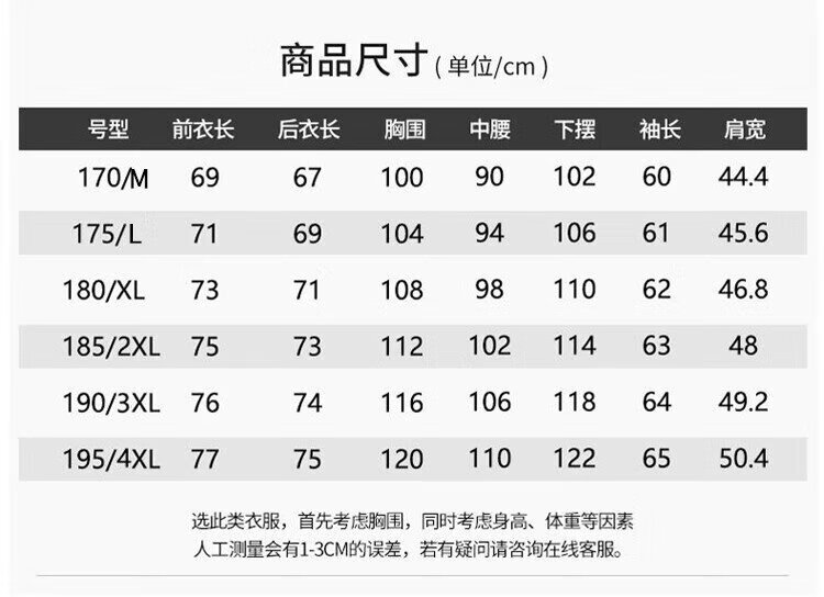 China (cm) 165 / 88-90 170 / 96-98 175 / 108-110 180 / 118-122 185 / 126-130