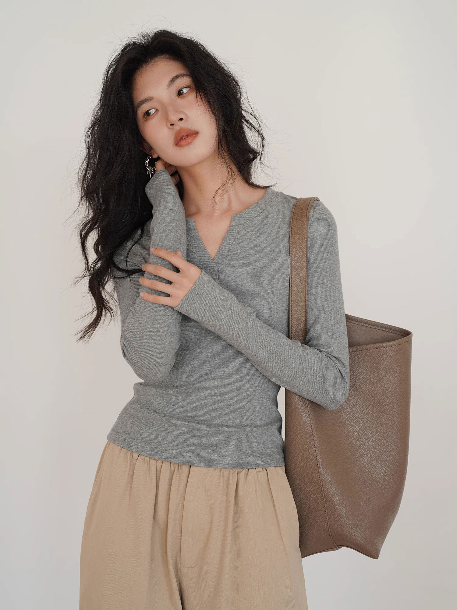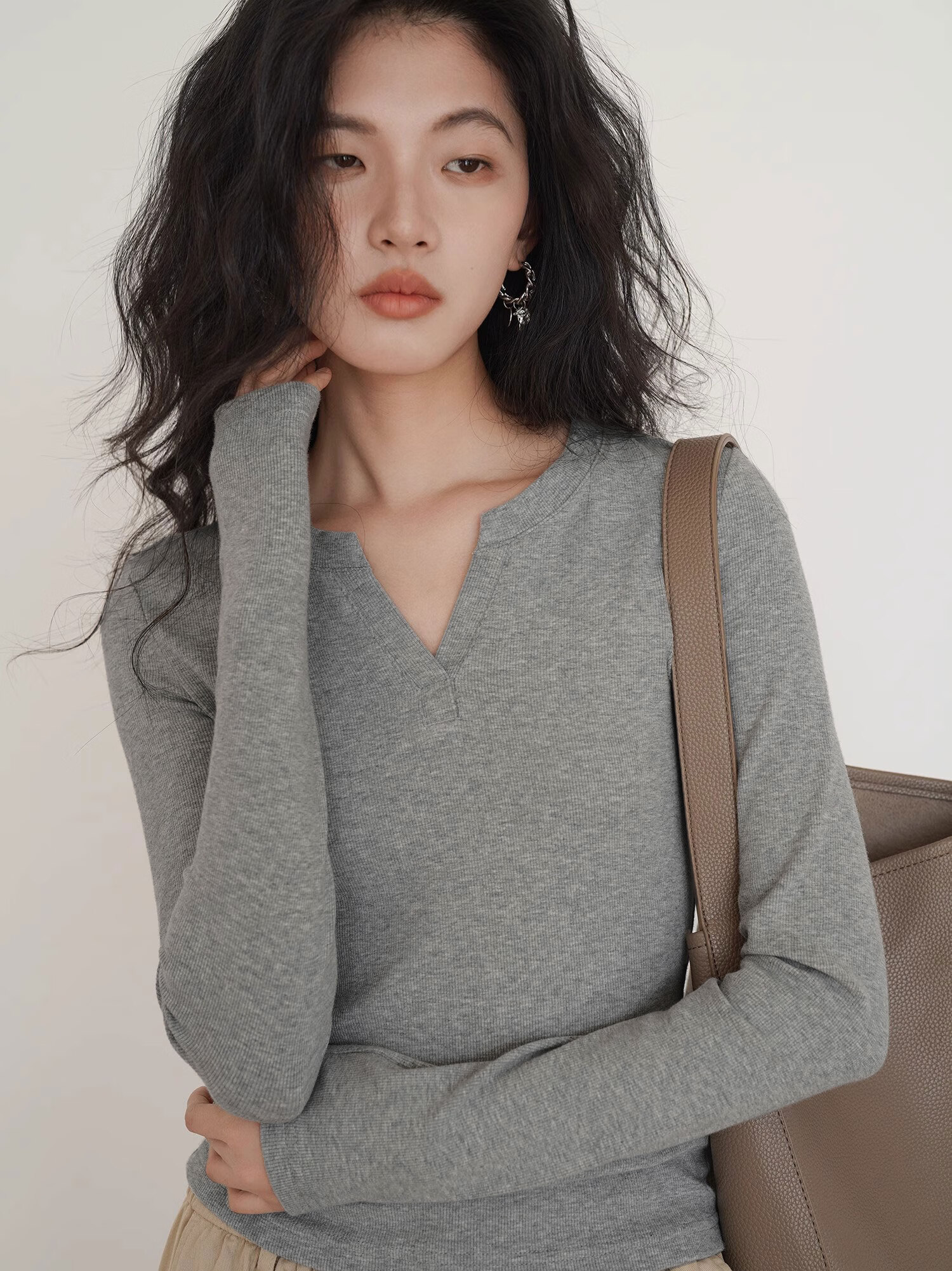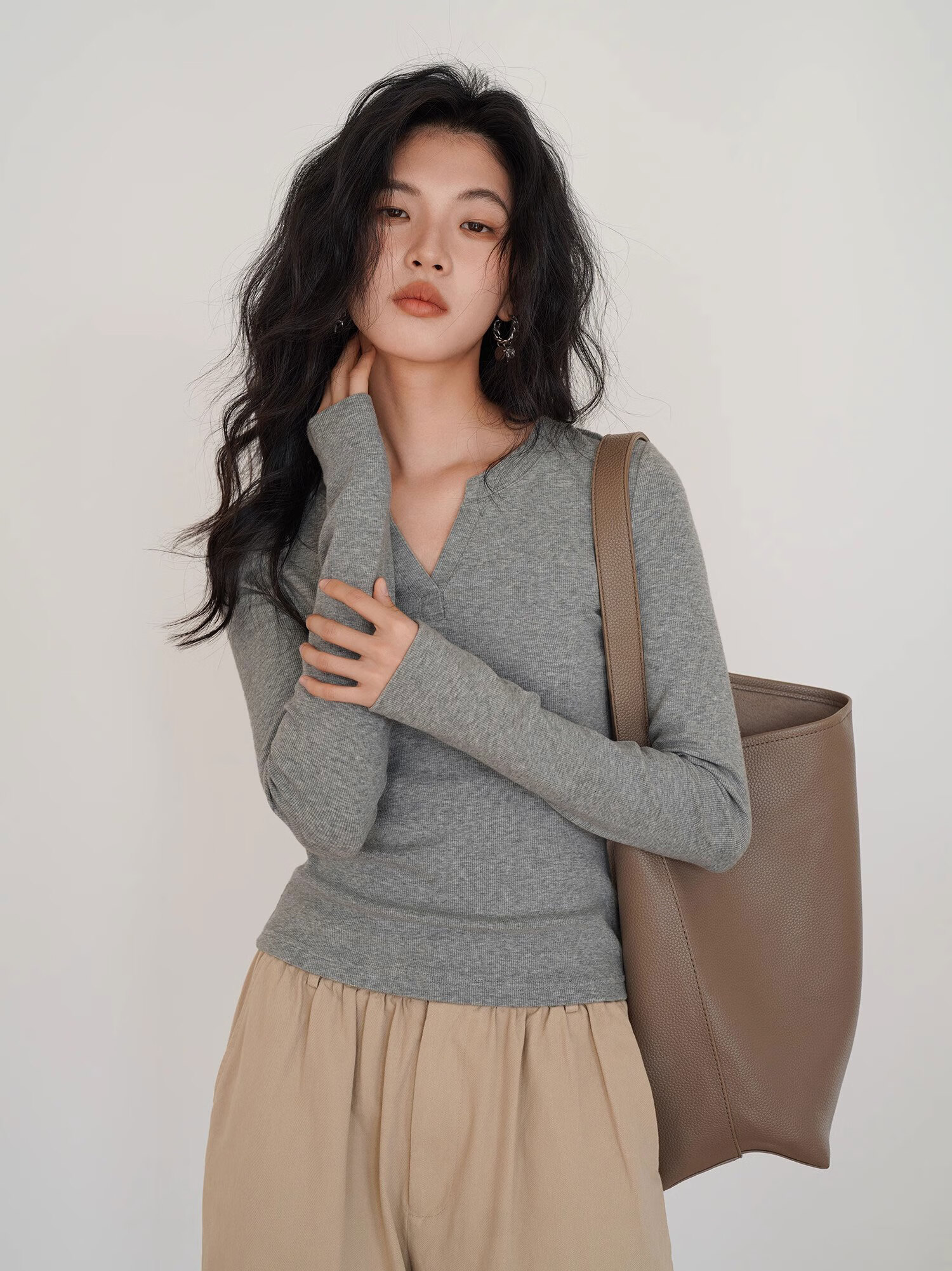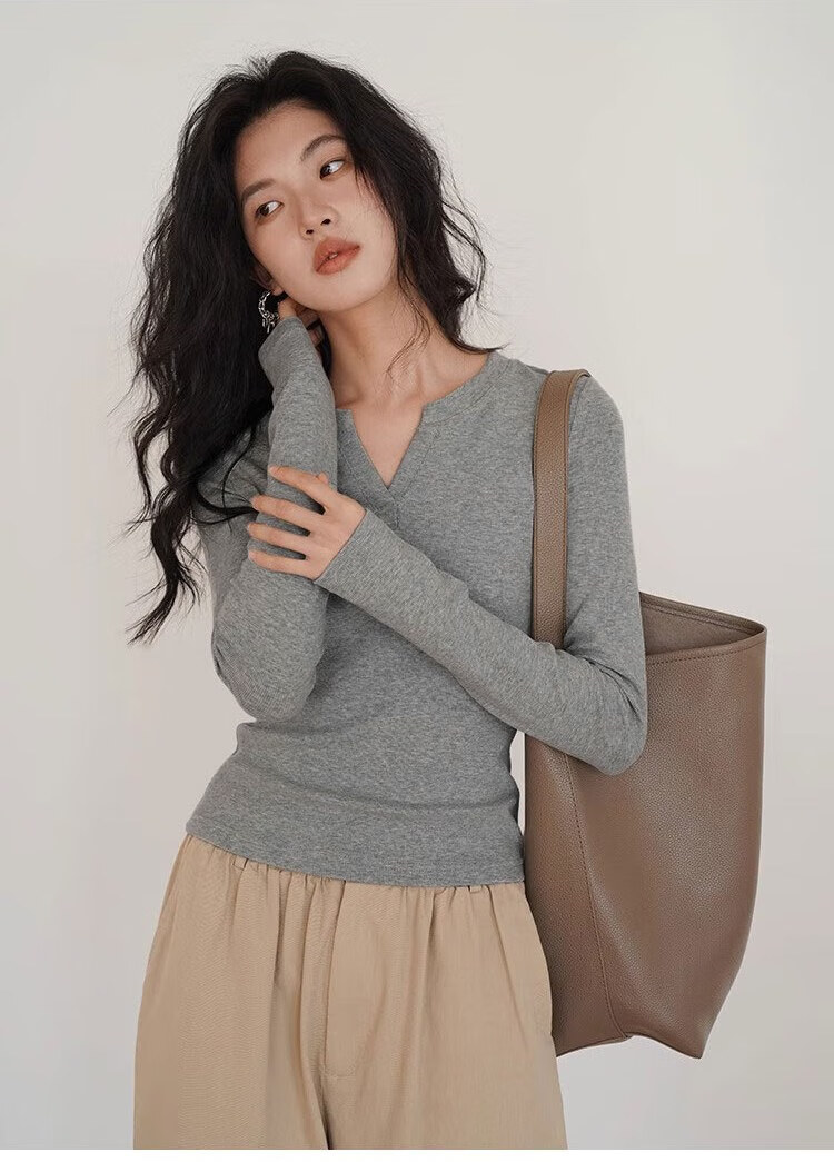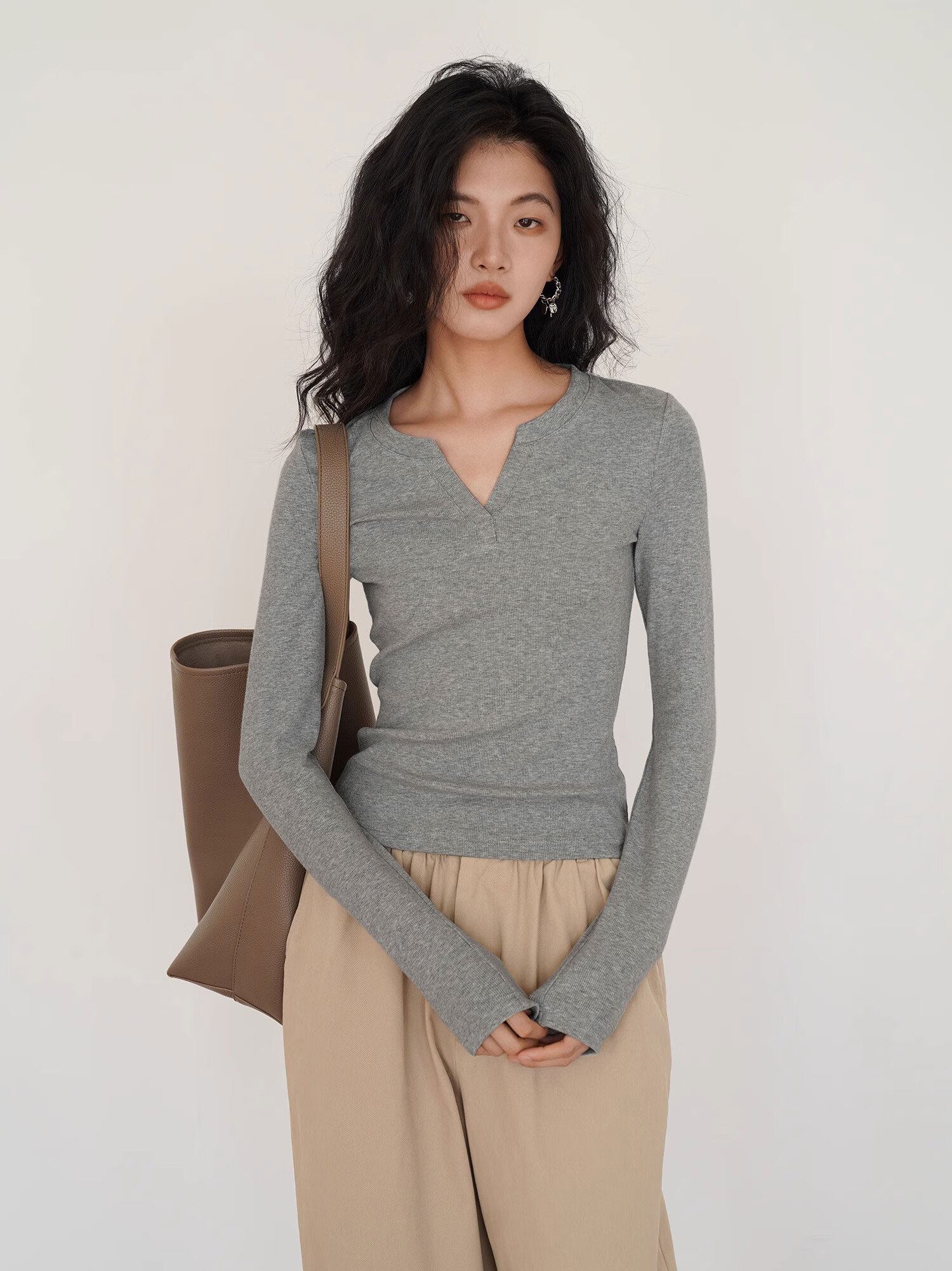 NOMEv collar long-sleeved spring inner layering shirt slim and versatile top dark gray M 95-105Jin Jin equals 0.5 kg