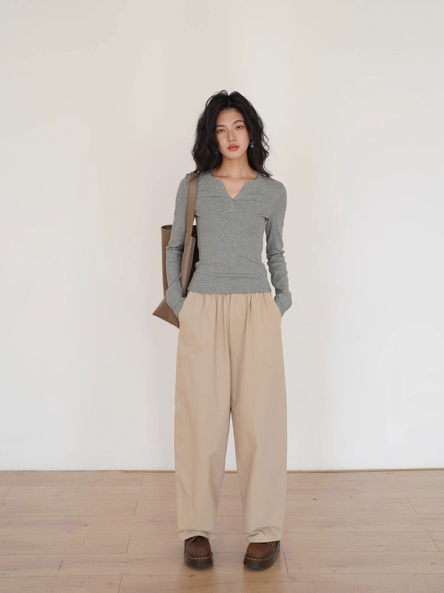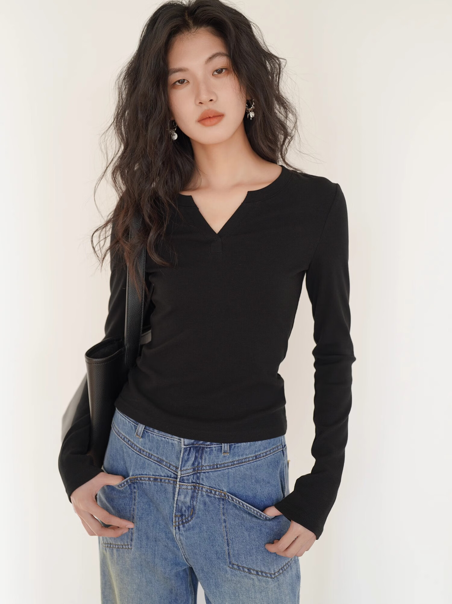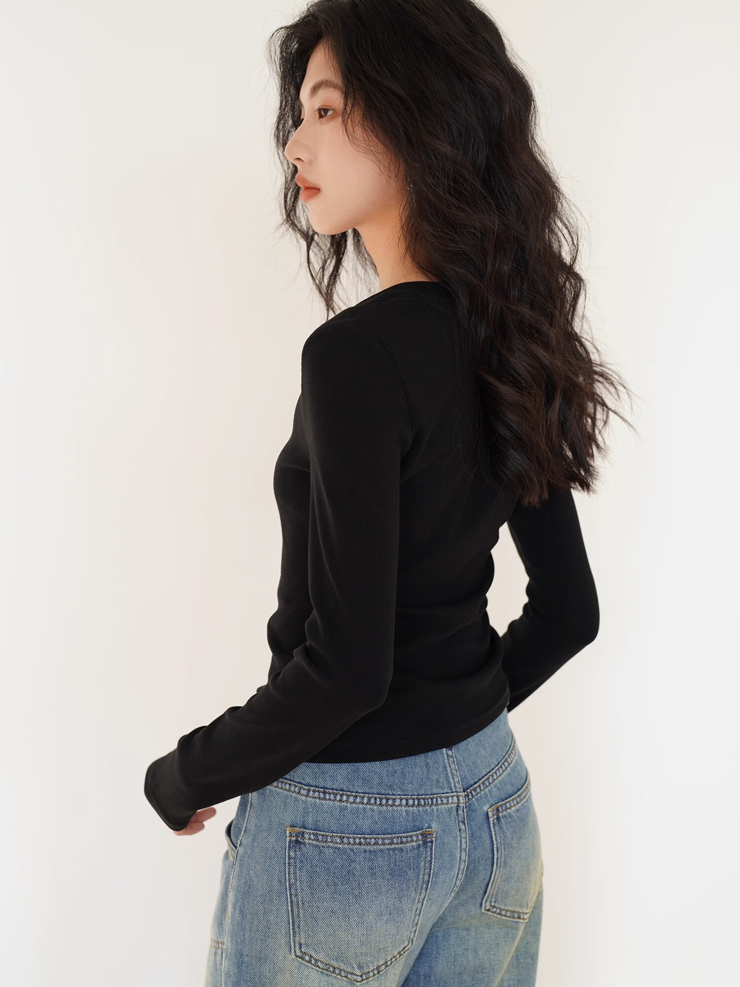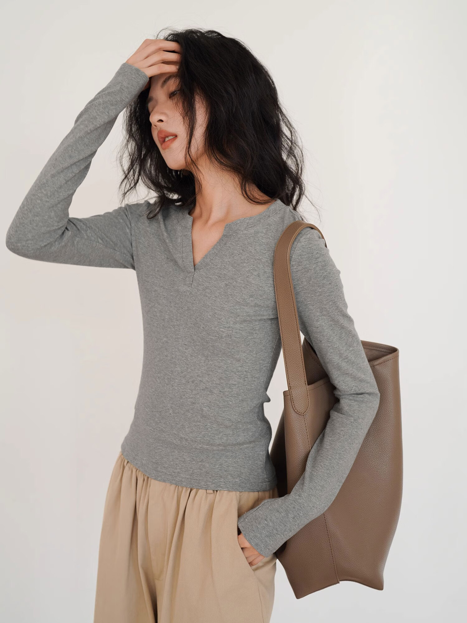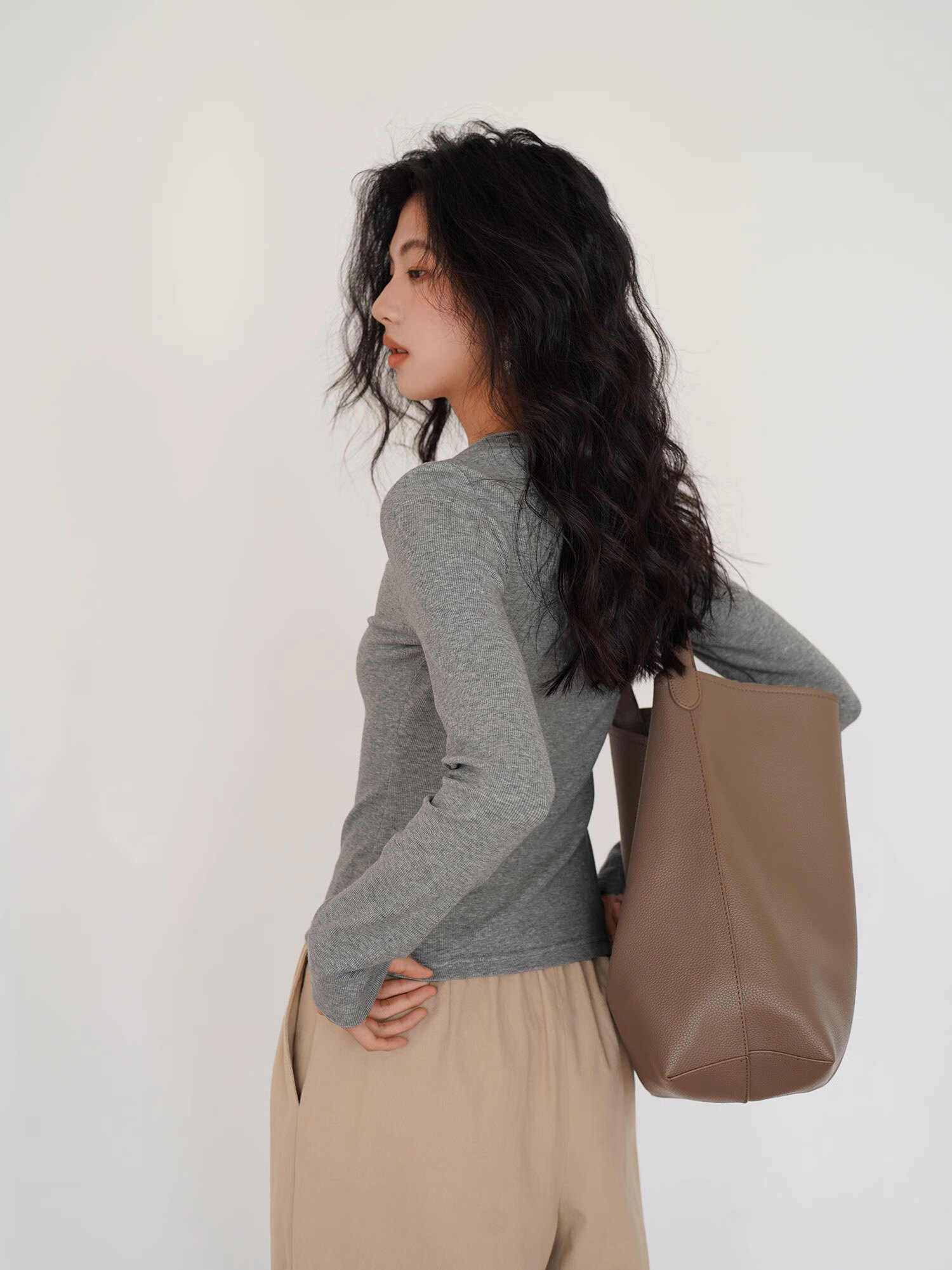 NOMEv collar long-sleeved spring inner layering shirt slim and versatile top dark gray M 95-105Jin Jin equals 0.5 kg